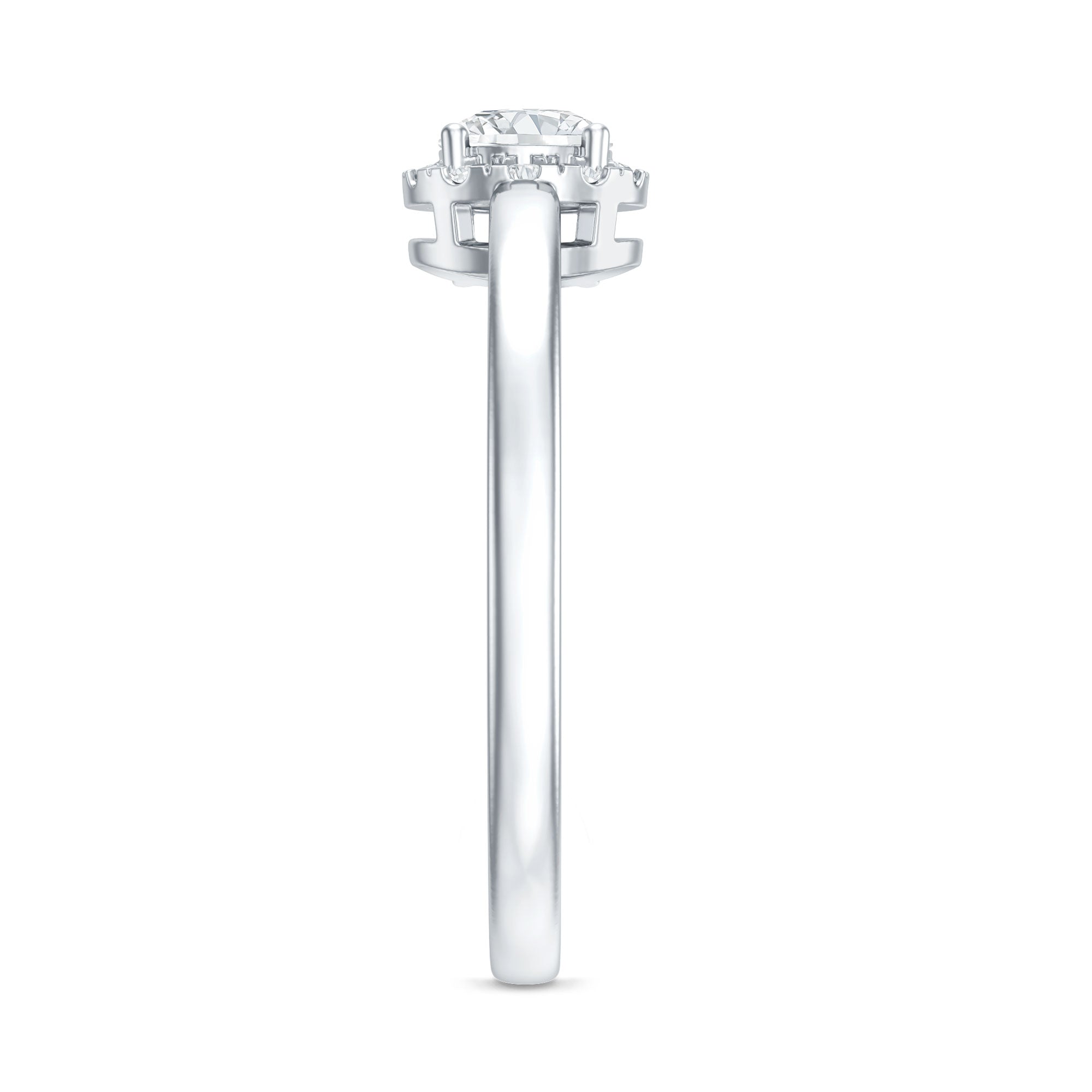 Halo Rings: Lab created diamond promise rings in halo style feature a central lab-grown diamond gemstone encircled by smaller similar or different gems, offering a perfect blend of simplicity and elegance.