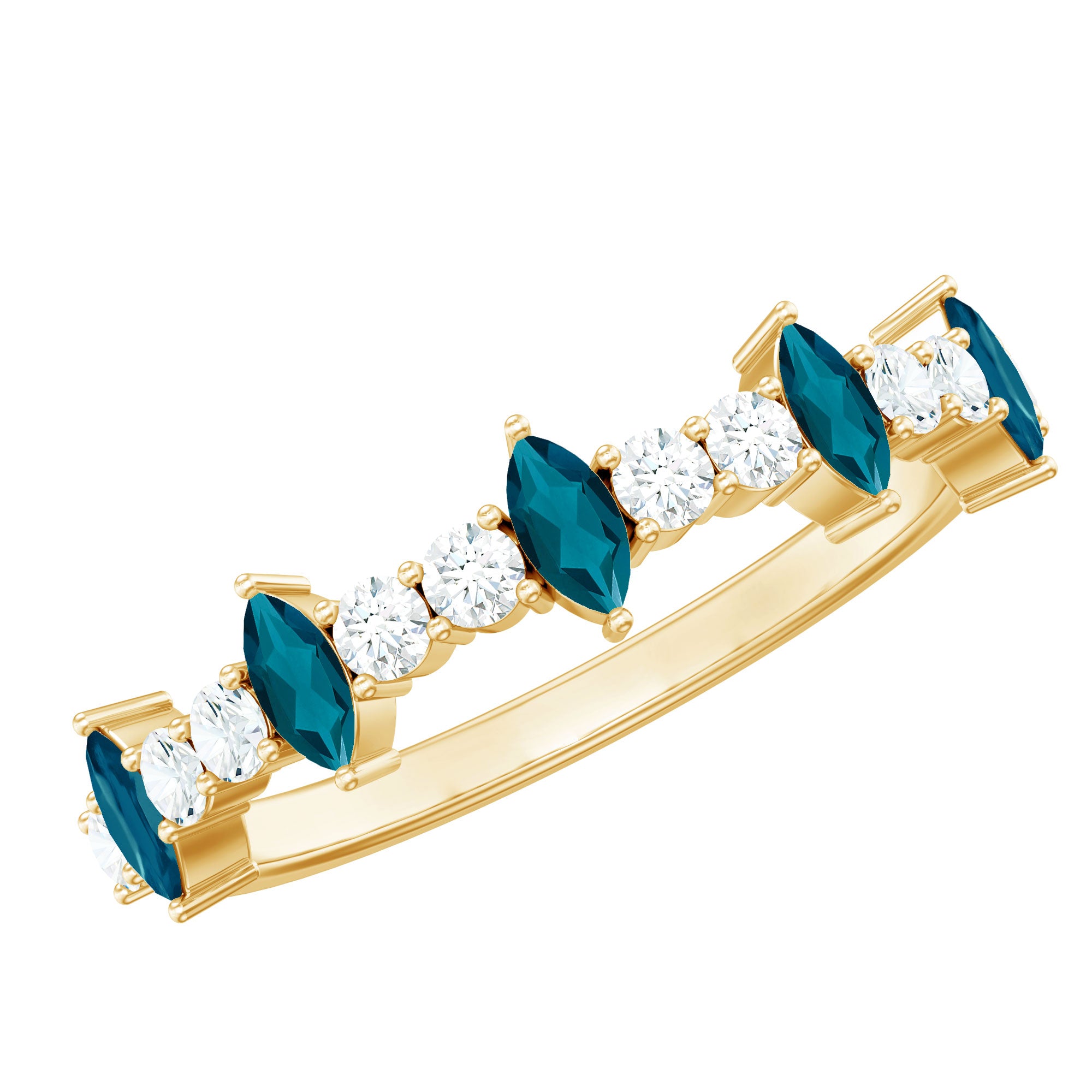 Marquise London Blue Topaz Semi Eternity Band with Diamond