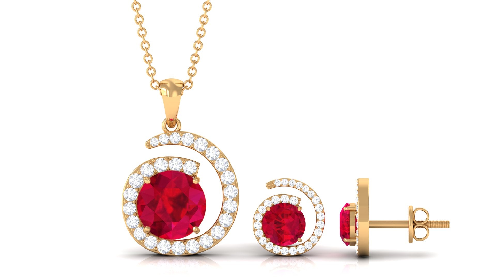 Created Ruby and Moissanite Swirl Pendant and Earrings Set