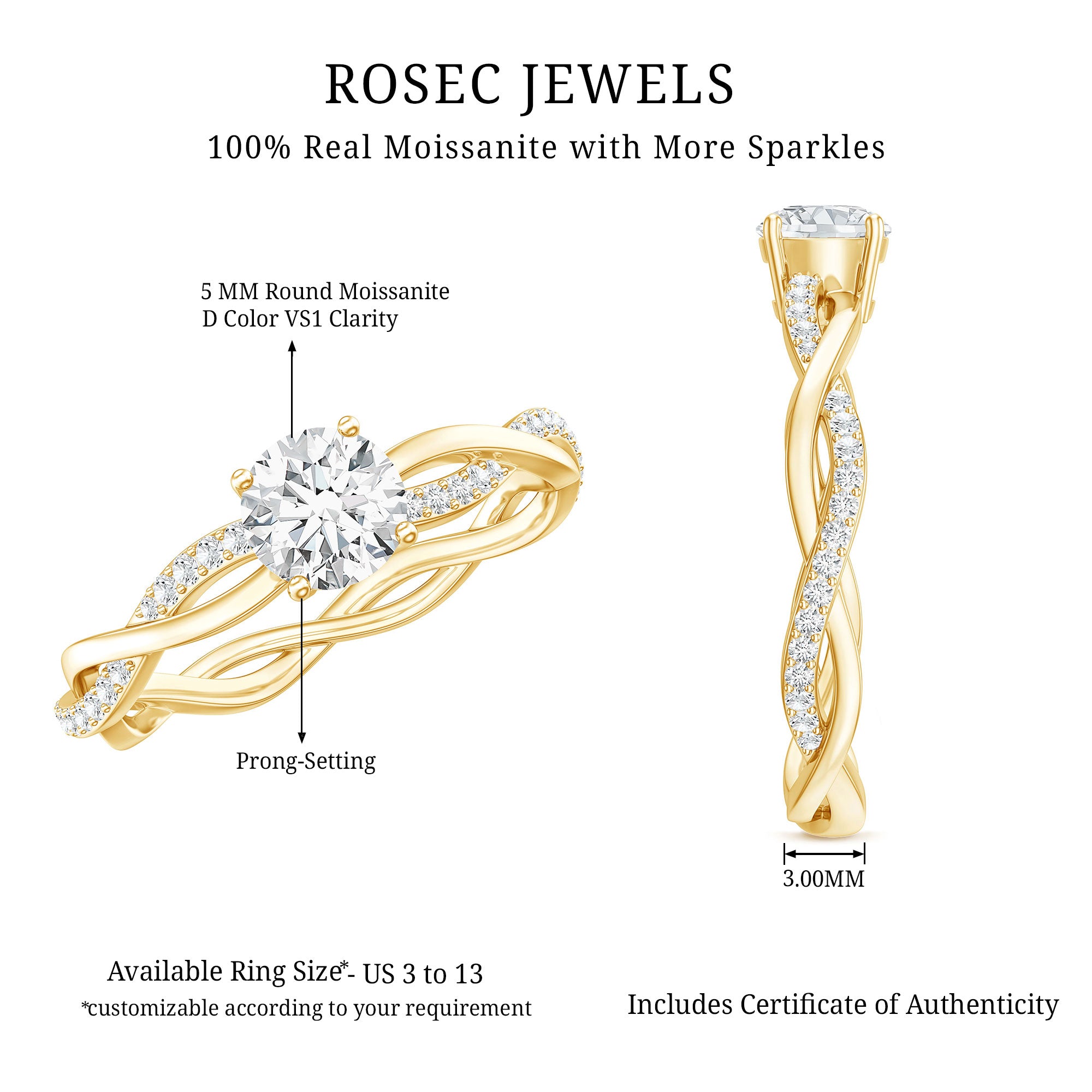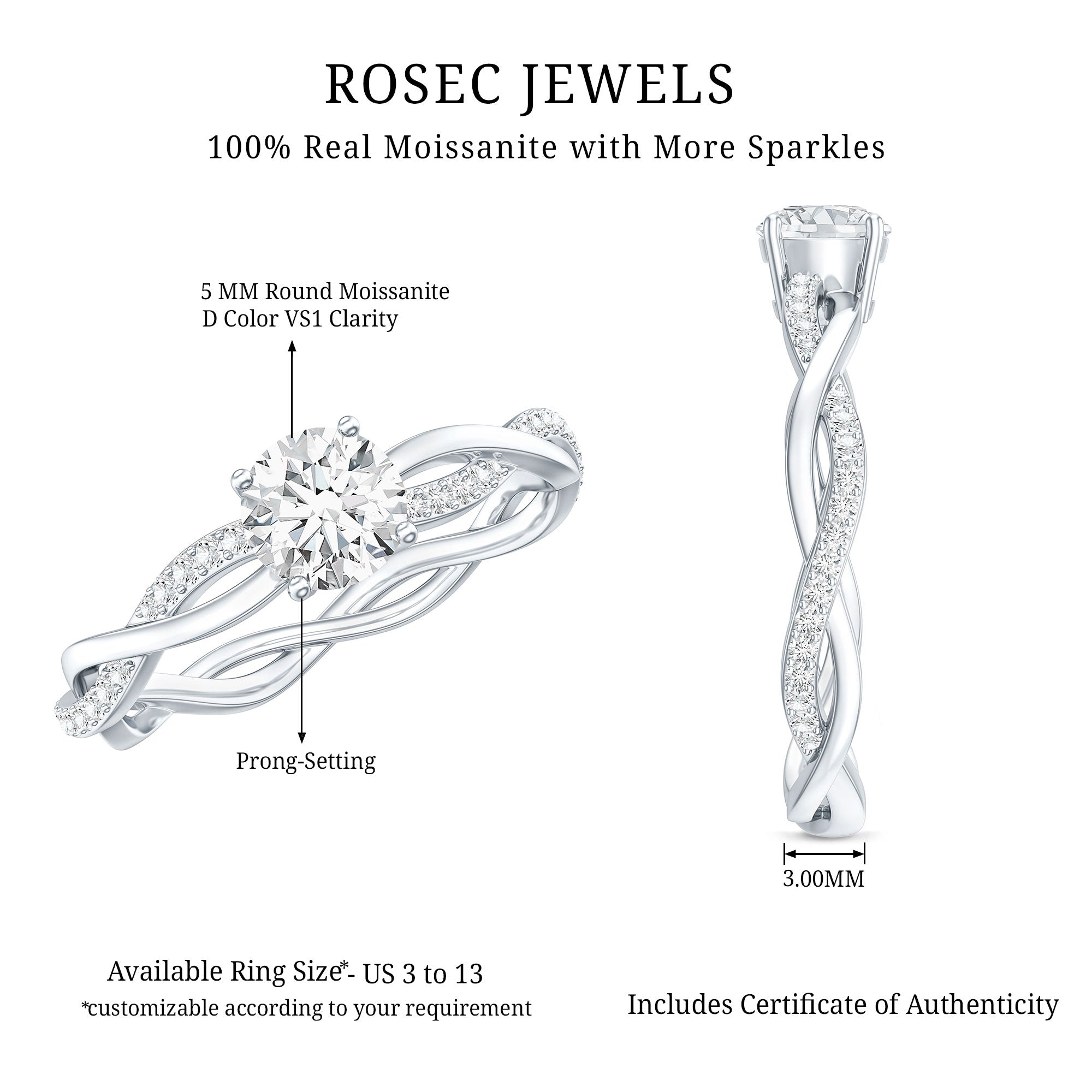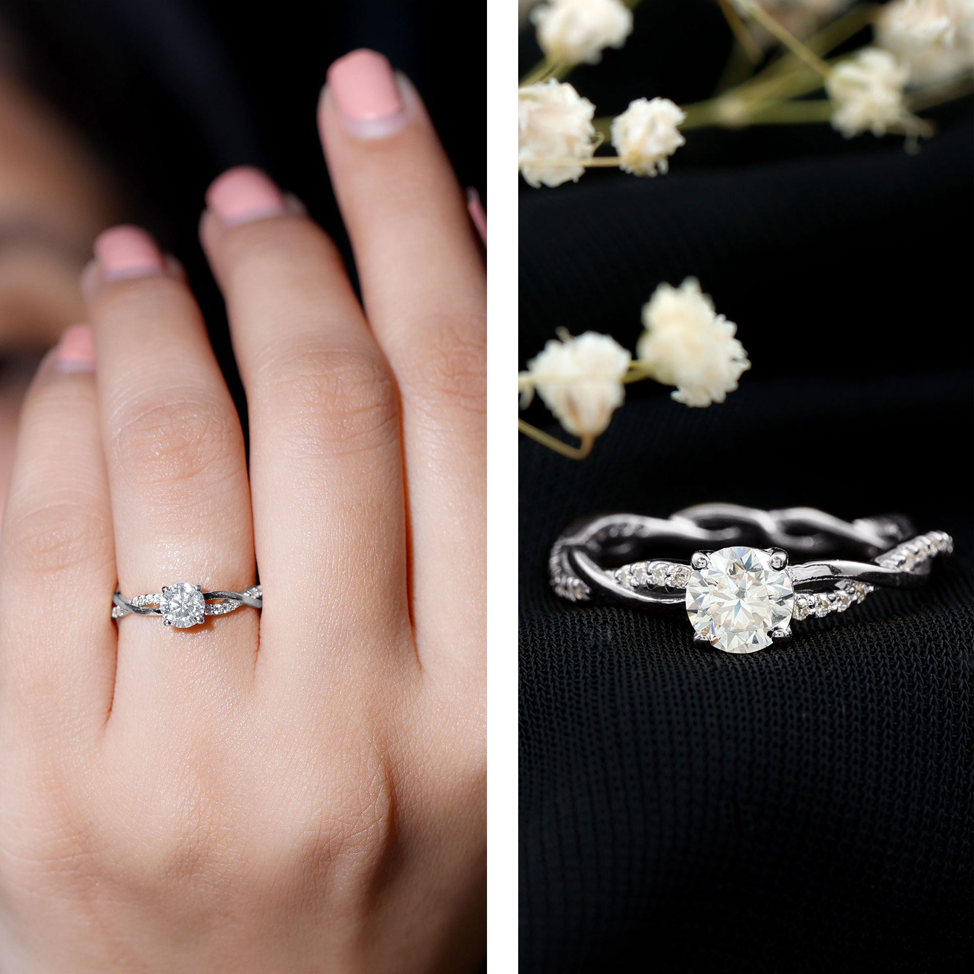 Round Cut Moissanite Solitaire Braided Promise Ring