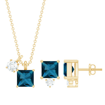 Sold out - 2.5 CT London Blue Topaz and Moissanite Two Stone Pendant Earrings Set+sp.priceRaw ? 'price price--on-sale' : 'price'">