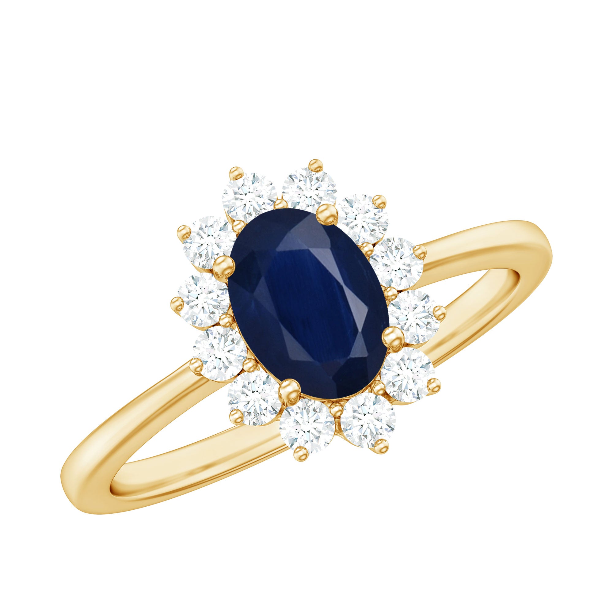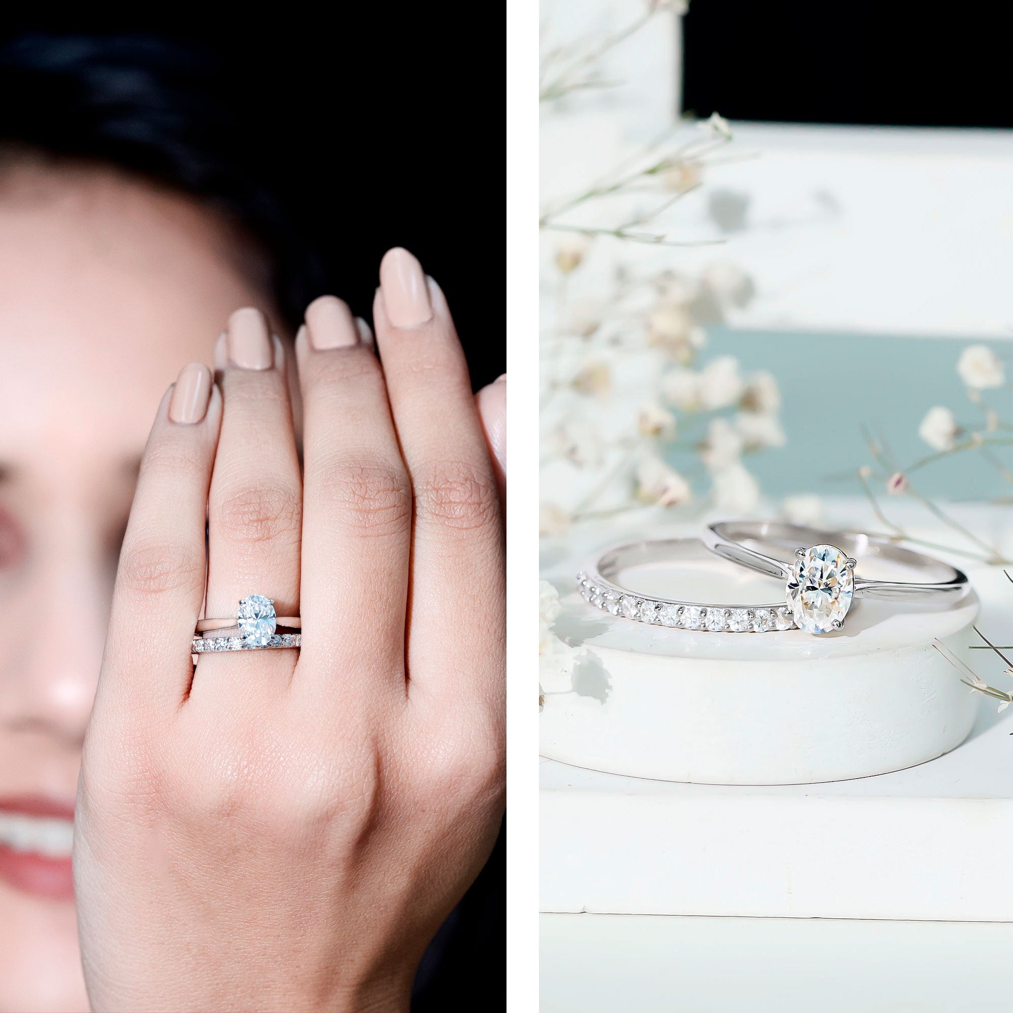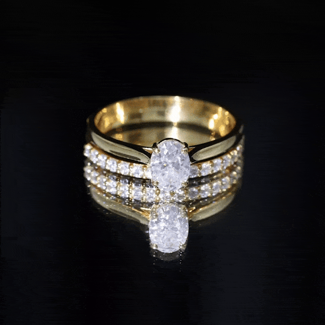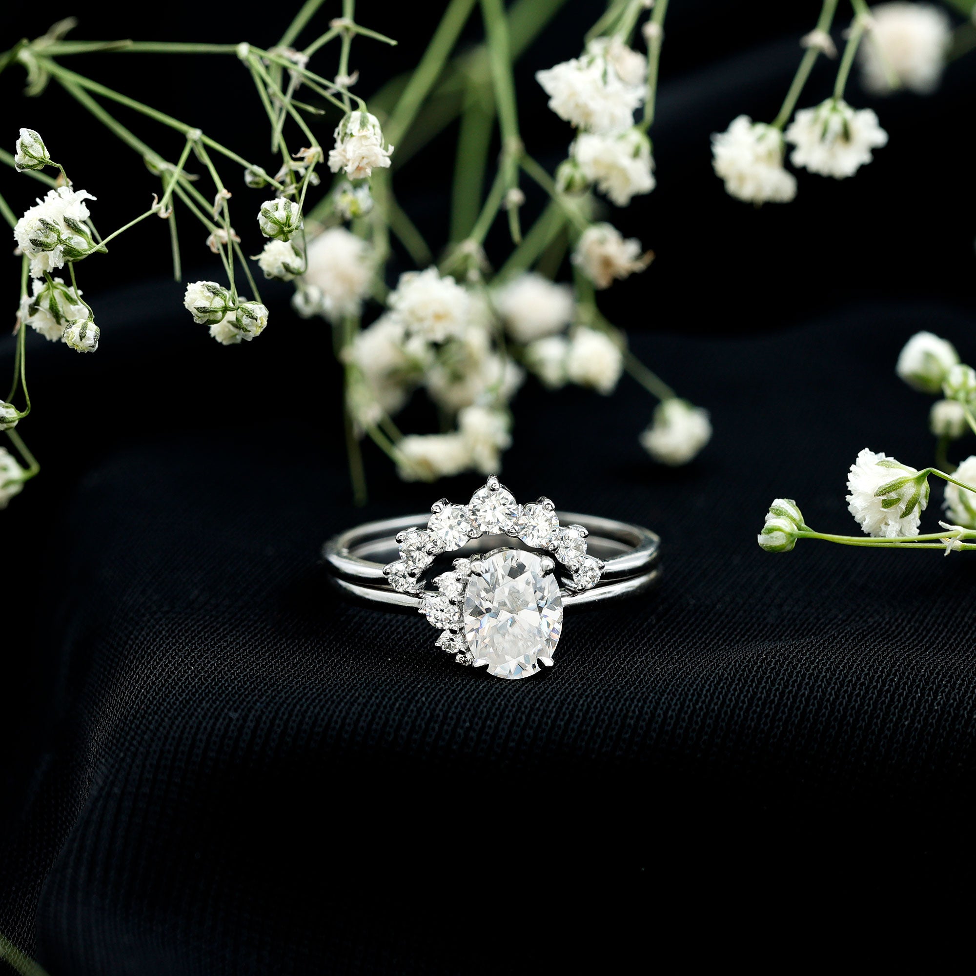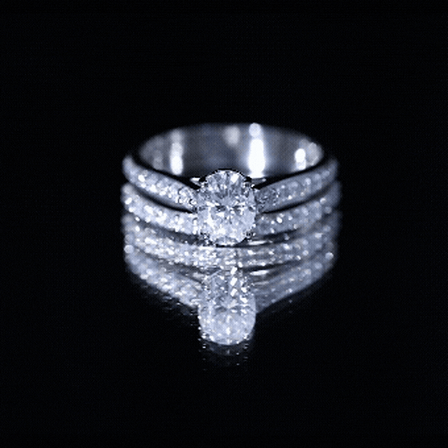 Halo settings, thin bands, and elongated shapes like oval or pear enhance face-up size.