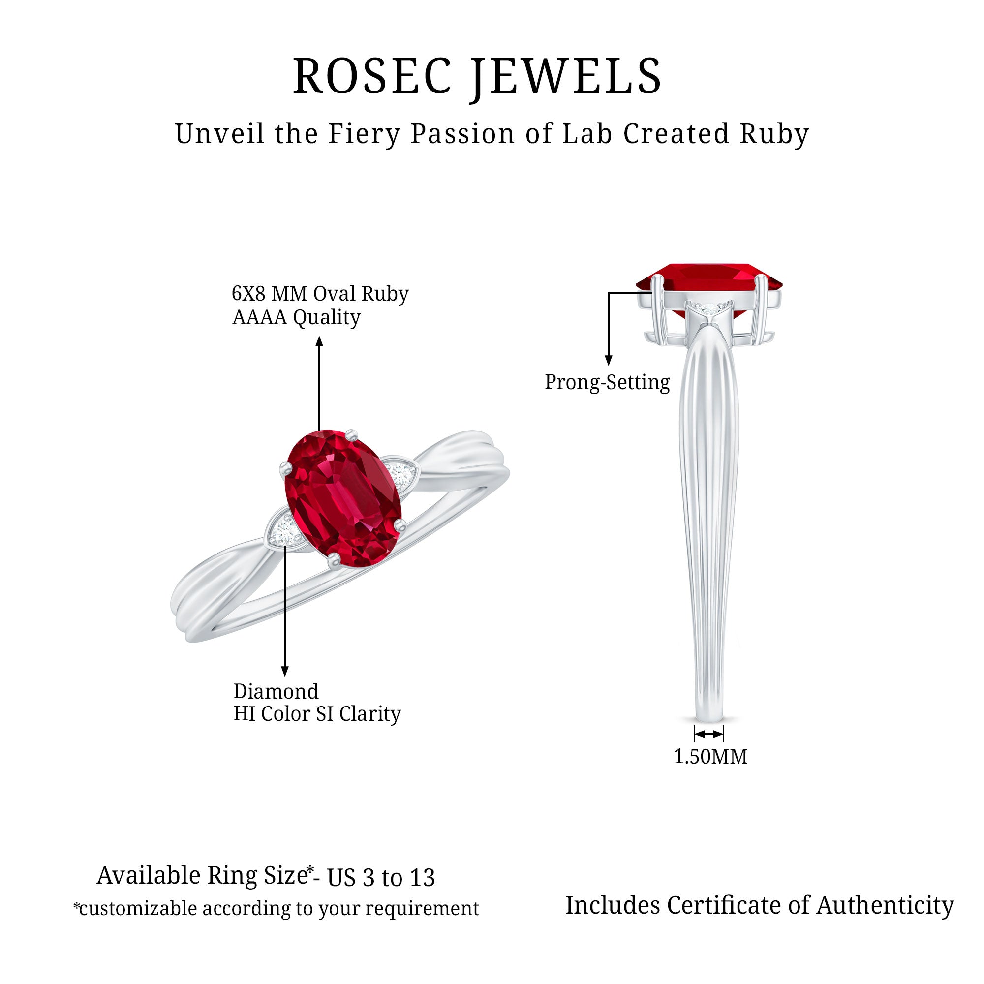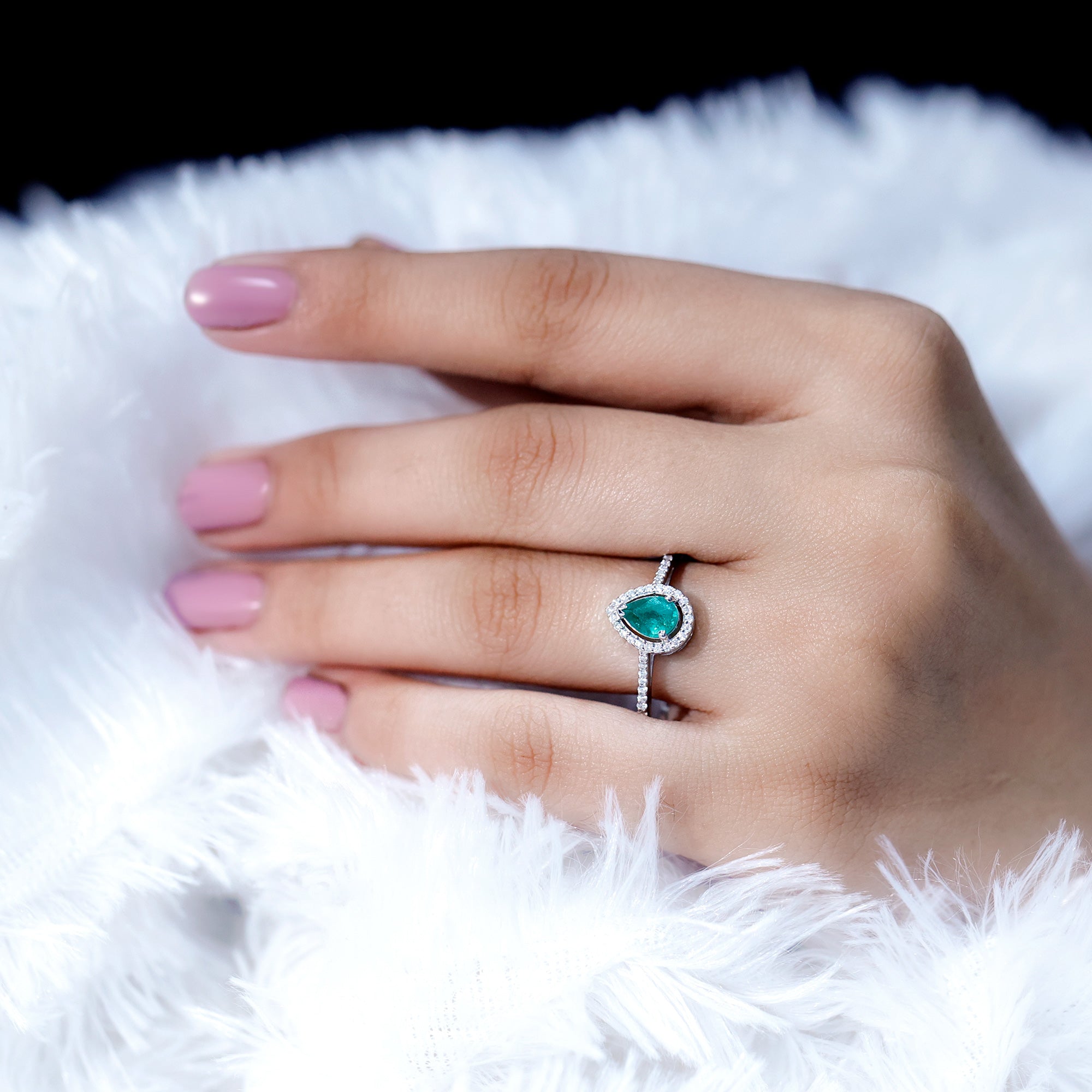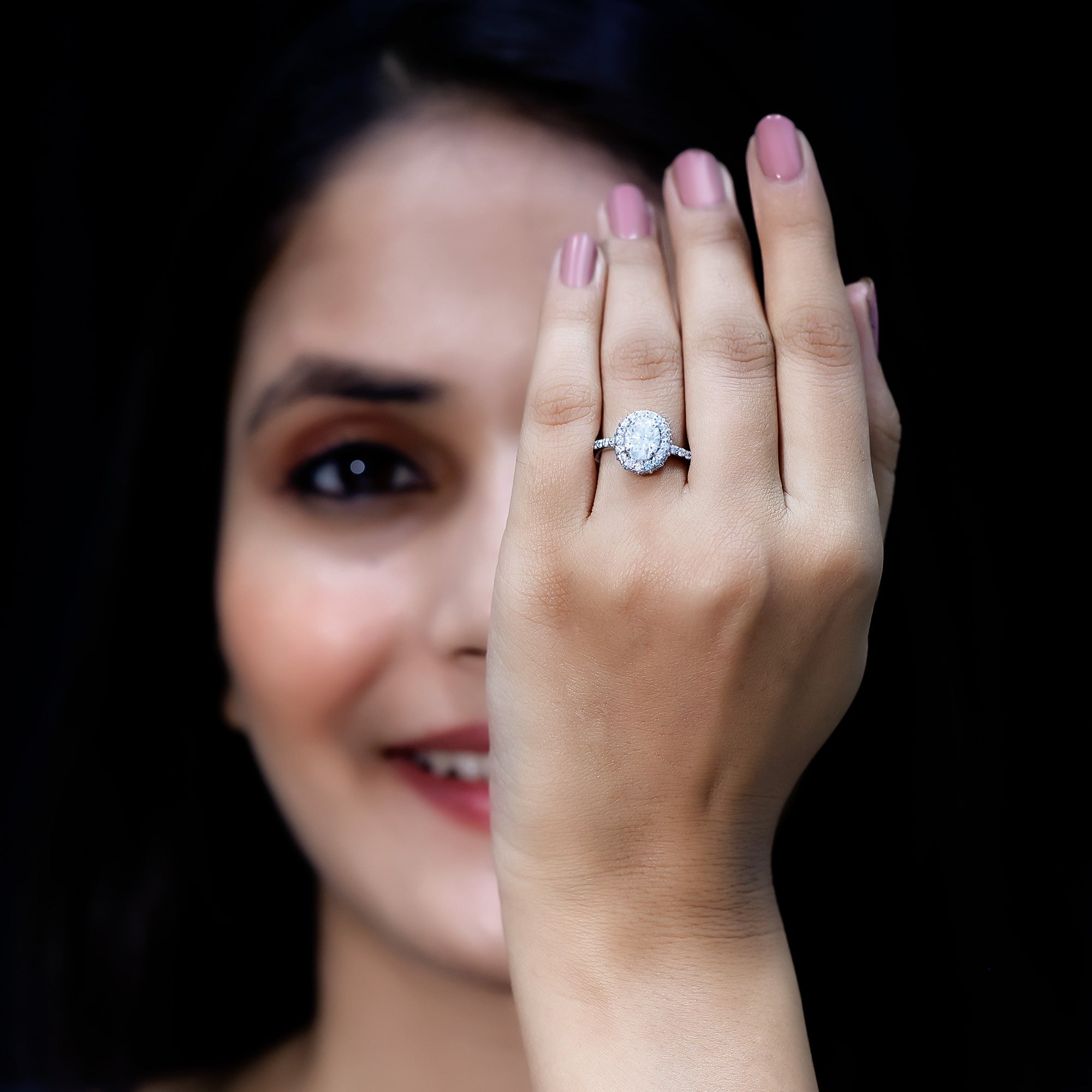 Halo settings, thin bands, and elongated shapes like oval or pear enhance face-up size.