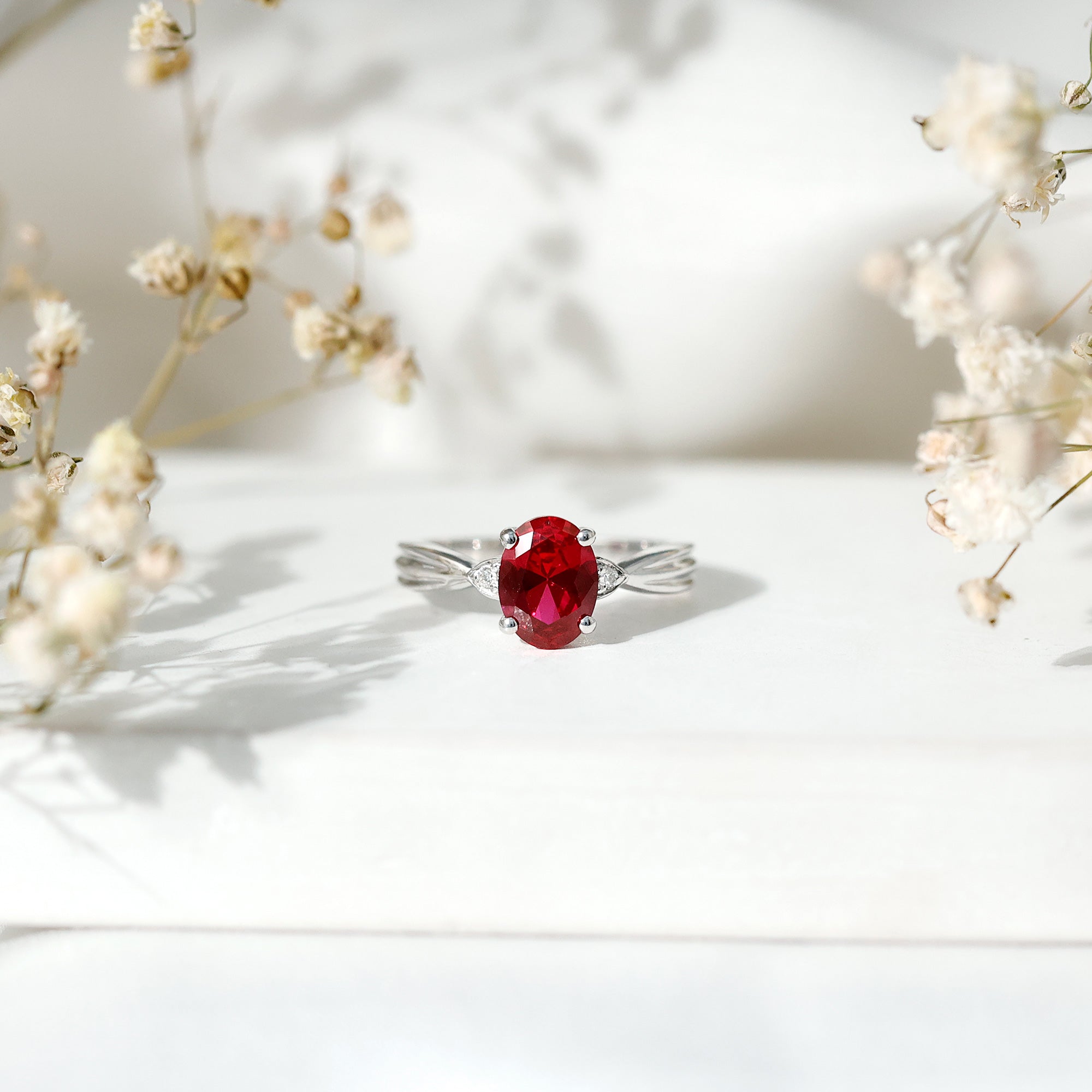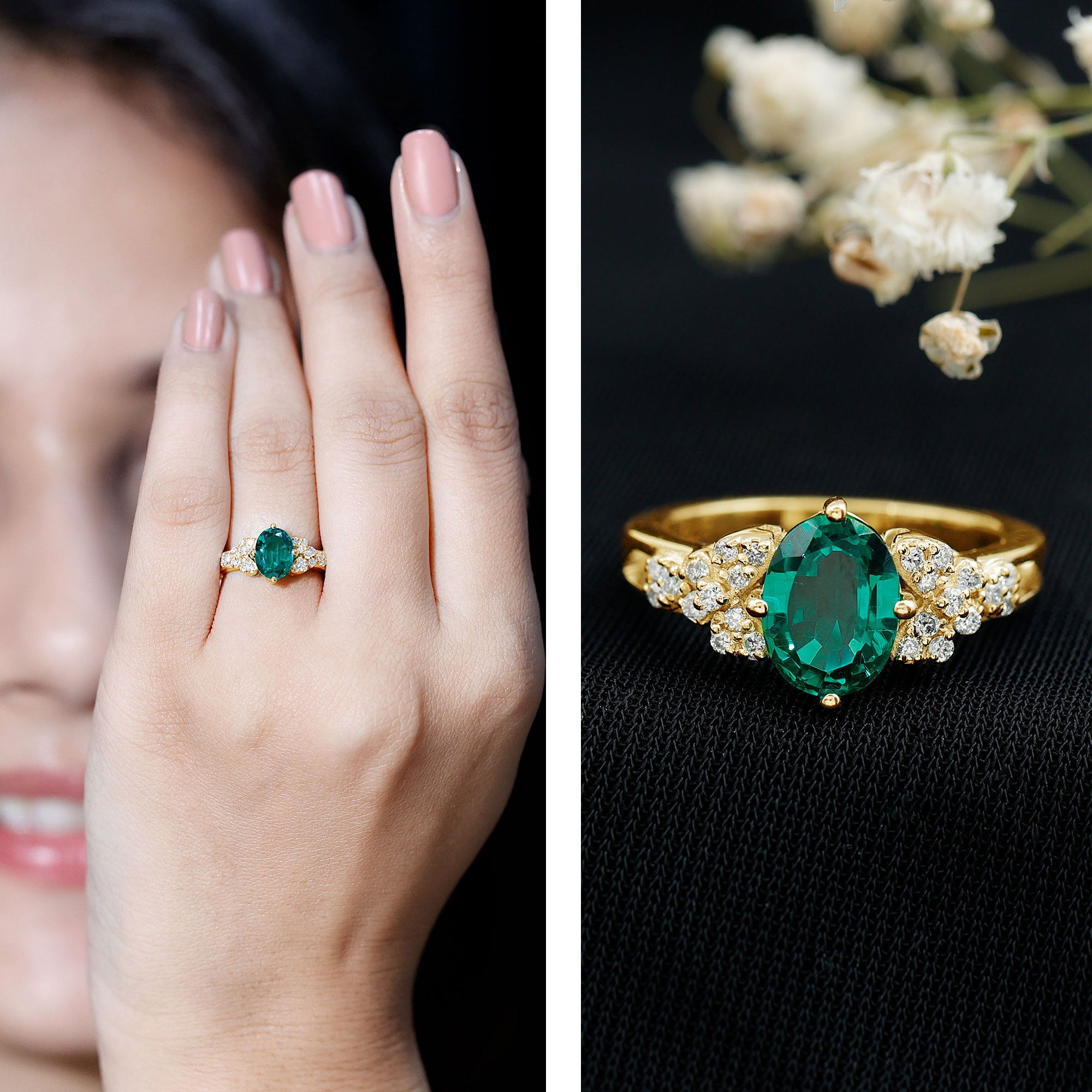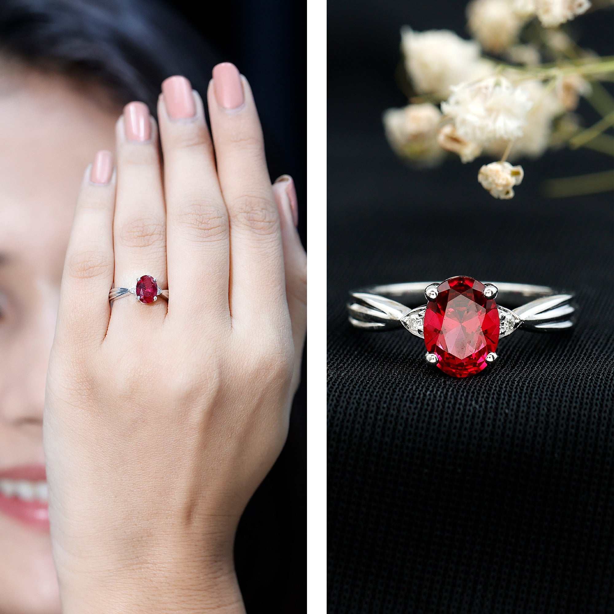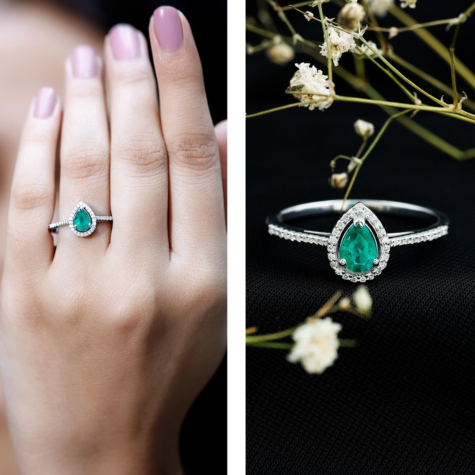 Halo settings, thin bands, and elongated shapes like oval or pear enhance face-up size.