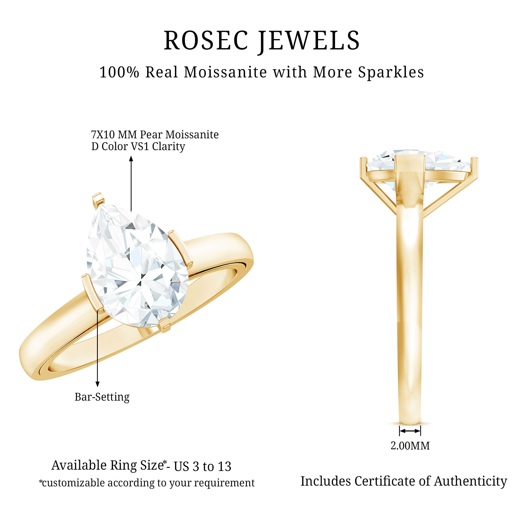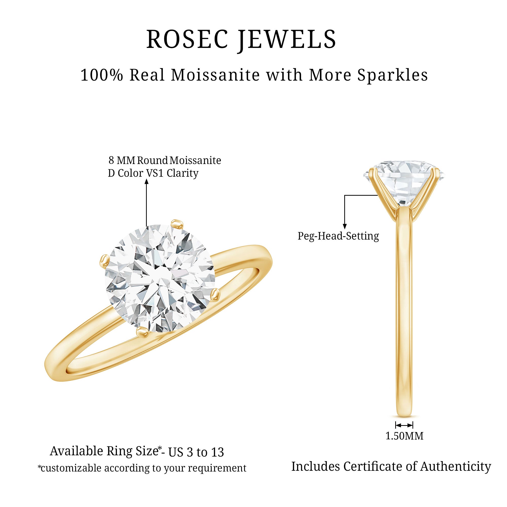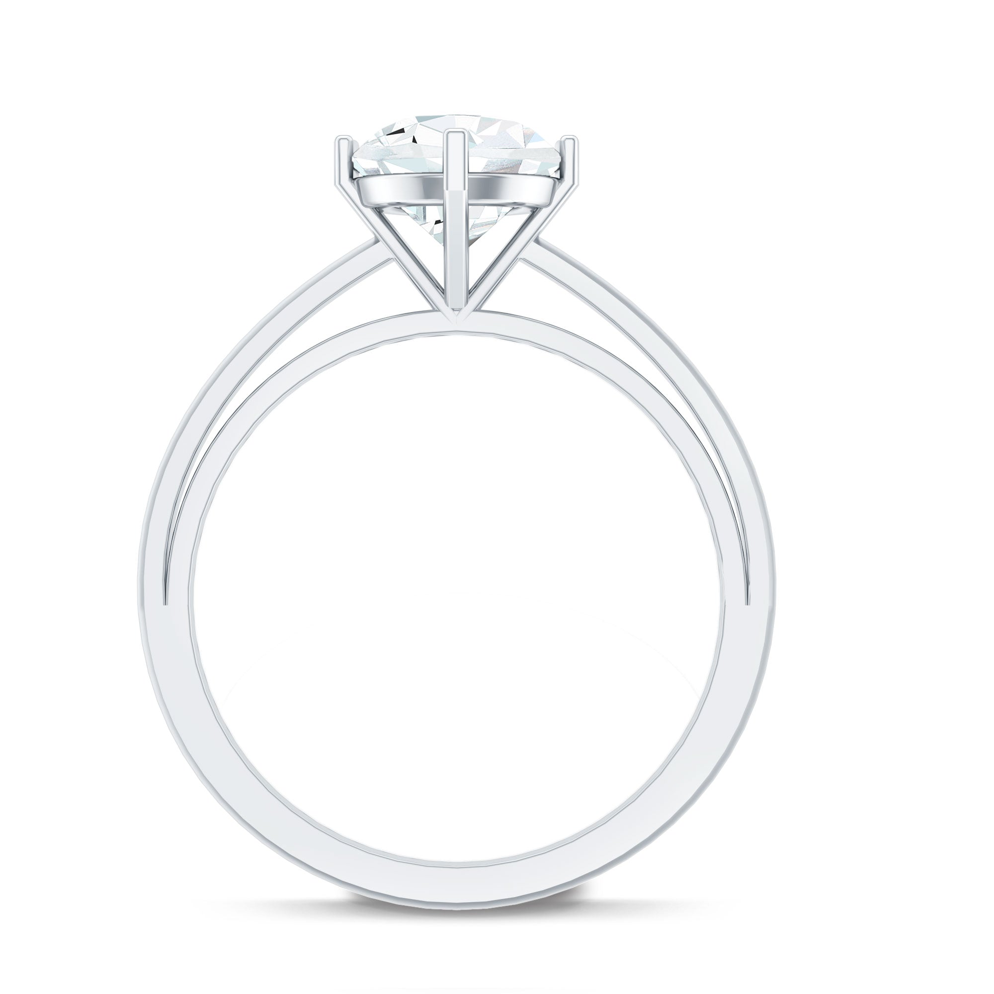 • With big gemstones in diamond and moissanite, color of the gemstone should be in relation to its setting and metal so that it appears almost colorless. 2 CT stone looks great with white, yellow and rose gold metal.