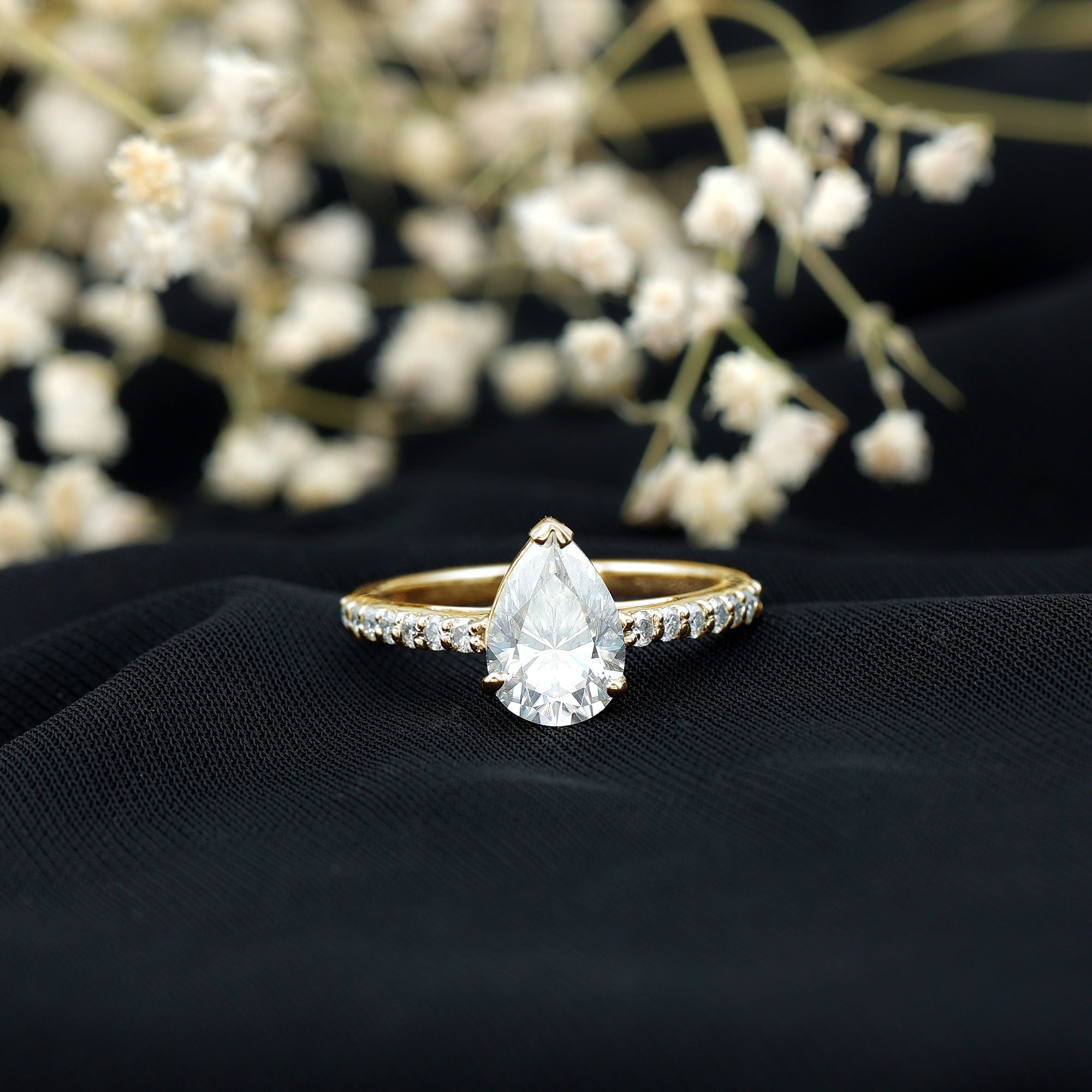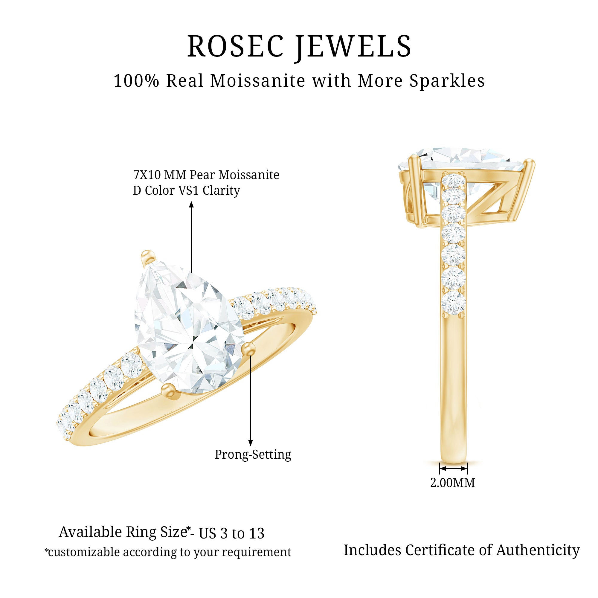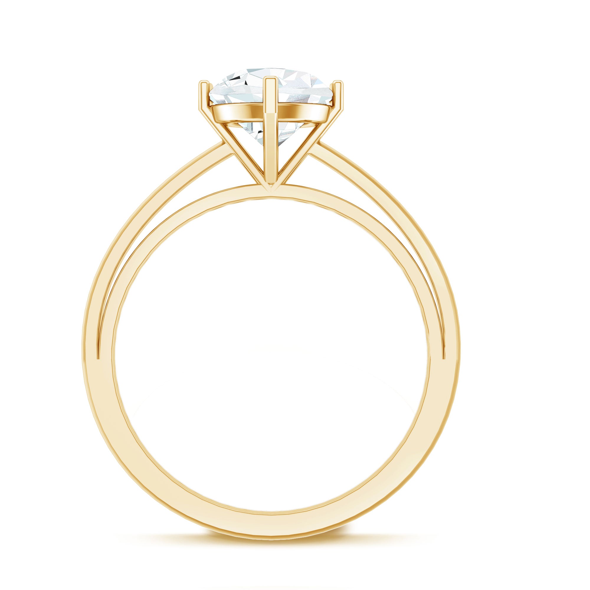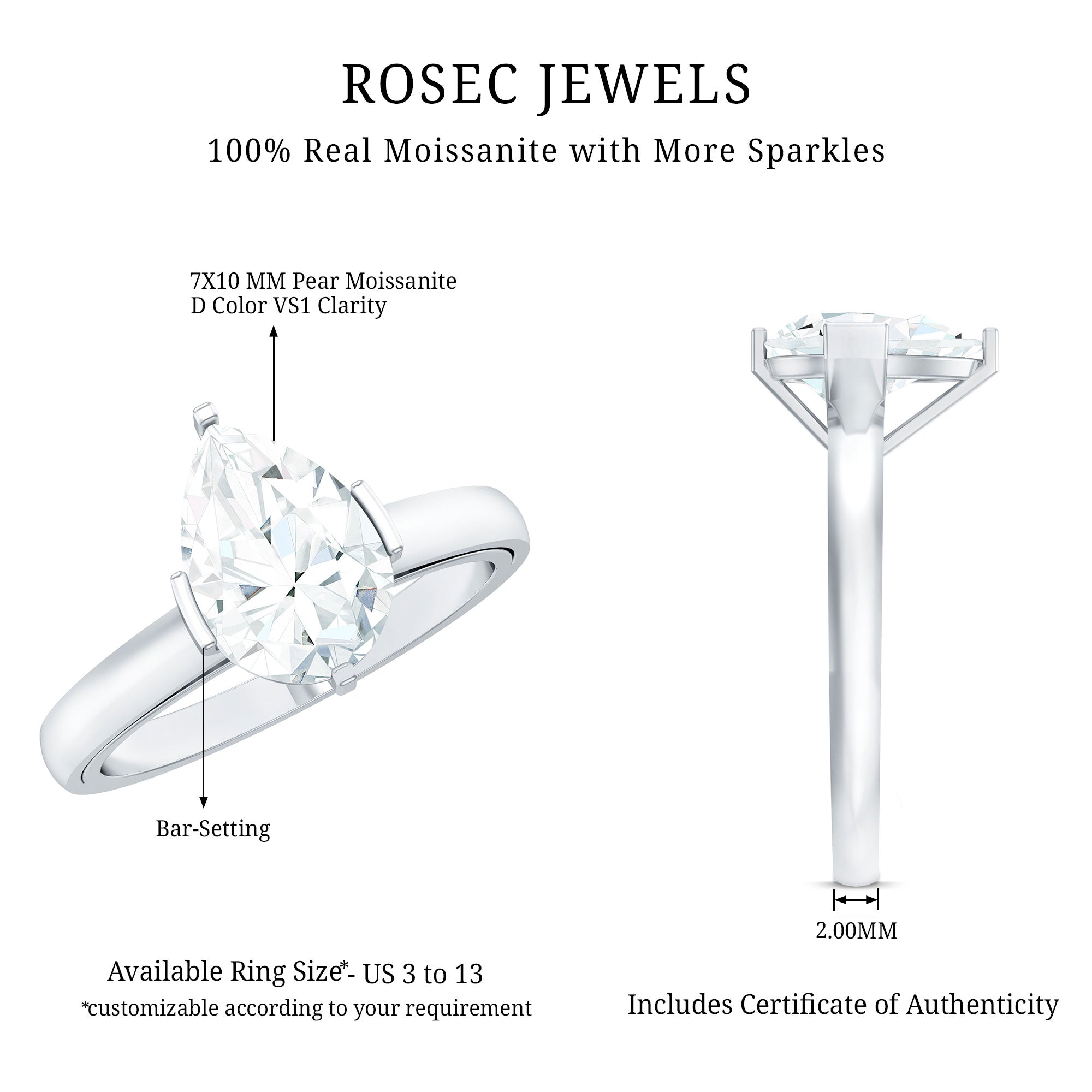 • With big gemstones in diamond and moissanite, color of the gemstone should be in relation to its setting and metal so that it appears almost colorless. 2 CT stone looks great with white, yellow and rose gold metal.