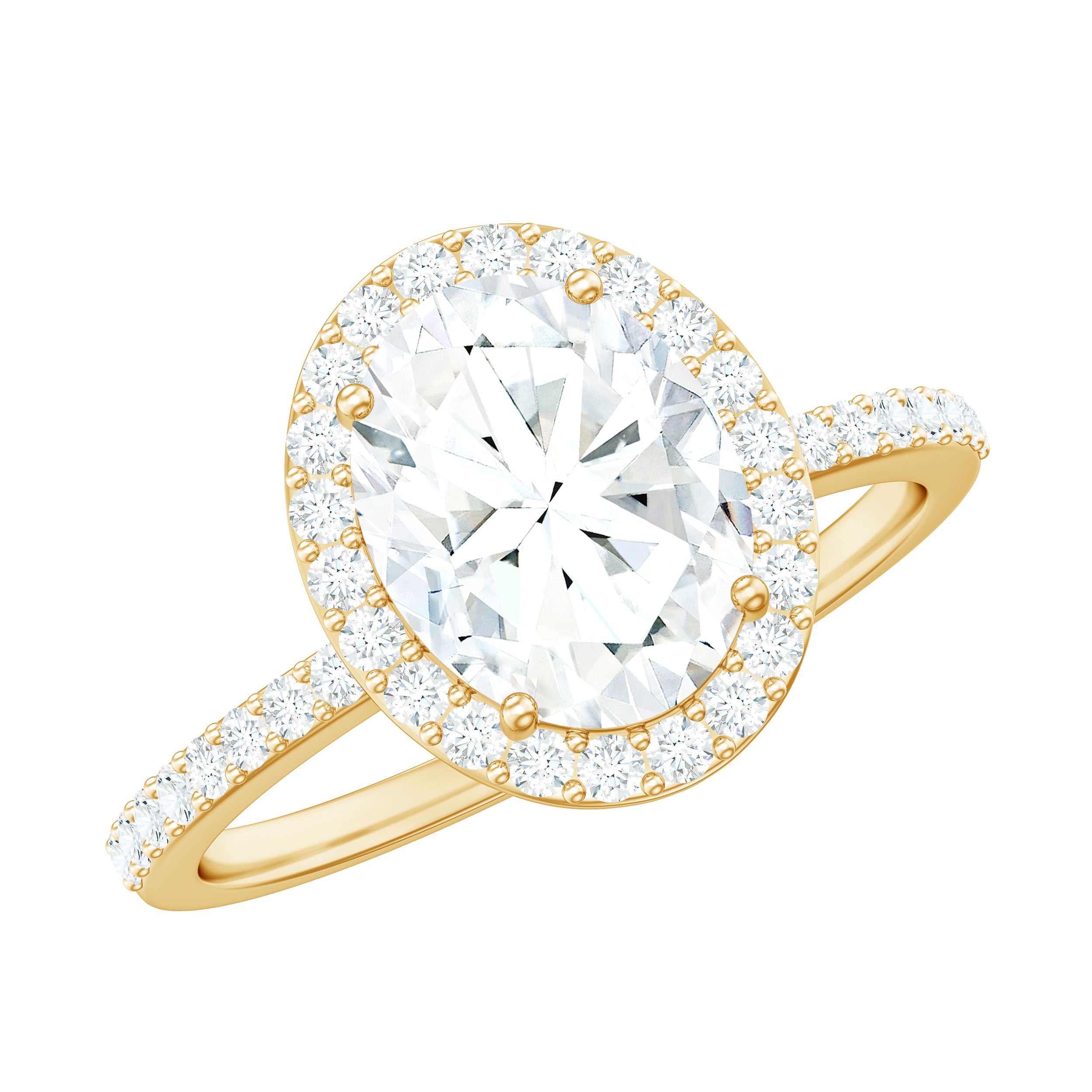 - With big gemstones in diamond and moissanite, color of the gemstone should be in relation to its setting and metal so that it appears almost colorless. 2 CT stone looks great with white, yellow and rose gold metal.