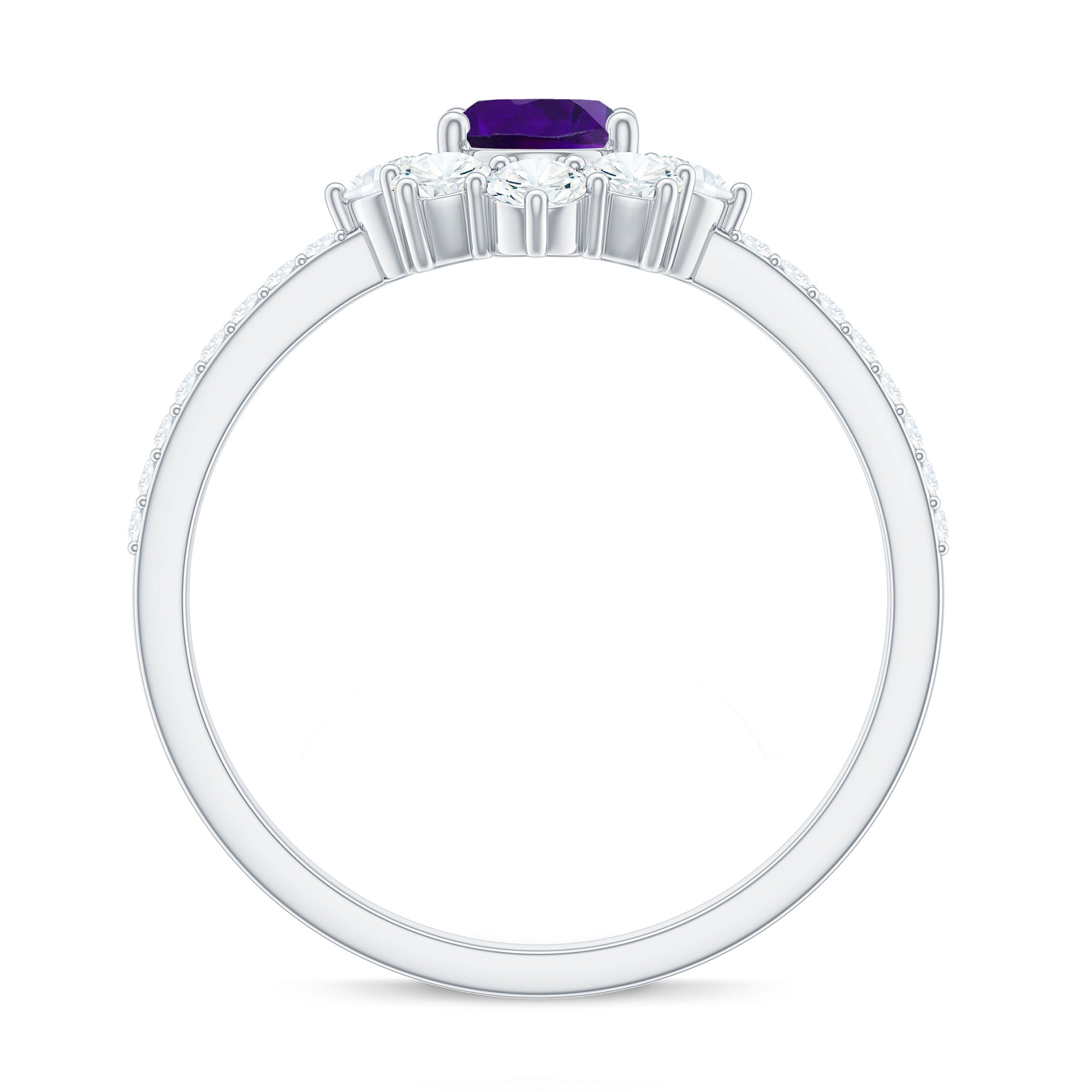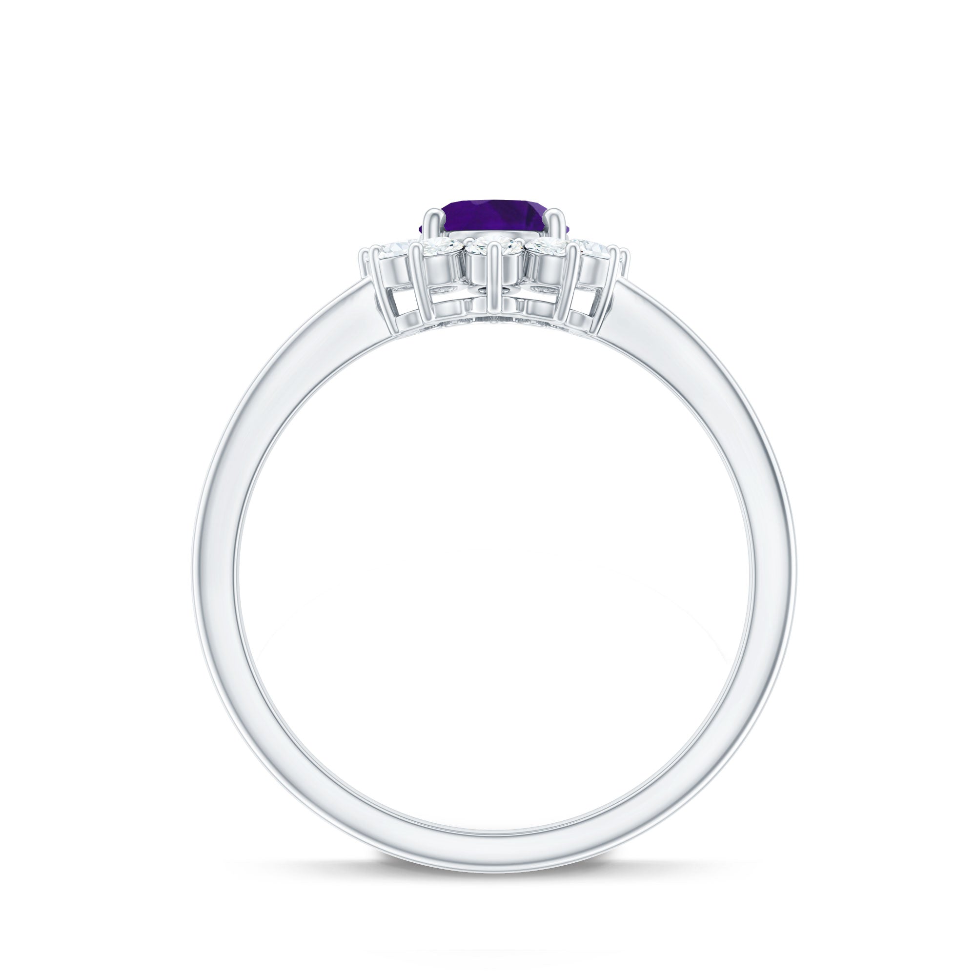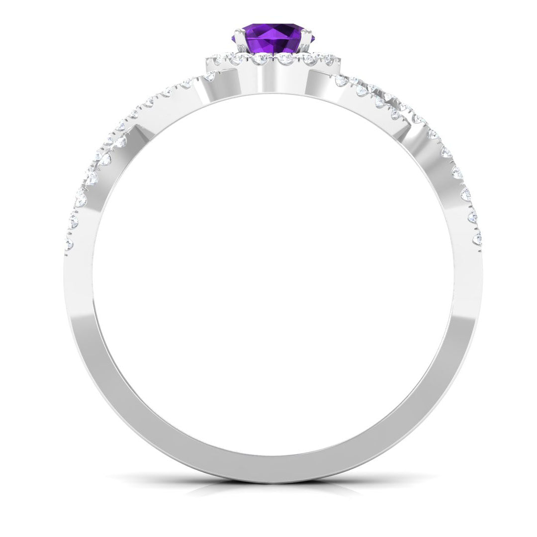 Round amethyst rings and amethyst halo rings are the most popular and trendy designs. Although, you can also choose from different cuts - princess cut, oval cut, cushion cut or emerald cut for engagement ring. Choosing a particular cut of amethyst is an individual choice.