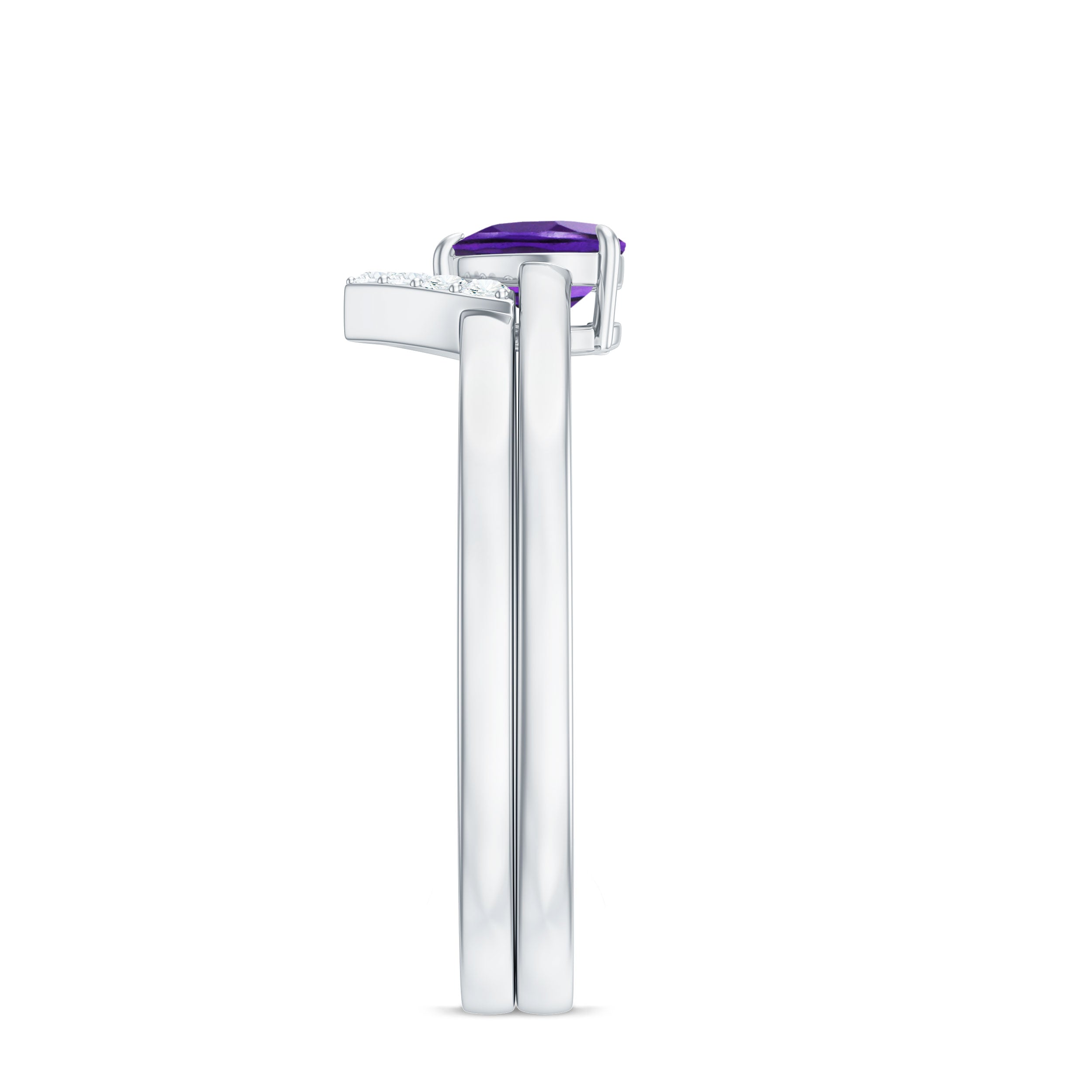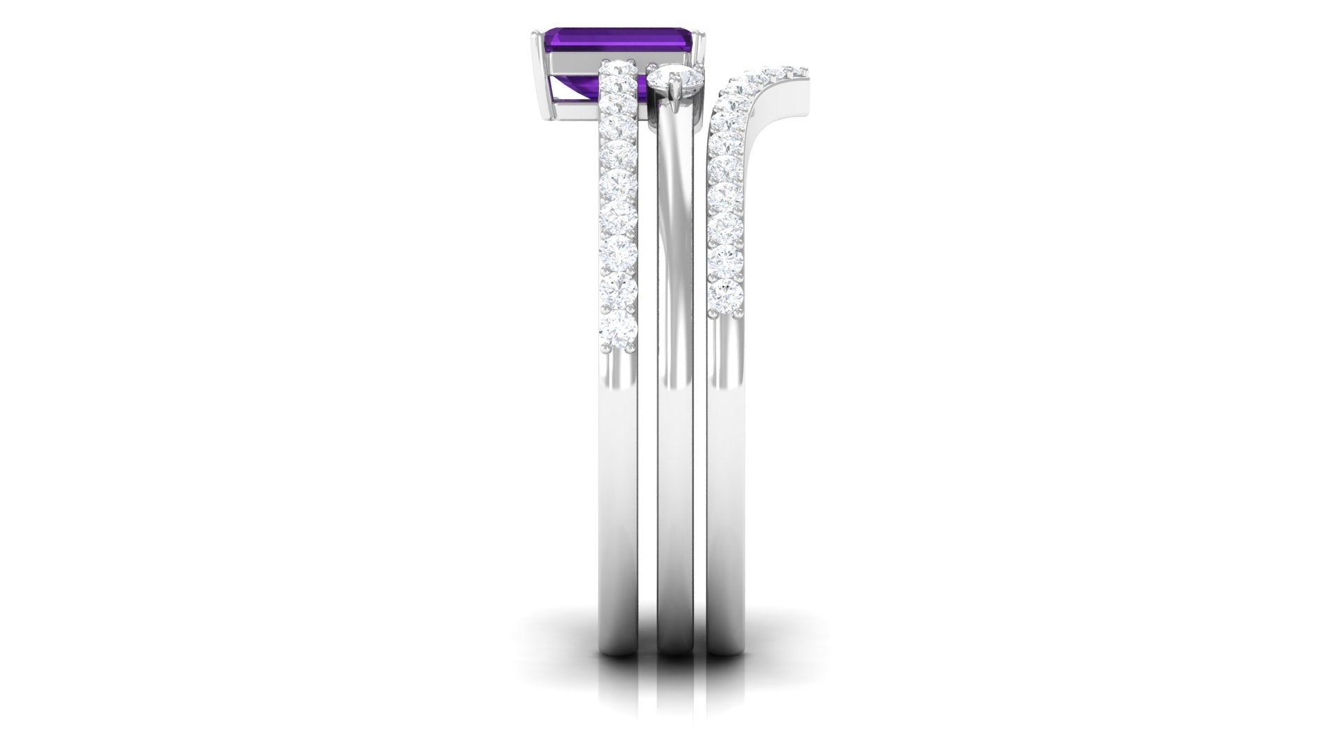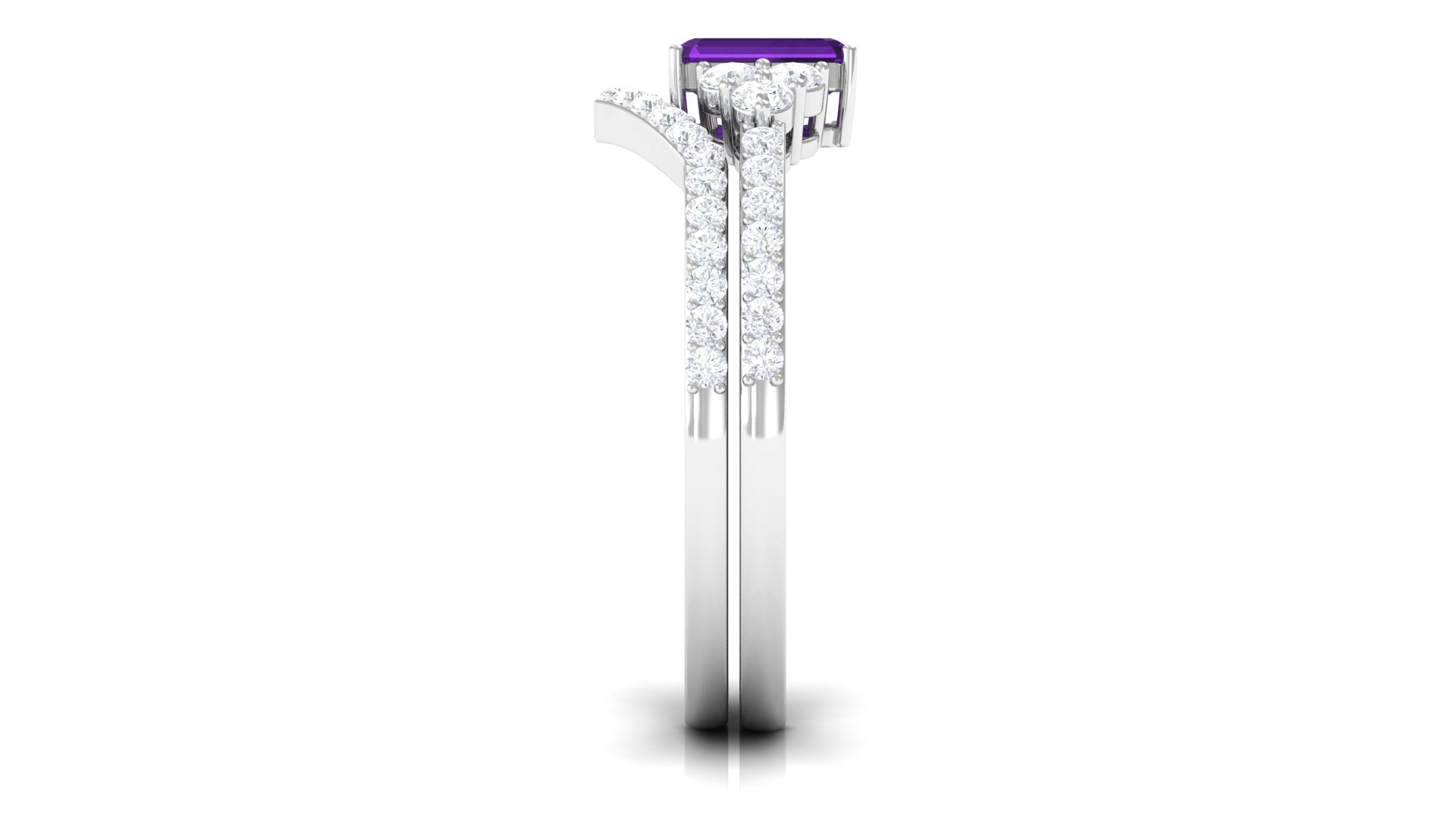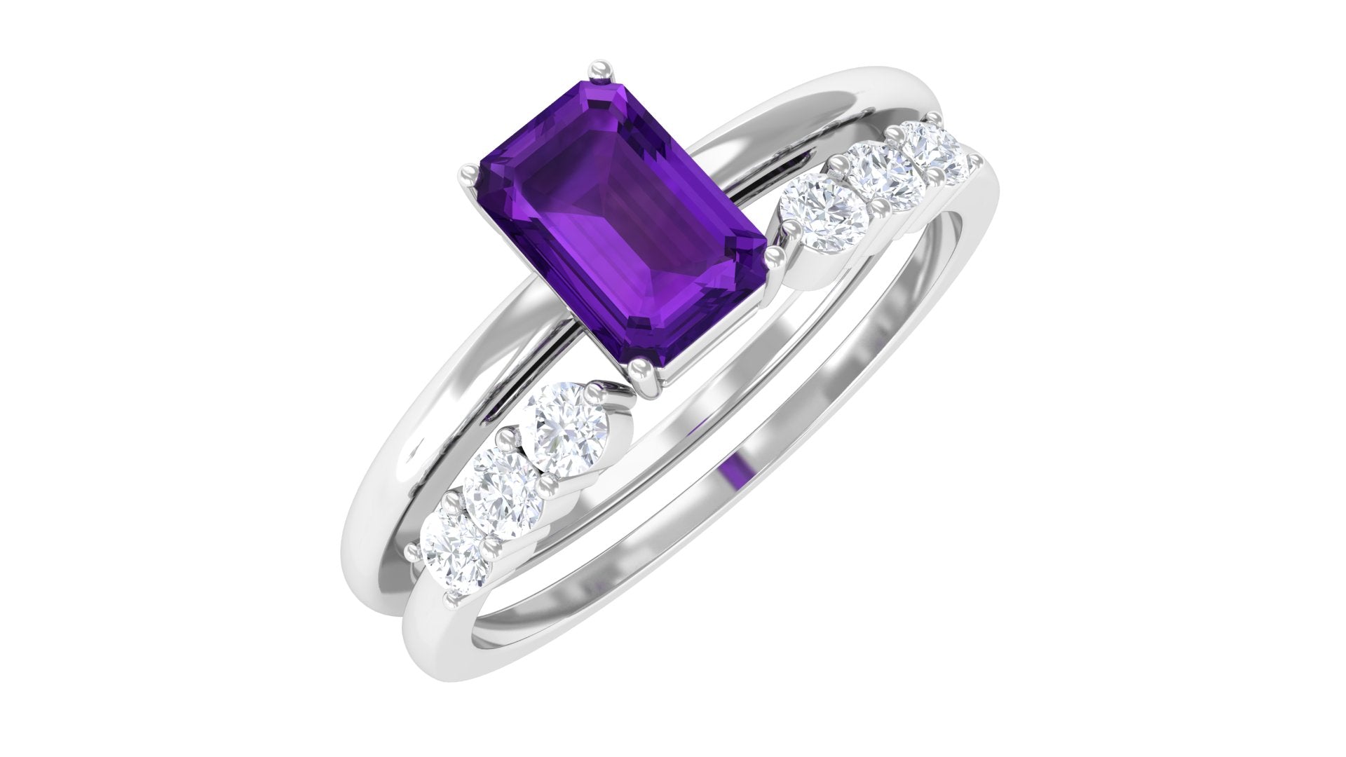 Let our amethyst wedding rings bear witness to your marriage vows with its alluring purple hues to let her heart go merry. The adorable purple gemstone of the quartz family has been a growing popularity among jewelers to craft fantastic amethyst wedding bands. The birthstone of February is believed to have positive influence on the wearer born in February. The considerable hardness and the mesmerizing beauty make amethyst a suitability when it comes to designing non-traditional amethyst wedding ring set for couples.