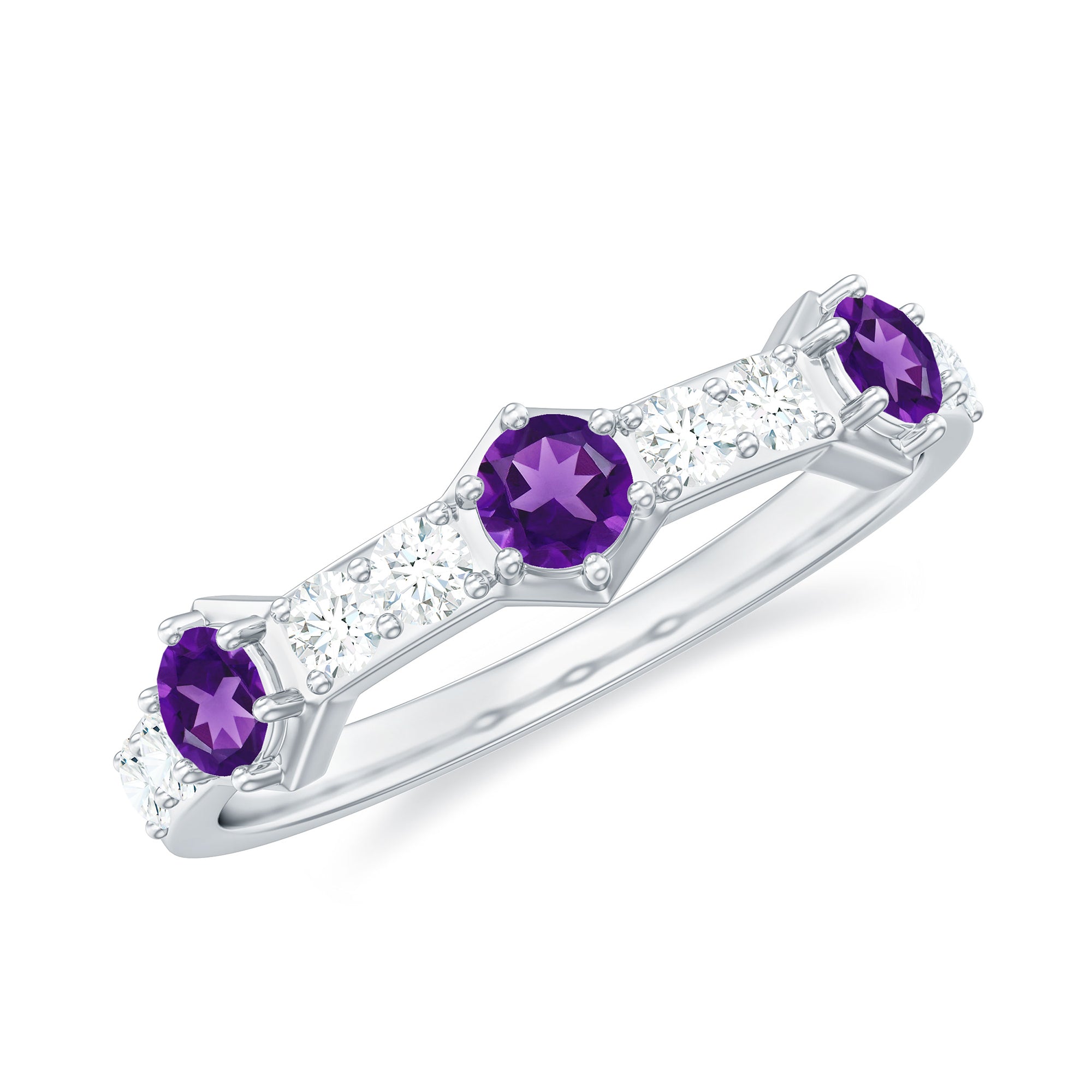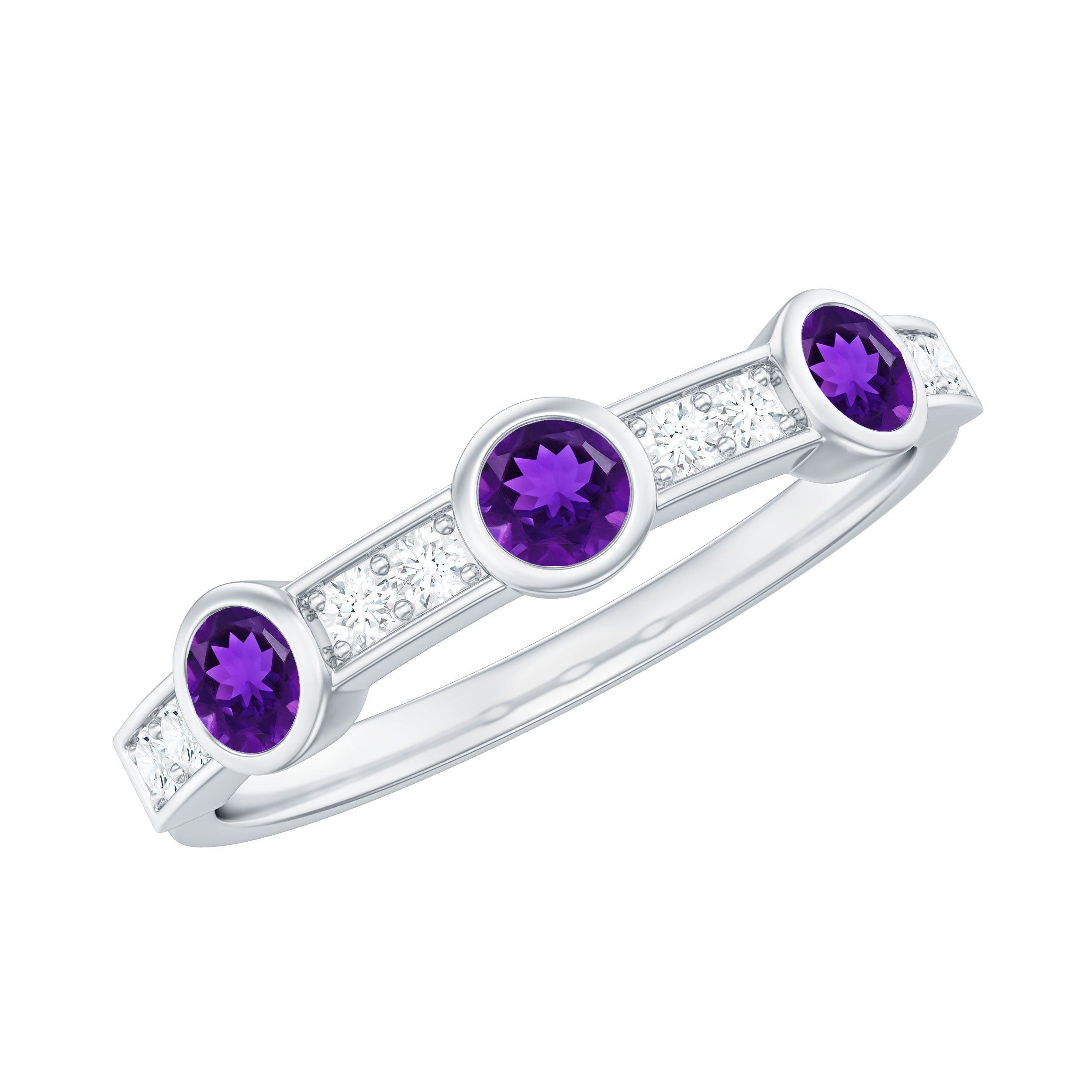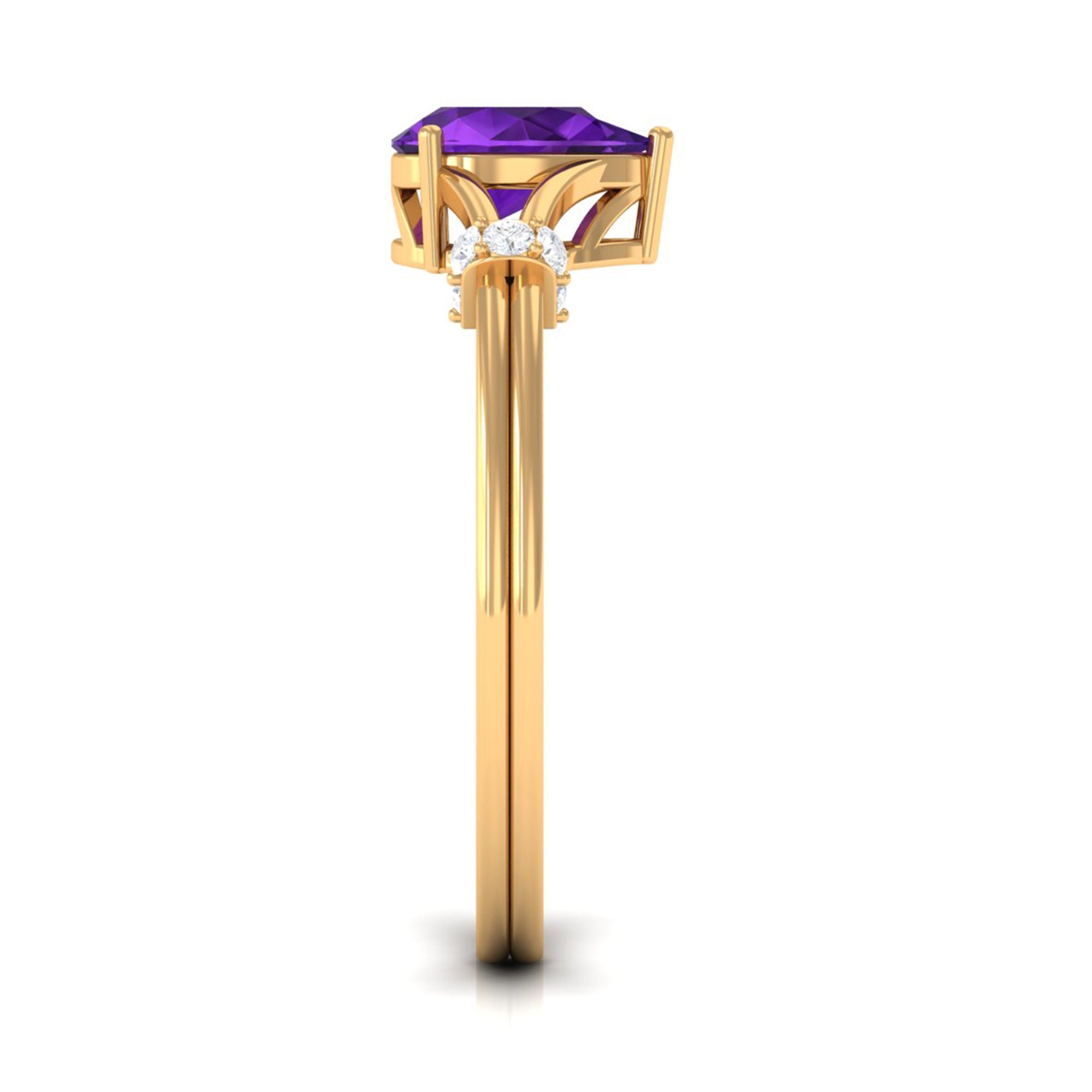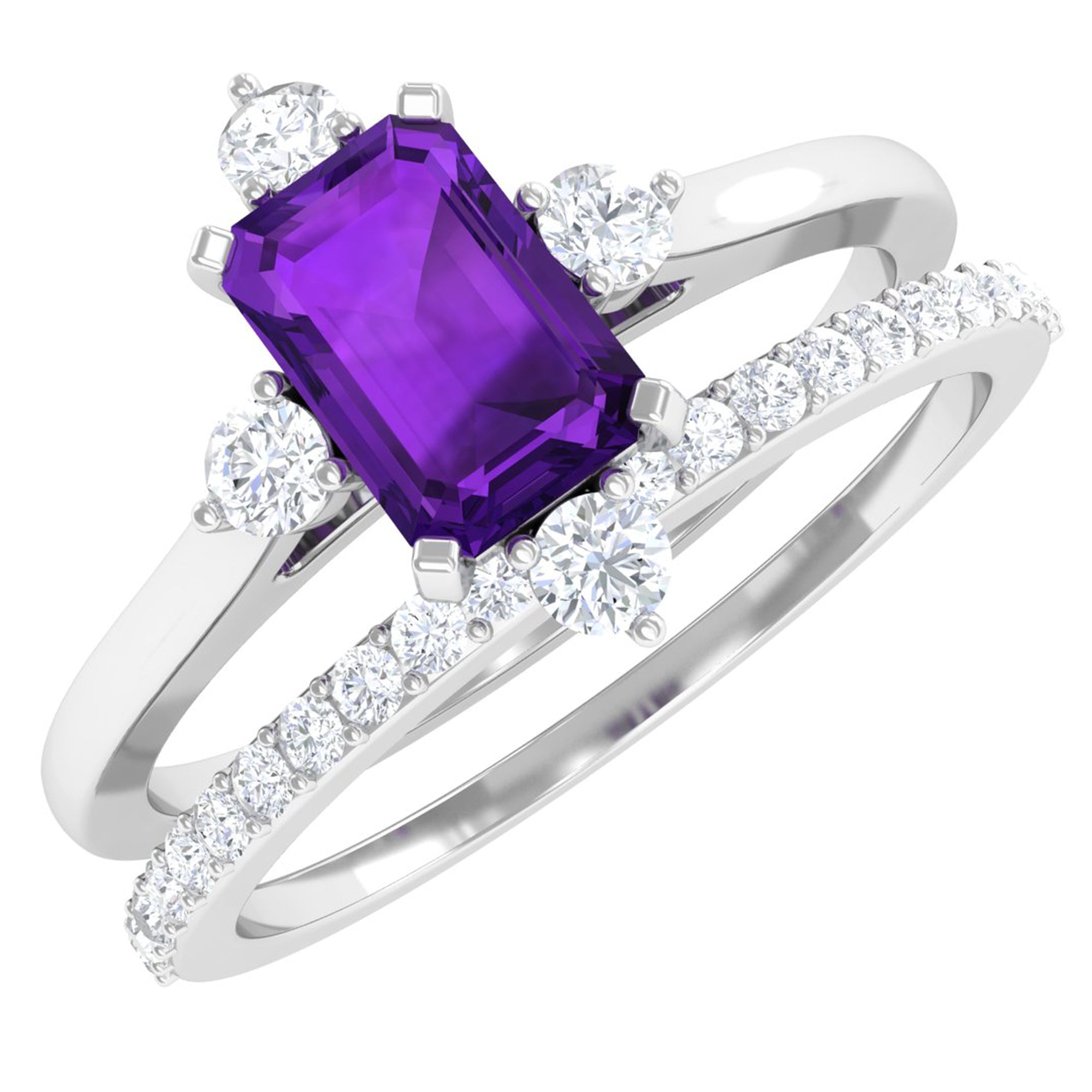 Let our amethyst wedding rings bear witness to your marriage vows with its alluring purple hues to let her heart go merry. The adorable purple gemstone of the quartz family has been a growing popularity among jewelers to craft fantastic amethyst wedding bands. The birthstone of February is believed to have positive influence on the wearer born in February. The considerable hardness and the mesmerizing beauty make amethyst a suitability when it comes to designing non-traditional amethyst wedding ring set for couples.