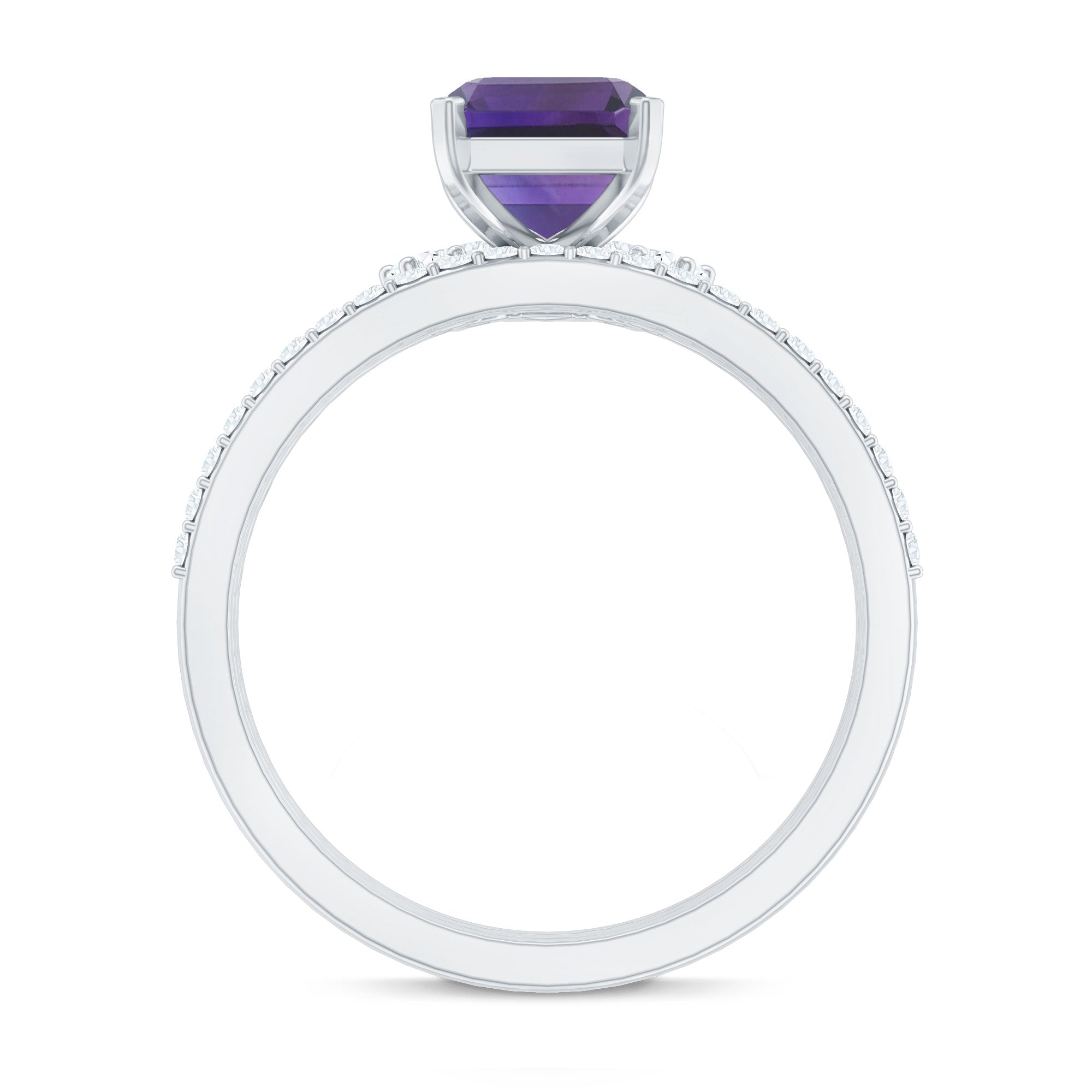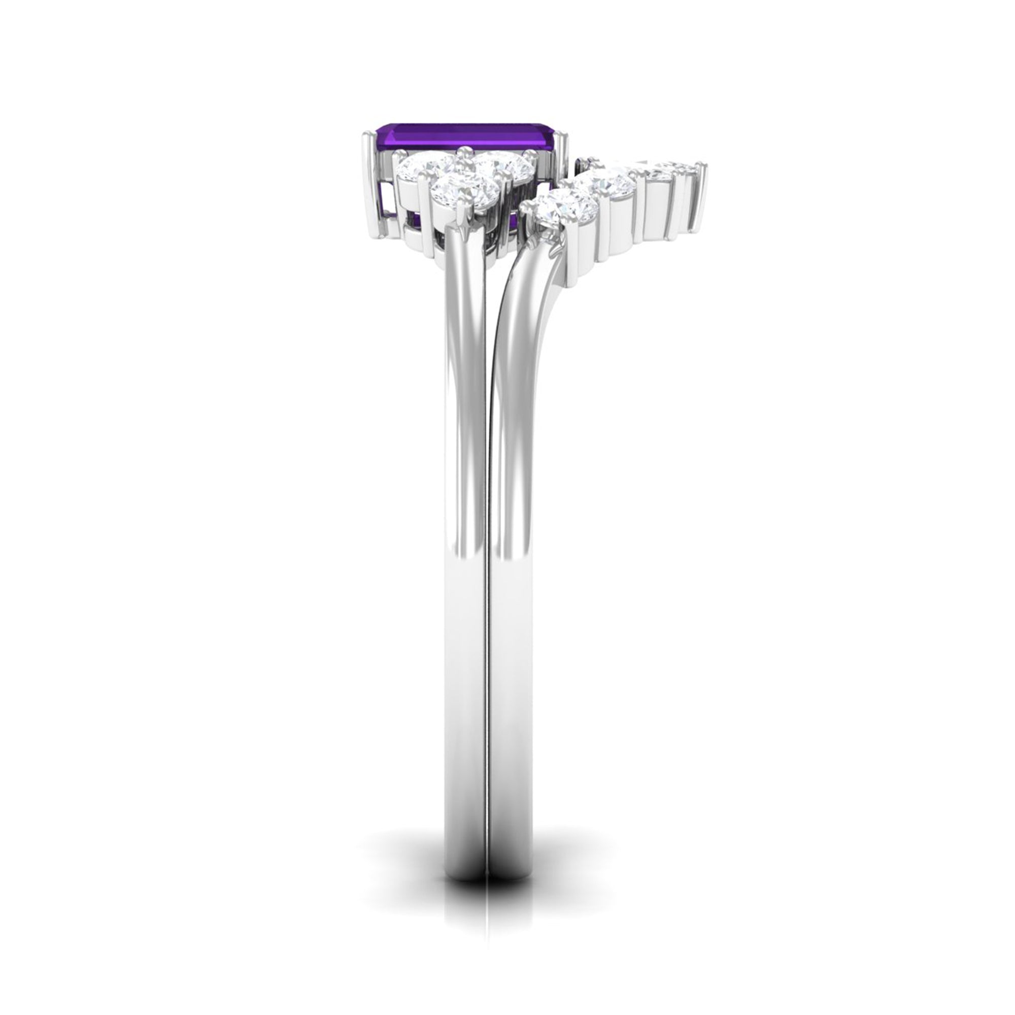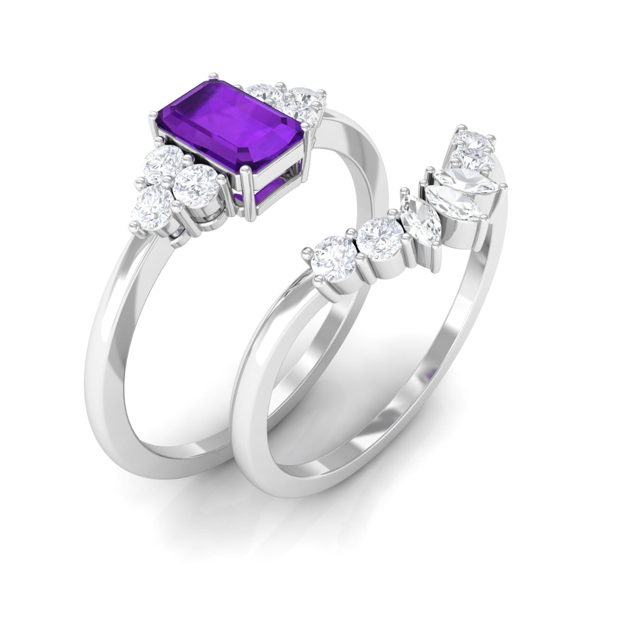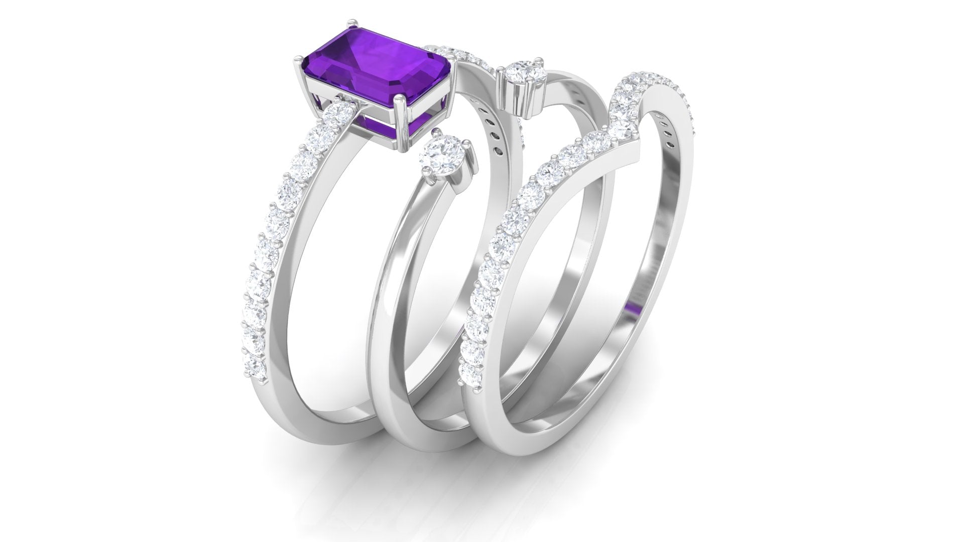 Let our amethyst wedding rings bear witness to your marriage vows with its alluring purple hues to let her heart go merry. The adorable purple gemstone of the quartz family has been a growing popularity among jewelers to craft fantastic amethyst wedding bands. The birthstone of February is believed to have positive influence on the wearer born in February. The considerable hardness and the mesmerizing beauty make amethyst a suitability when it comes to designing non-traditional amethyst wedding ring set for couples.