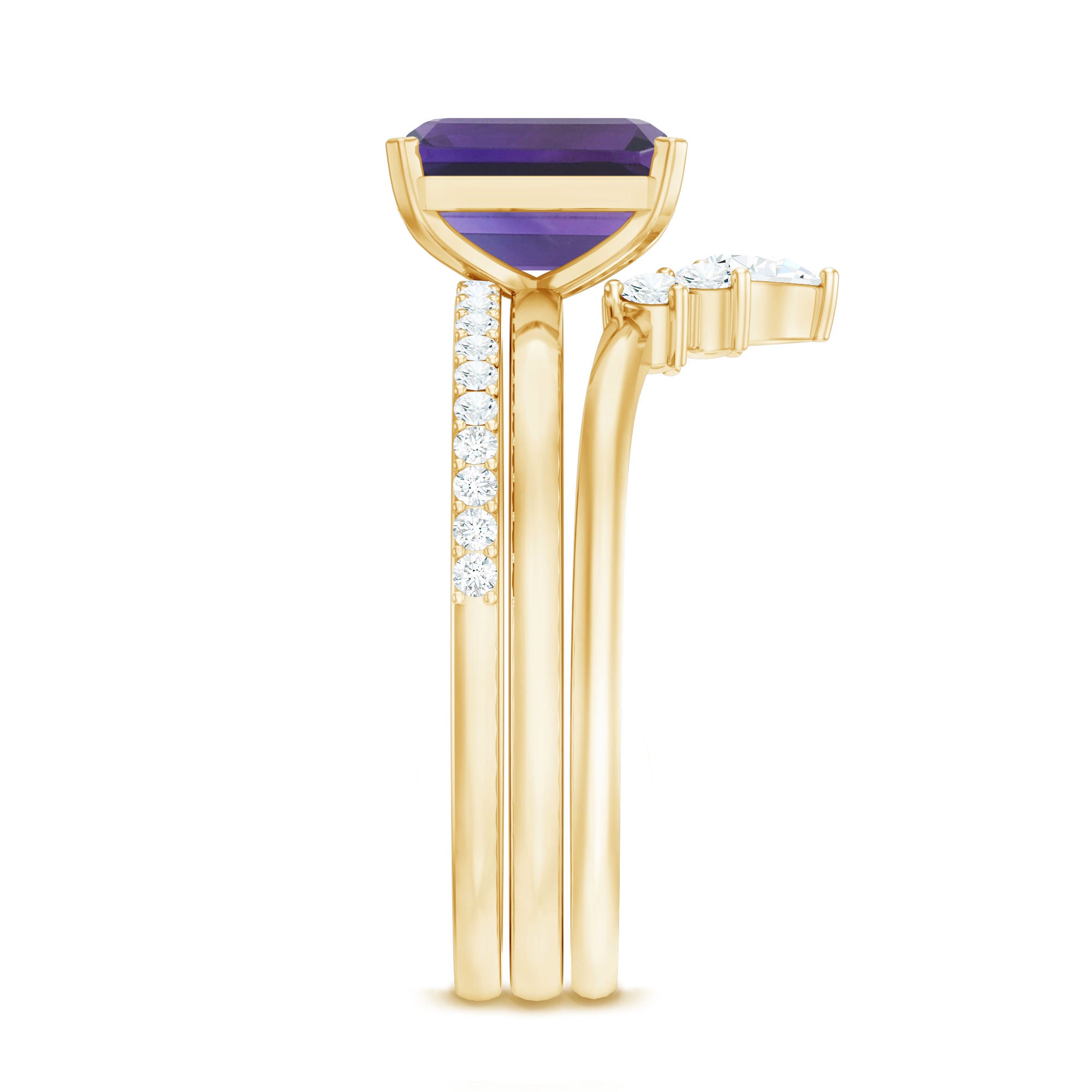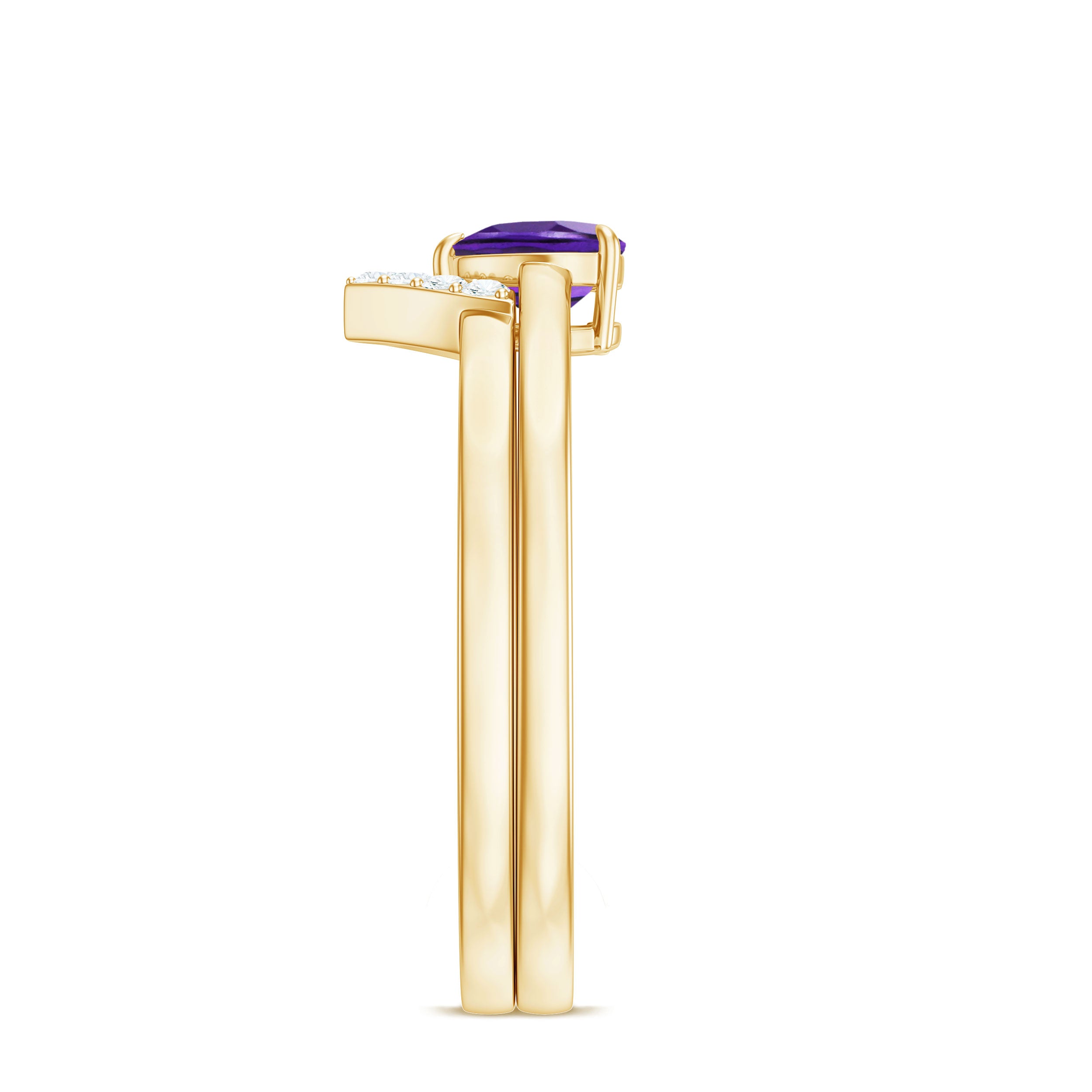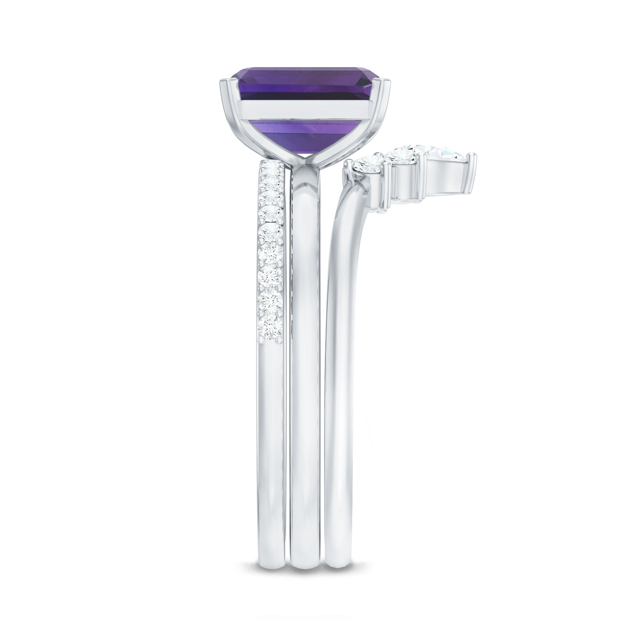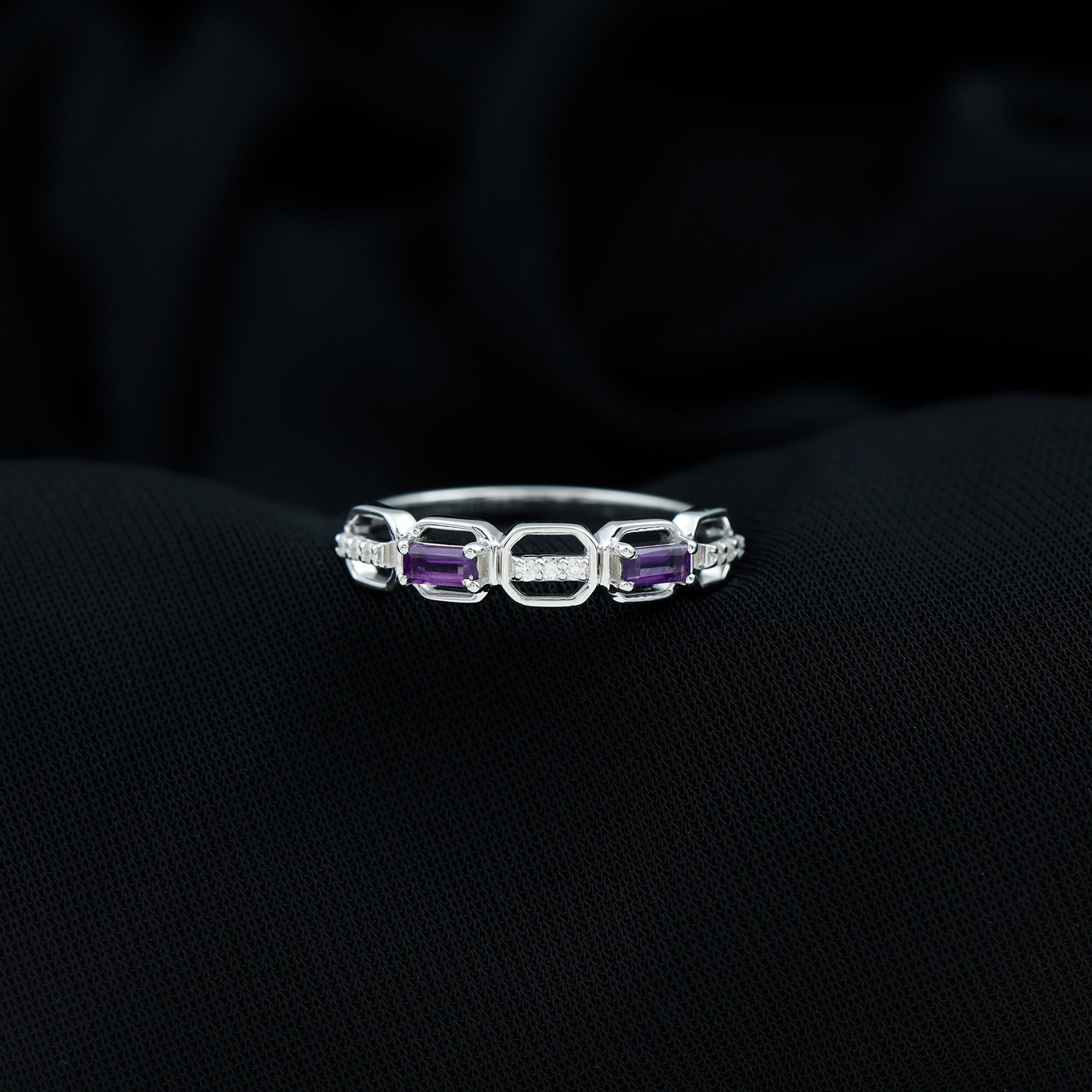 Let our amethyst wedding rings bear witness to your marriage vows with its alluring purple hues to let her heart go merry. The adorable purple gemstone of the quartz family has been a growing popularity among jewelers to craft fantastic amethyst wedding bands. The birthstone of February is believed to have positive influence on the wearer born in February. The considerable hardness and the mesmerizing beauty make amethyst a suitability when it comes to designing non-traditional amethyst wedding ring set for couples.