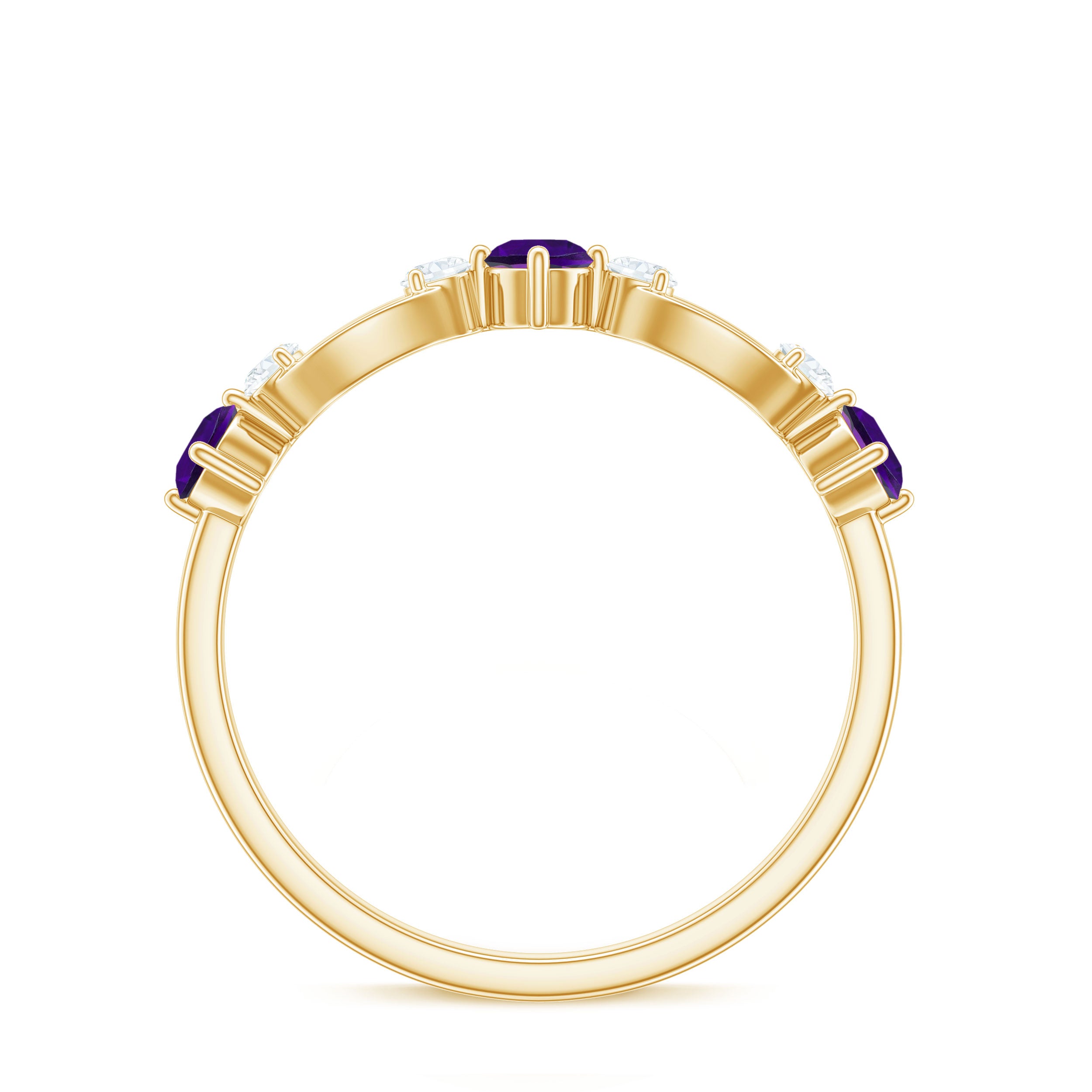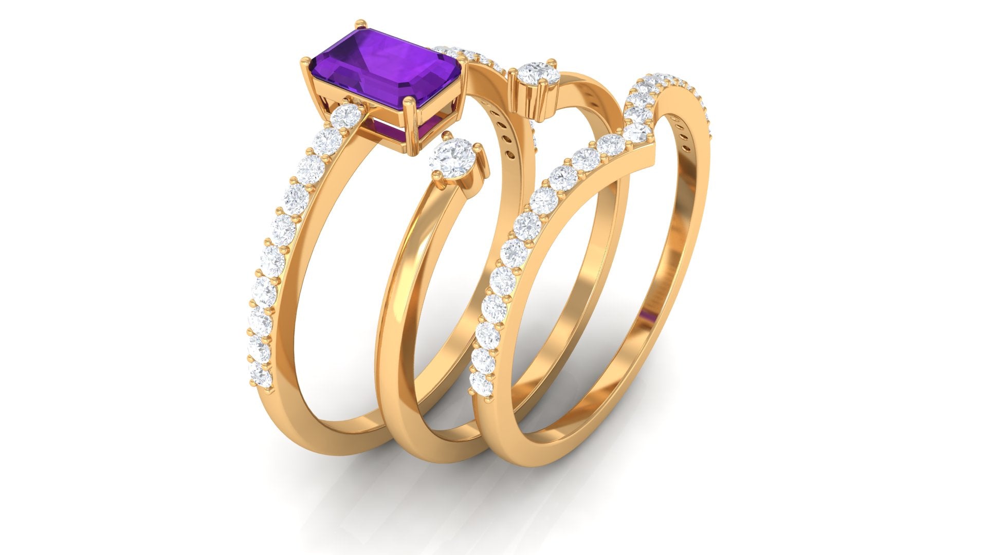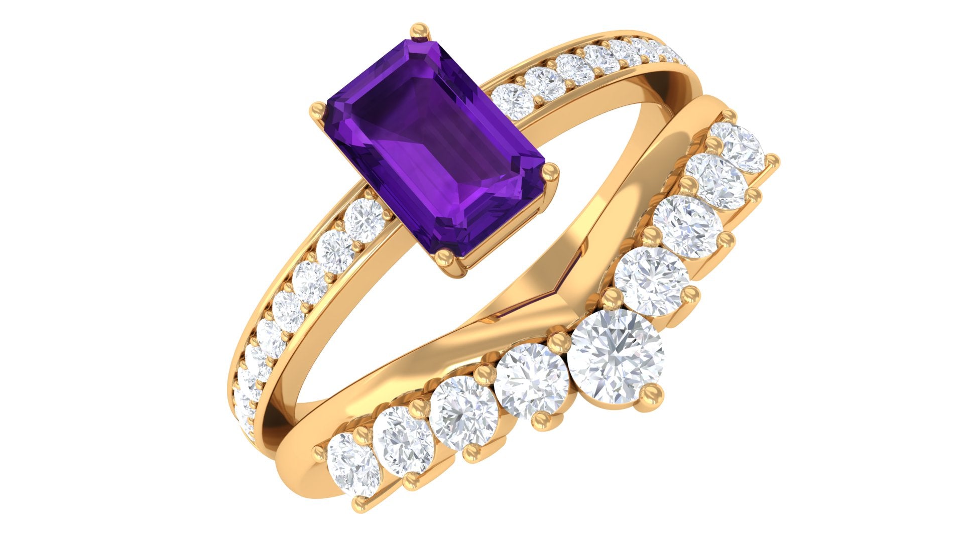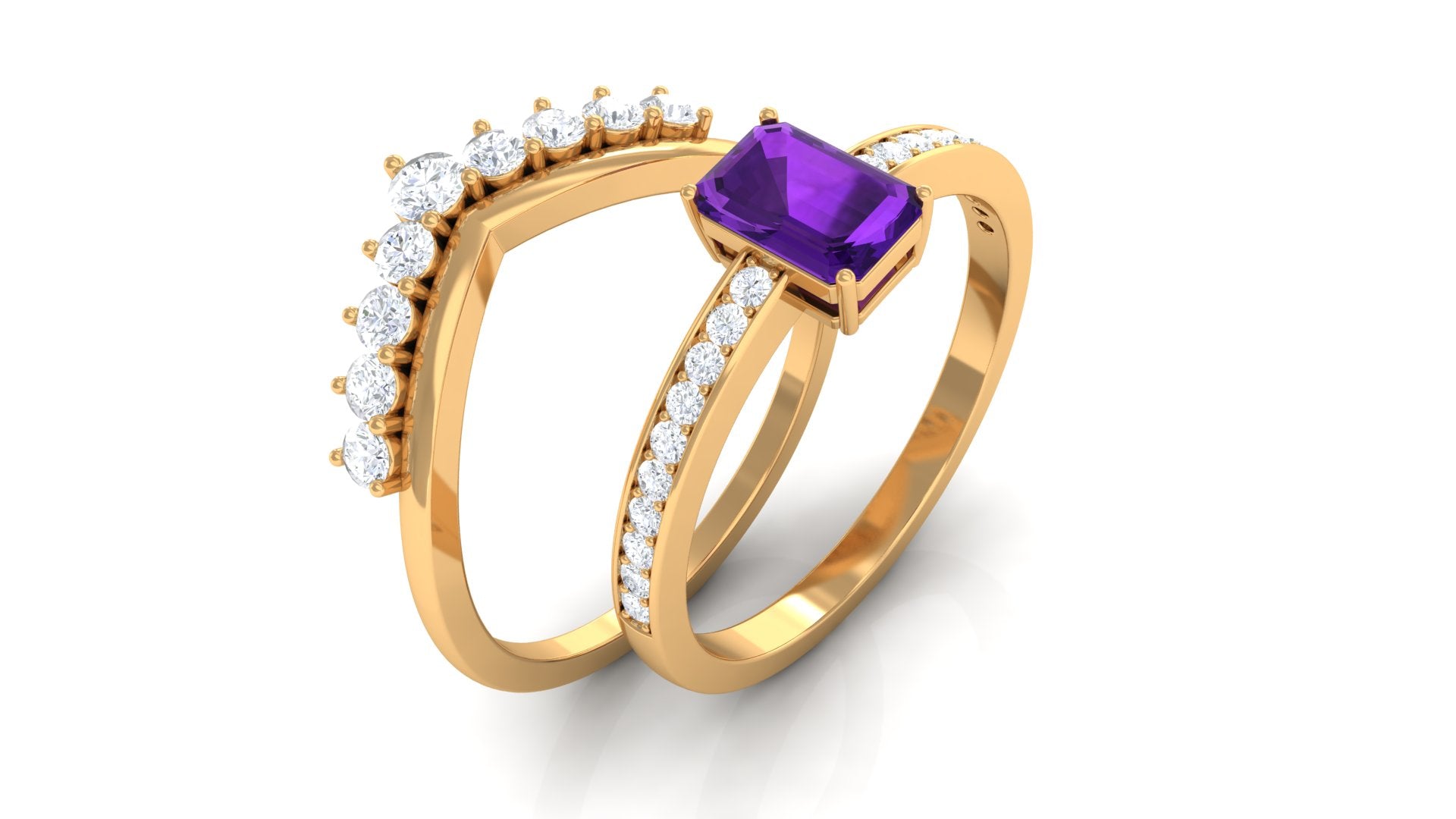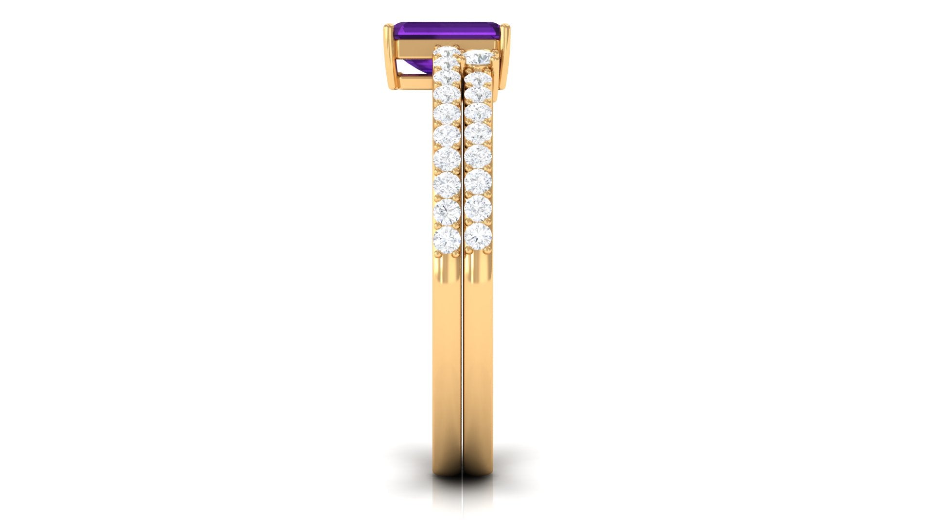 Rosec Jewels’ experienced team of gemologists and artisans are the backbone behind the fine artistic delicacies of our collection of wedding rings for women. After thorough examination of all the quality factors, an amethyst finds it way to wedding rings. An exotic range of amethyst rings for wedding by different combinations of gemstone shapes, gemstone settings and gold embellishments comes handy.