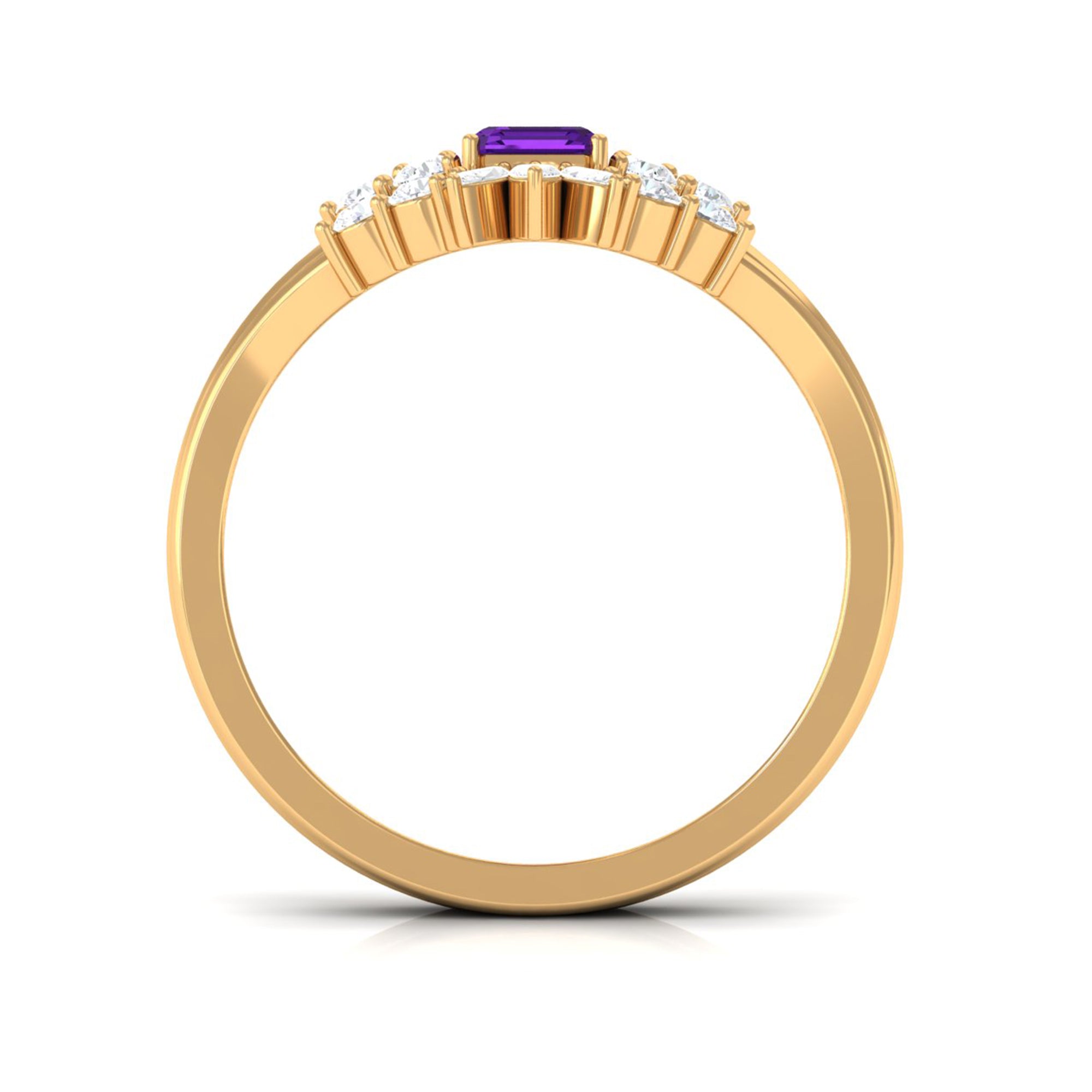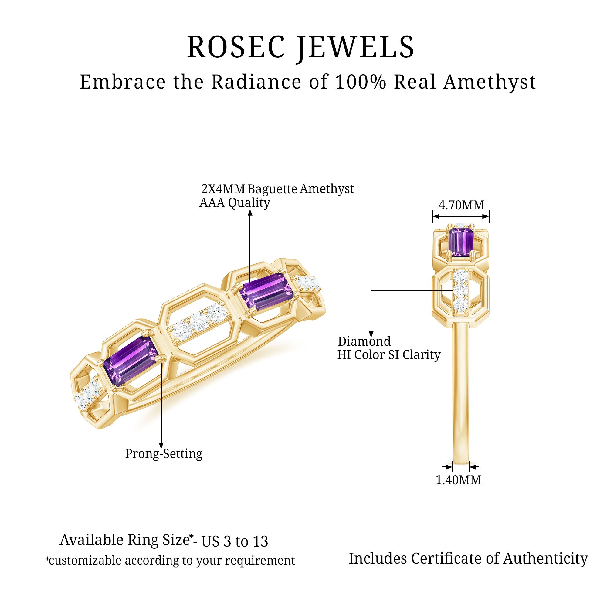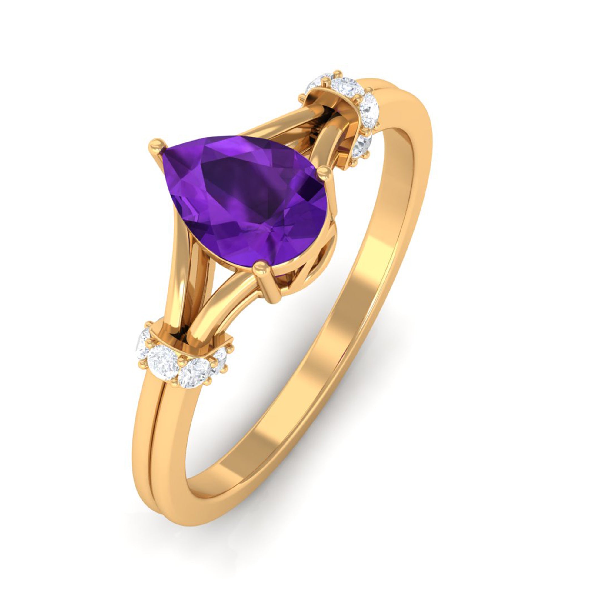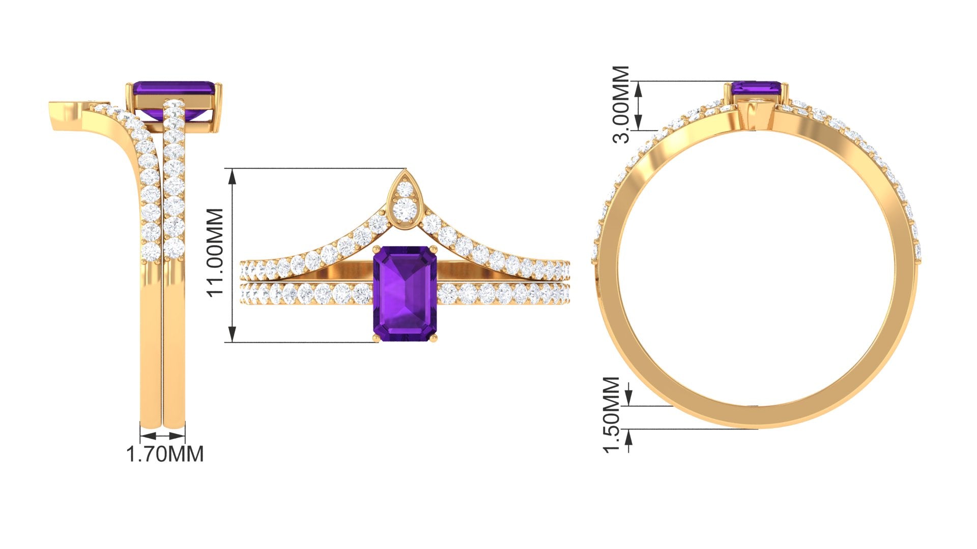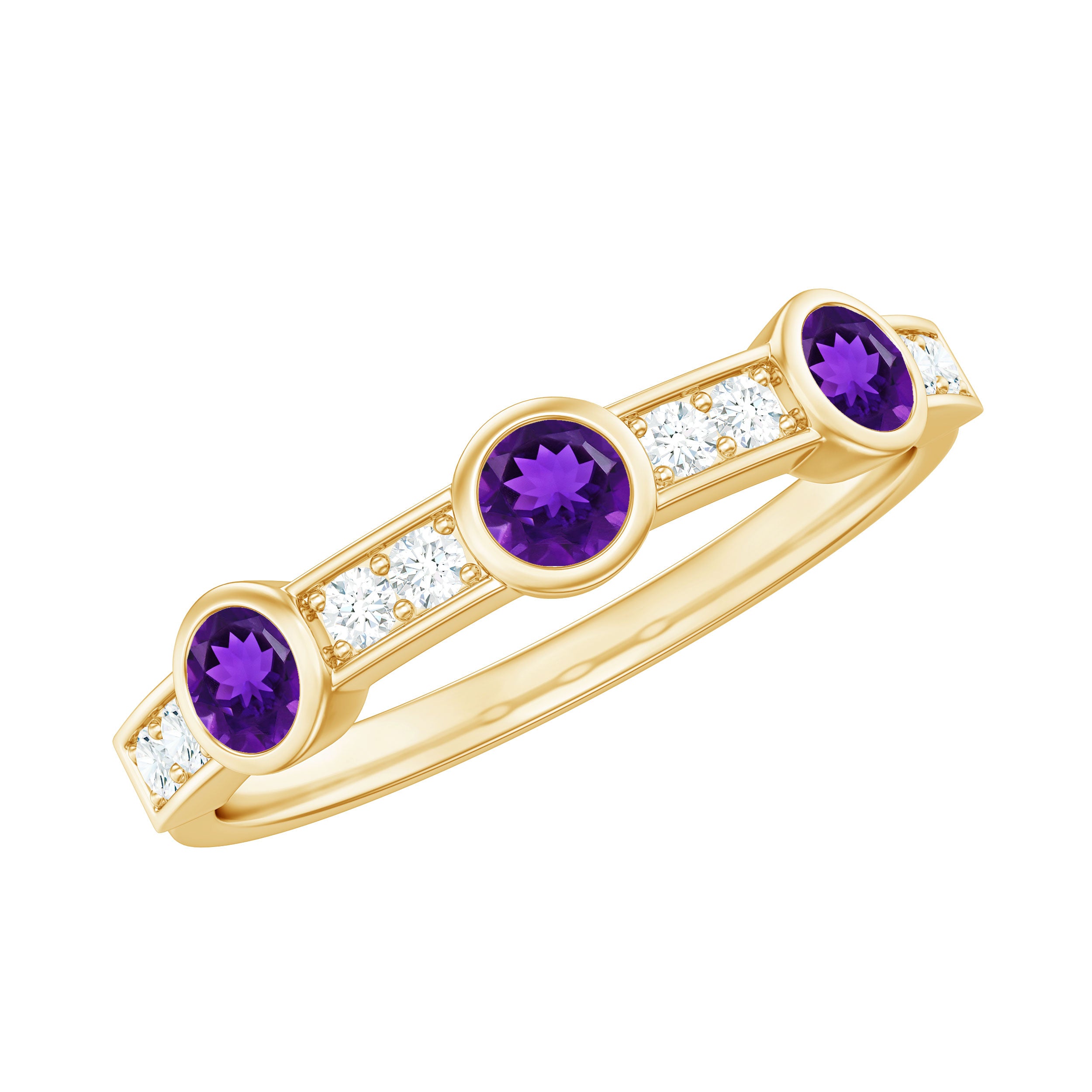 Rosec Jewels’ experienced team of gemologists and artisans are the backbone behind the fine artistic delicacies of our collection of wedding rings for women. After thorough examination of all the quality factors, an amethyst finds it way to wedding rings. An exotic range of amethyst rings for wedding by different combinations of gemstone shapes, gemstone settings and gold embellishments comes handy.