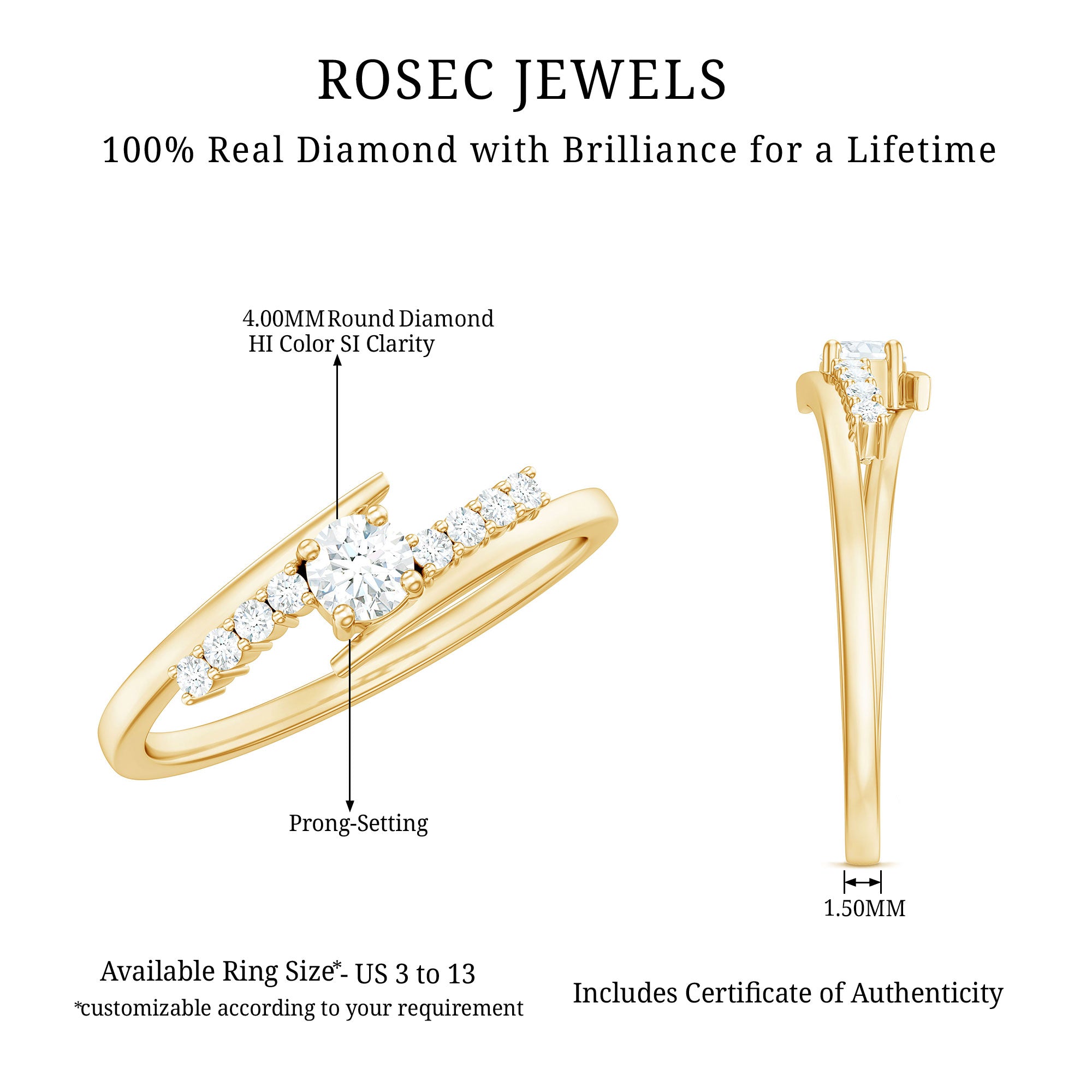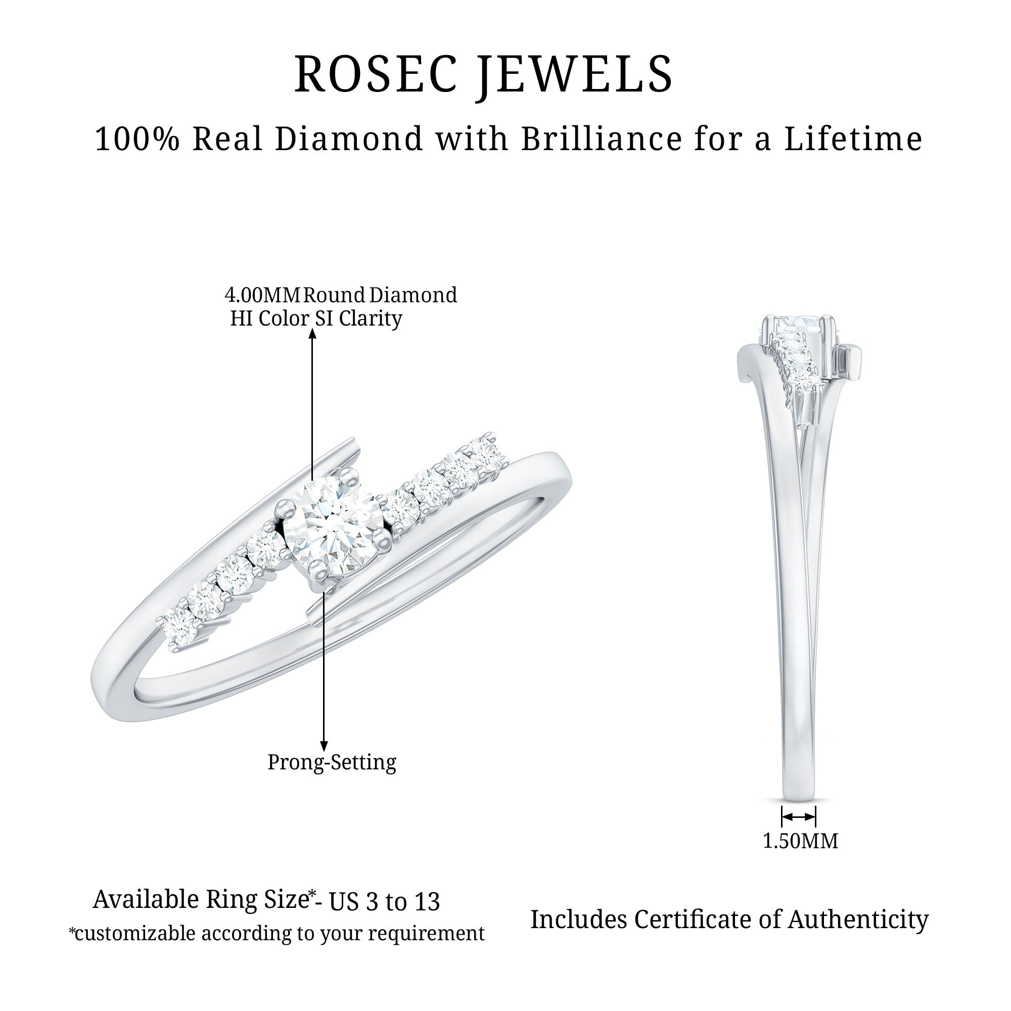 - Carat: The carat weight of Diamond Jewelry typically ranges from a minimum of around 0.25 CT to around 4 CT.