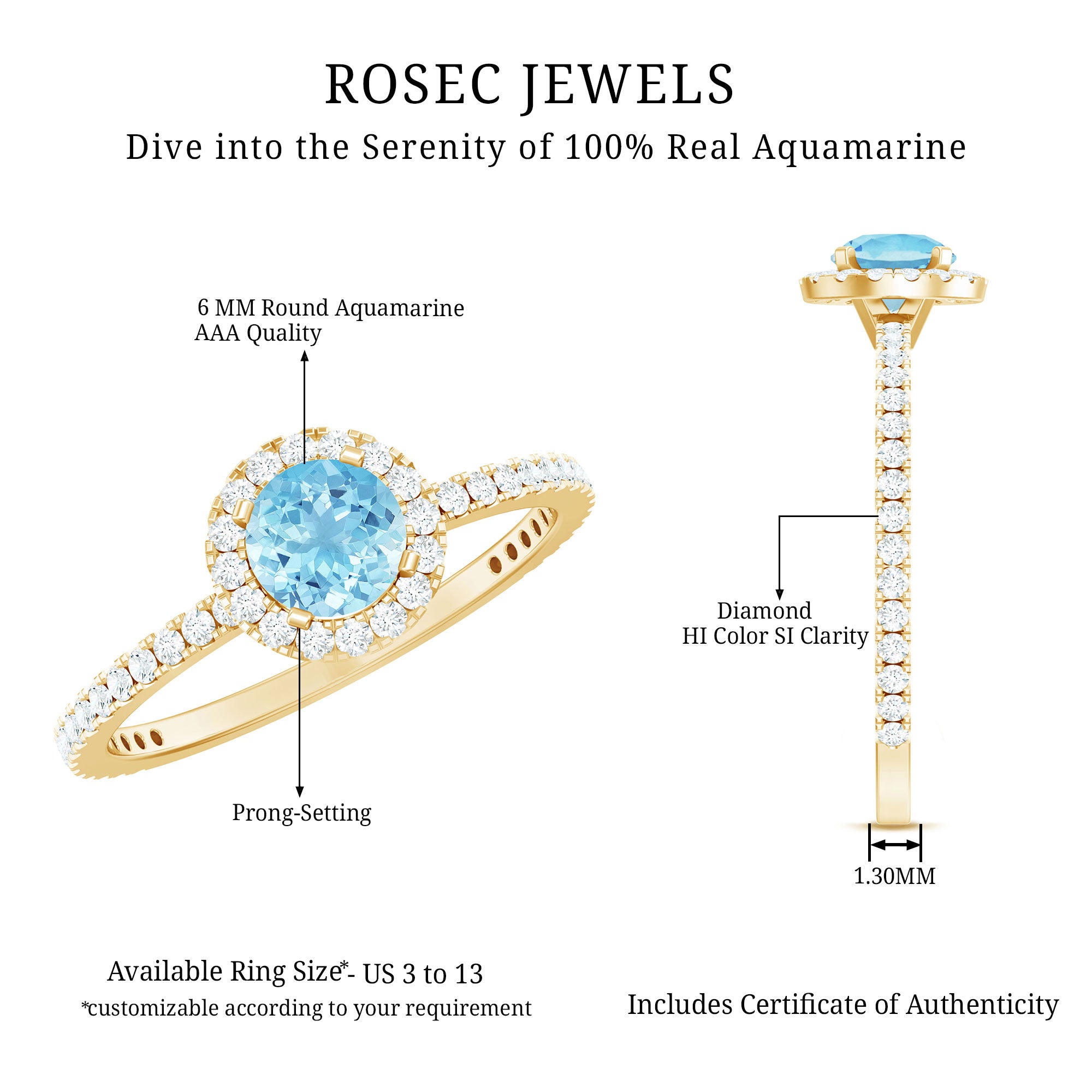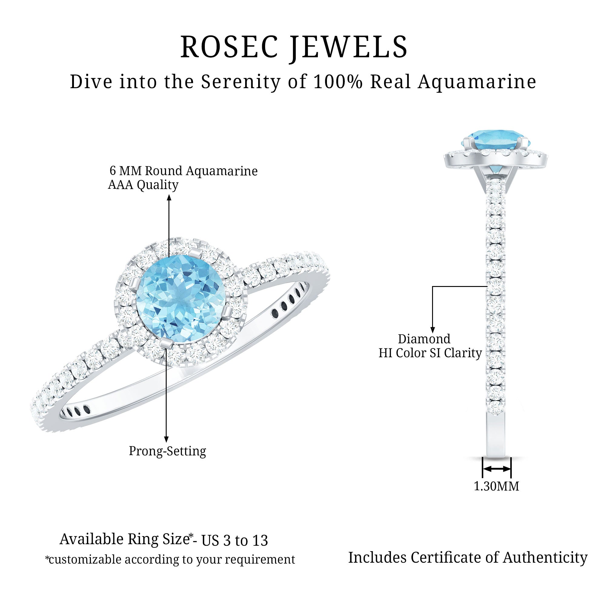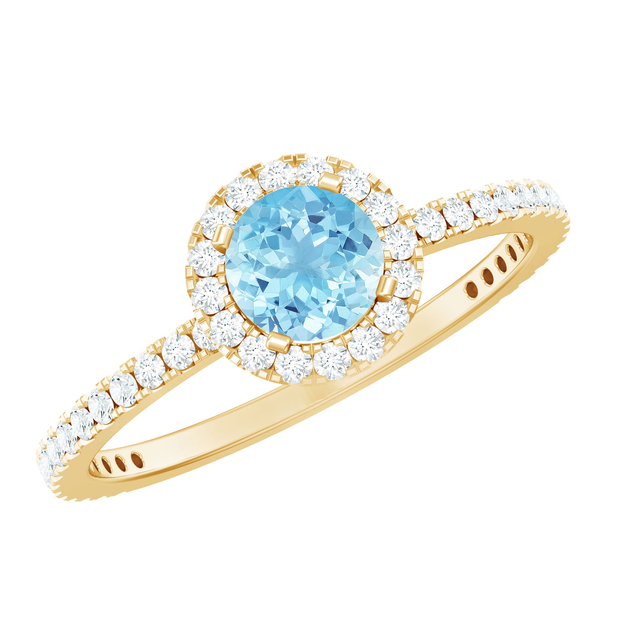 Aquamarine looks stunning in white gold for a crisp contrast, while yellow and rose gold add warmth and vintage charm. Protective settings such as halos, bezels, and secure prongs help safeguard the gemstone and enhance brilliance for daily wear.