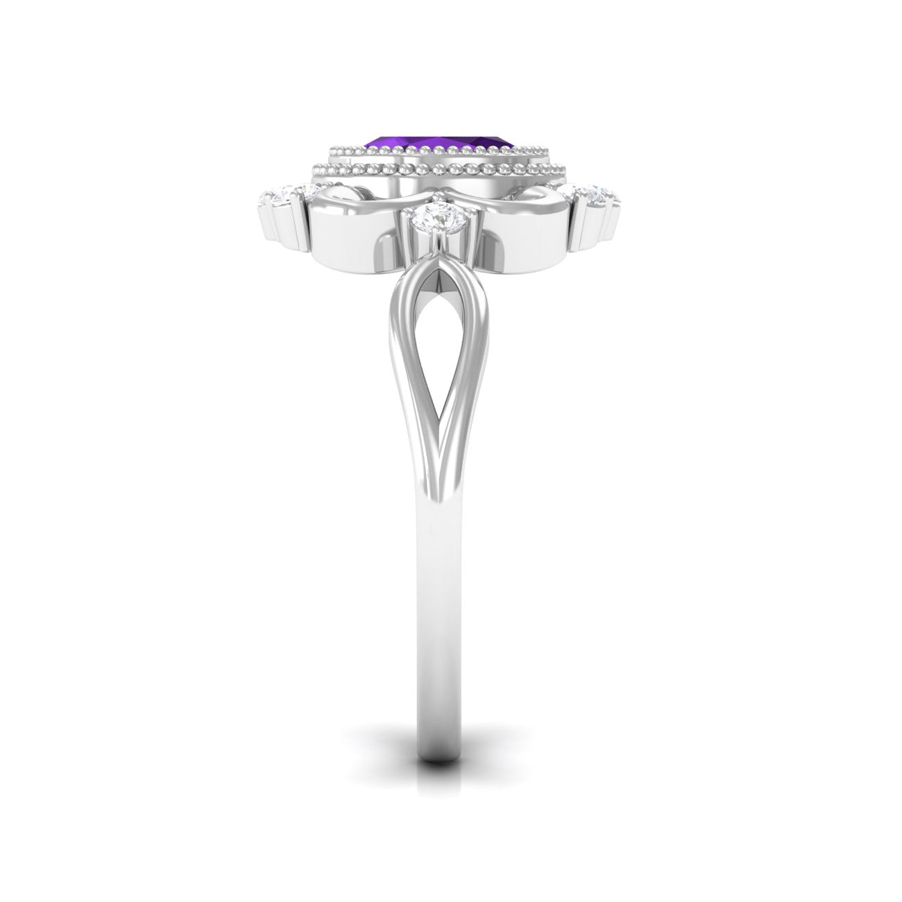 An Art Deco marquise engagement ring will have pointed ends and curved sides. The marquise cut can give the gem in an Art Deco ring an elongated look. This cut boasts 56 facets, which deliver a slender and longer appearance.