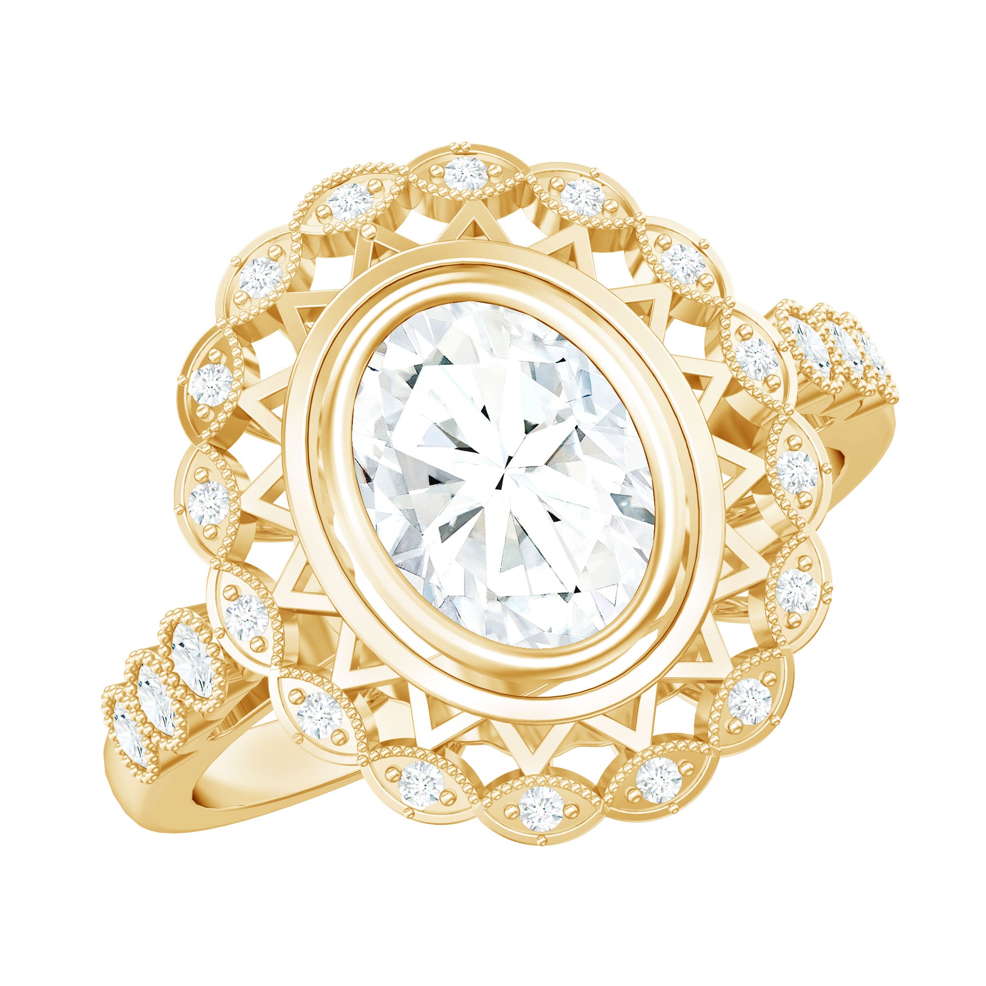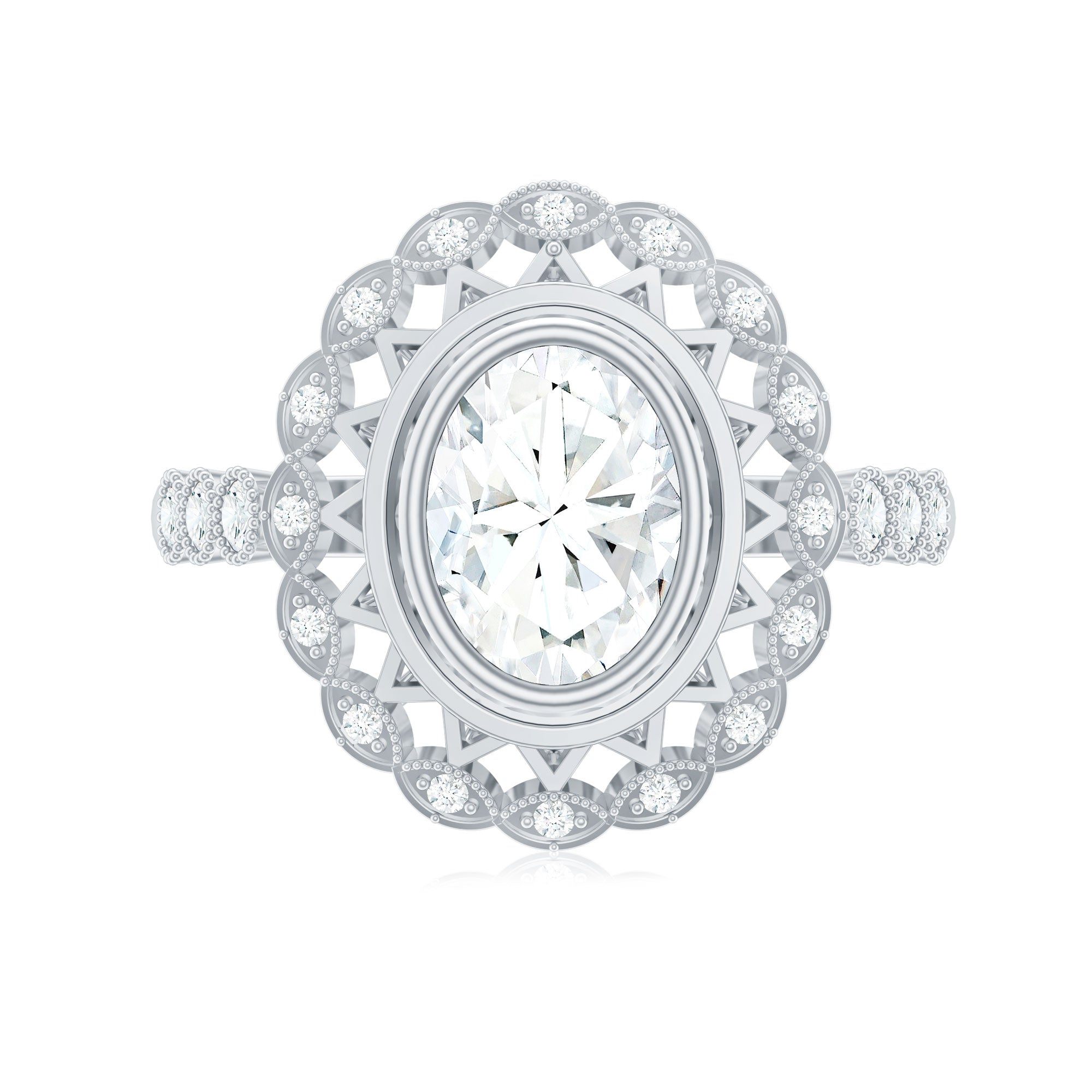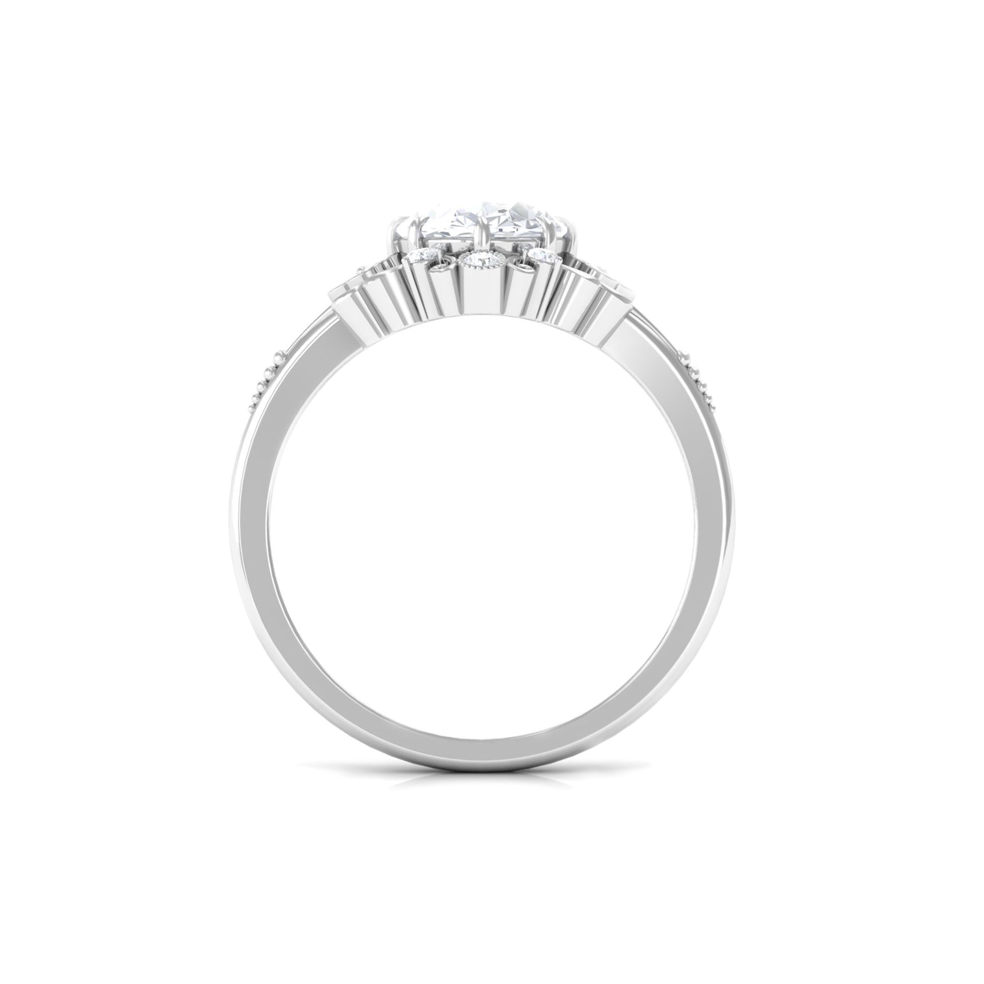 But the shine of moissanite art deco rings surpasses diamonds. A thing about Art Deco design is that the stone needs to be big. If you want to go big with your gemstone, moissanite is a great choice because of its low weight.
