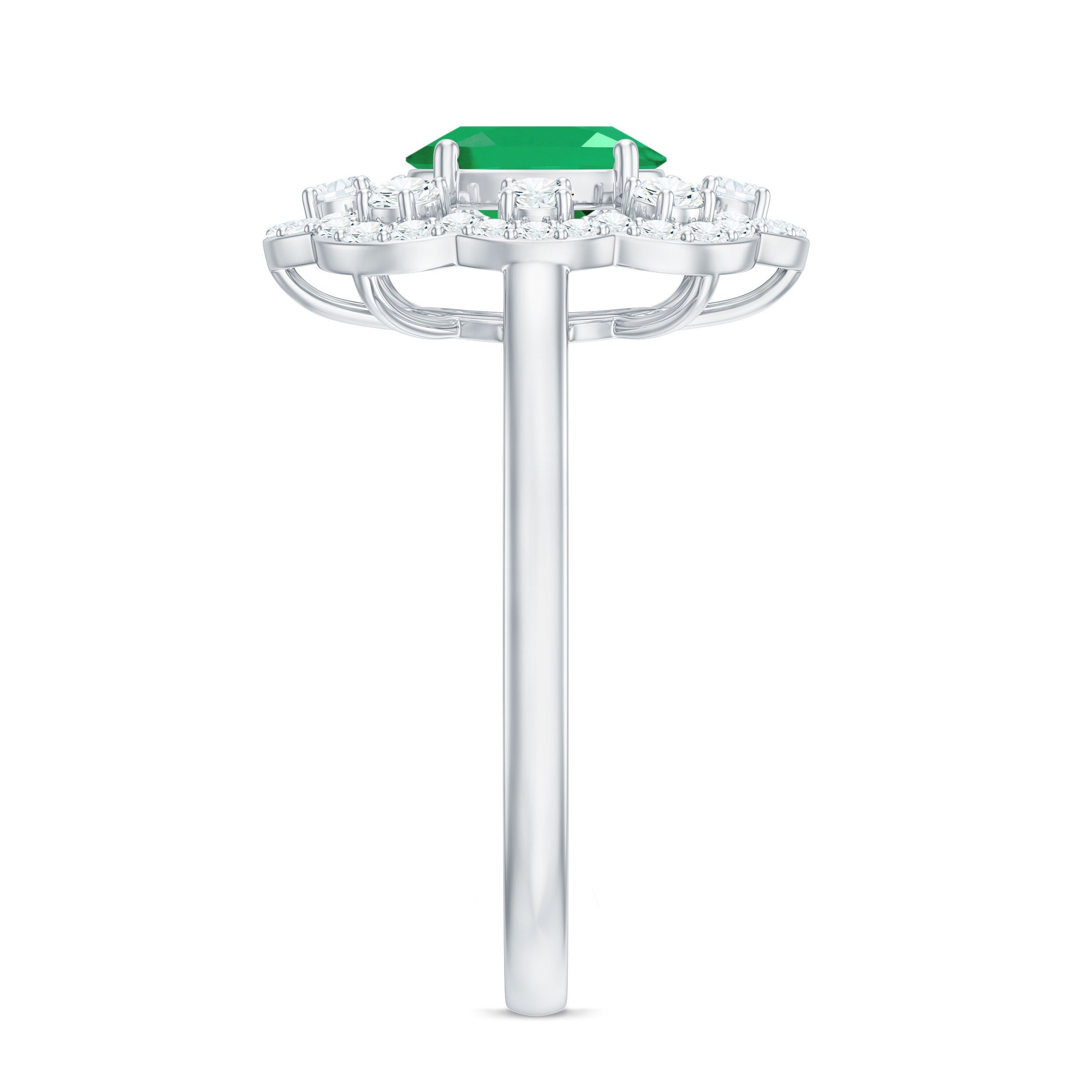 The emerald cut art deco engagement rings can be instantly associated with the roaring 20s. The long and symmetrical facets of the emerald cut bring attention to the center stone of the ring. The emerald cut can also support a beautiful play of color to give your Art Deco engagement ring a modern and sophisticated look. The stunning hall of mirrors effect created by an emerald cut can enhance the clarity of Art Deco rings.