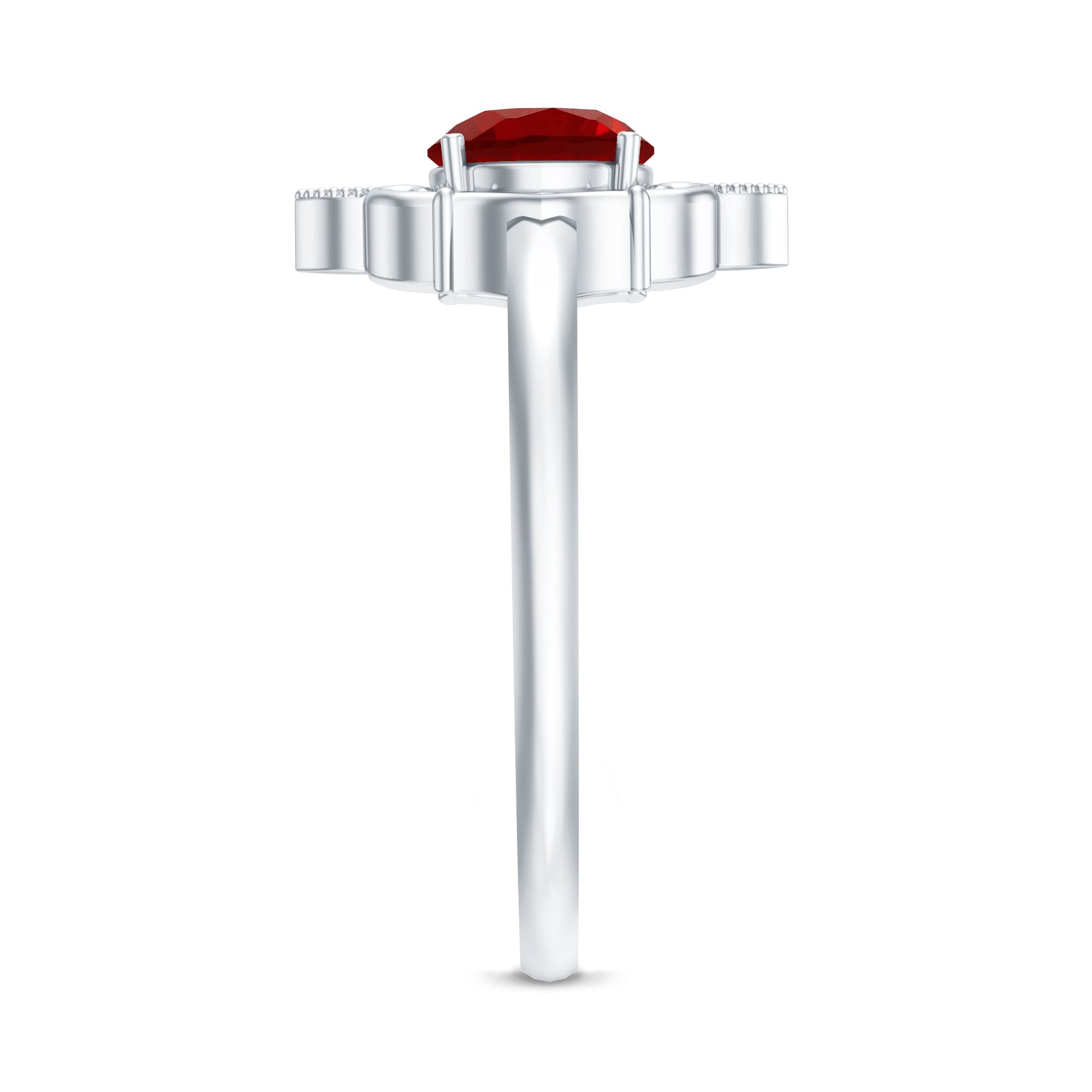 The gorgeousness of rubies goes exceptionally well with the aesthetics of the Art Deco period. An art deco ruby engagement ring is versatile and eye-catching. You can customize these engagement rings with a diamond in the center and diamonds on the side.