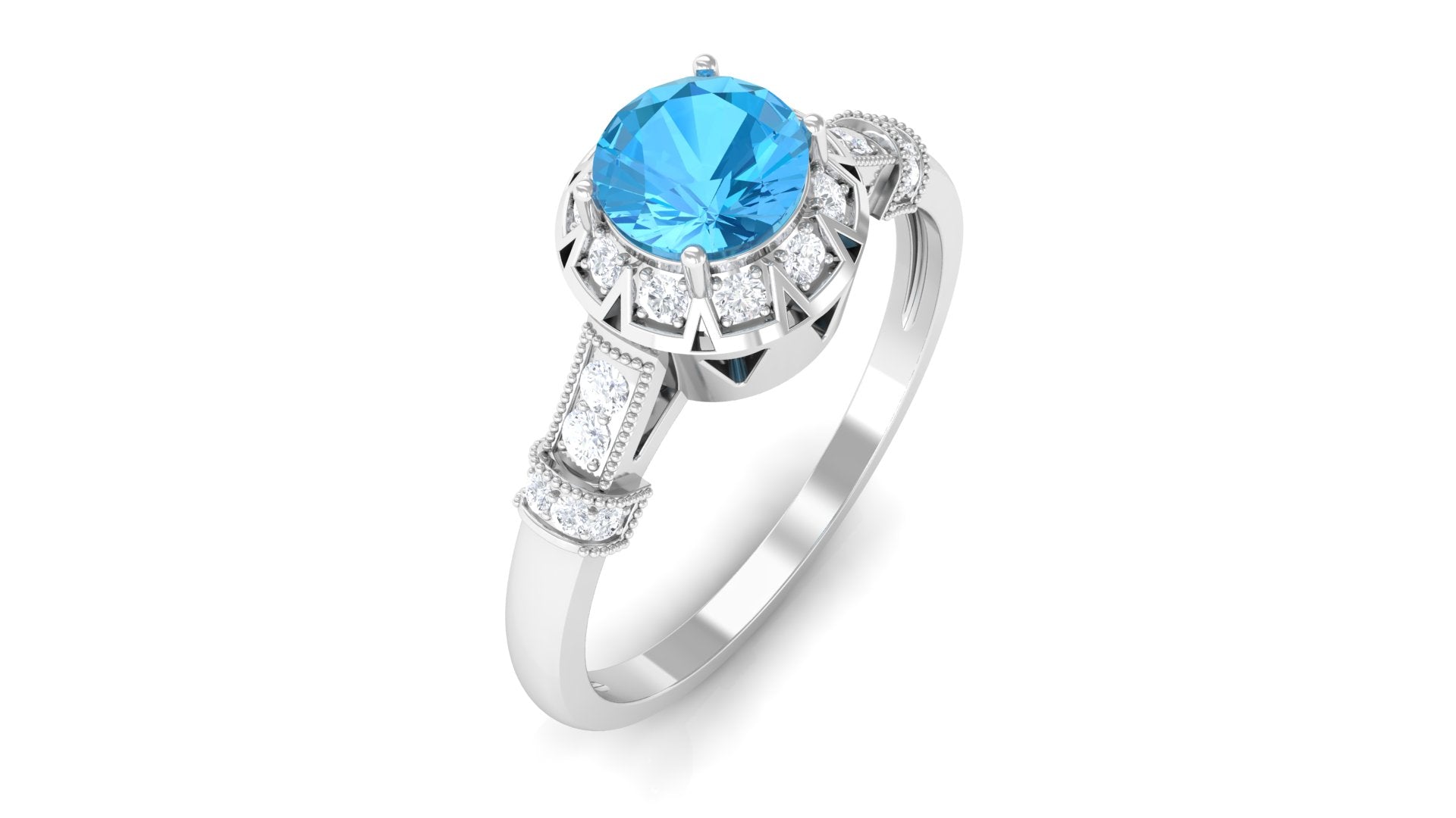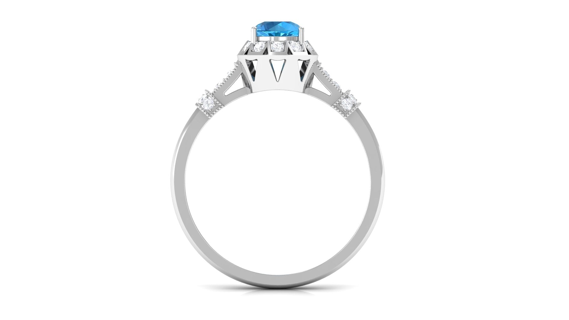 The stunning blue hues of London Blue Topaz complement the old-world charm of Art Deco rings. These blue topaz rings will certainly melt your heart in an instant. If you think you are all about those rings with intricate details and a vintage vibe, then this is your sign to buy a London blue topaz art deco ring. Stay true to the vintage style, exhibiting some fine milgrain details and cutwork on gallery of the ring.