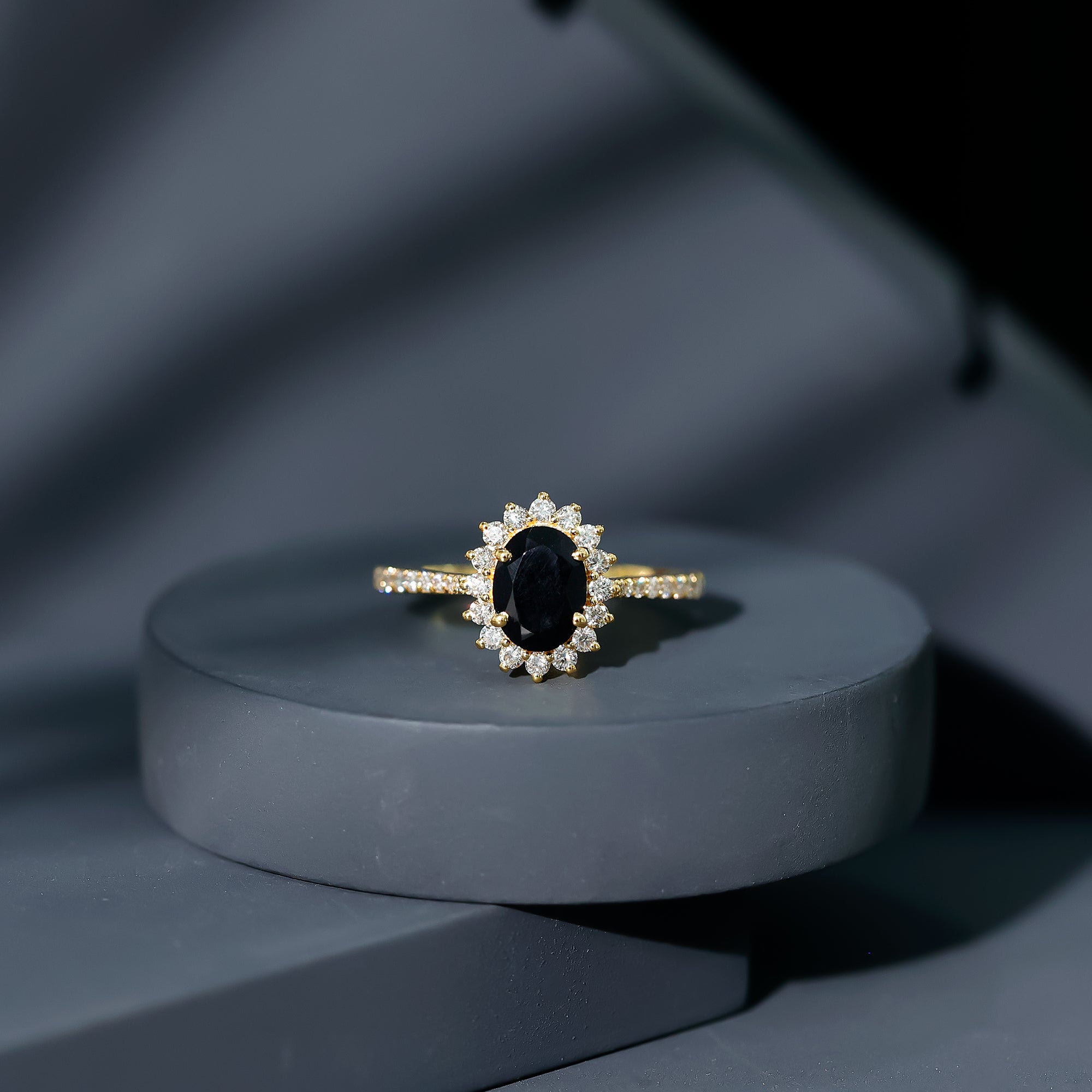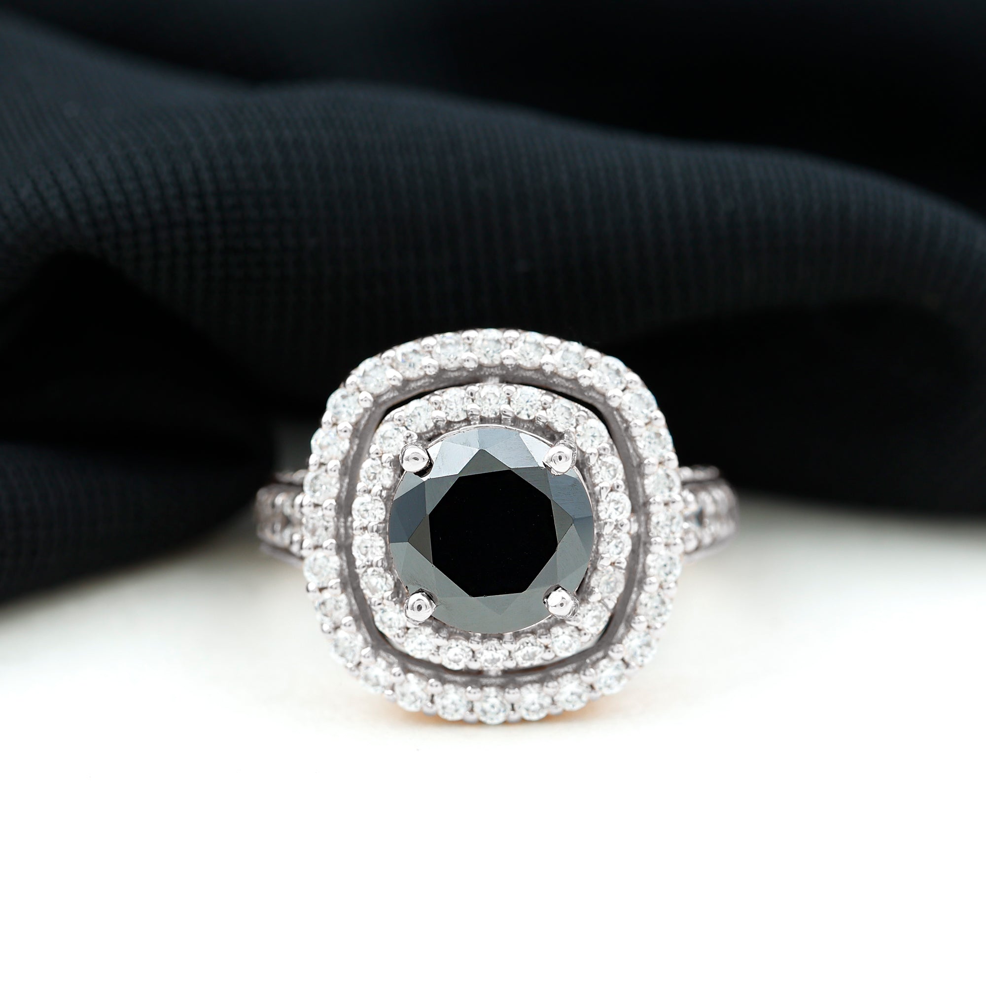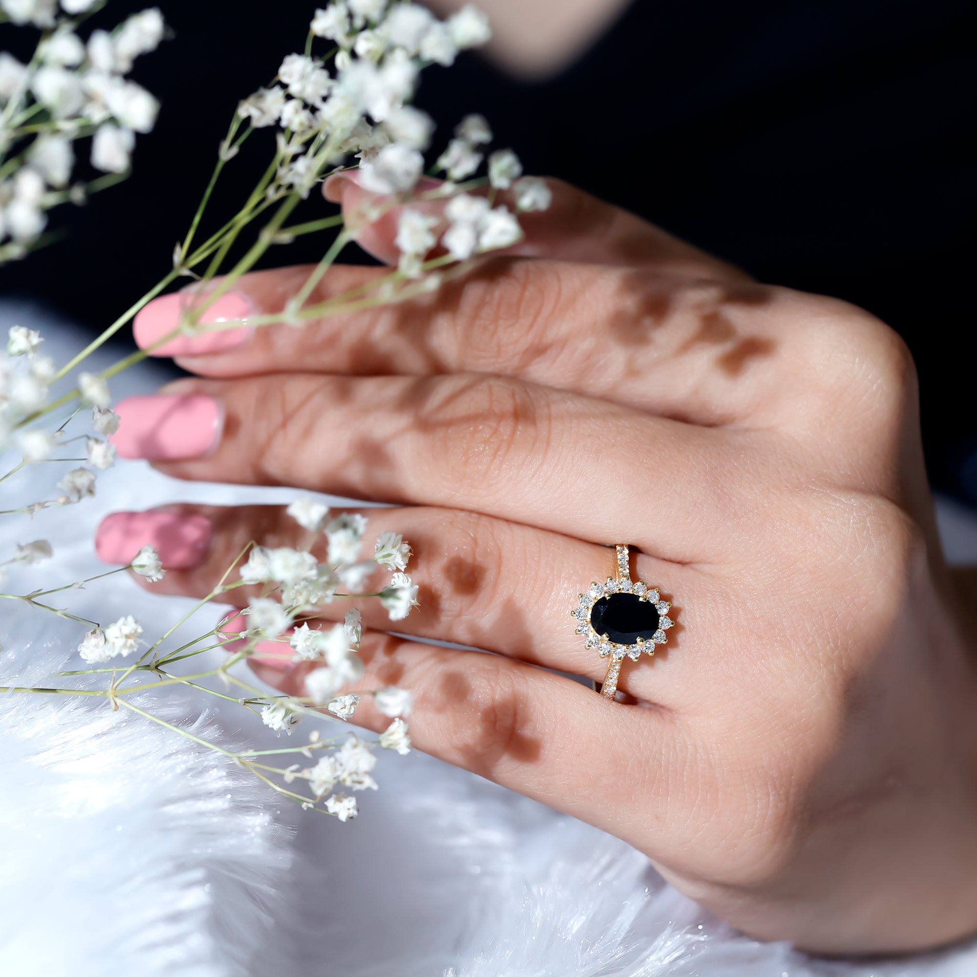 Lab Created Black Diamond Halo Engagement rings: Black diamond making the heart of the ring is surrounded by the accent of other shining gemstones, like moissanite or diamonds. The halo around the gemstone not only adds a sparkle, but offers it protection too.
