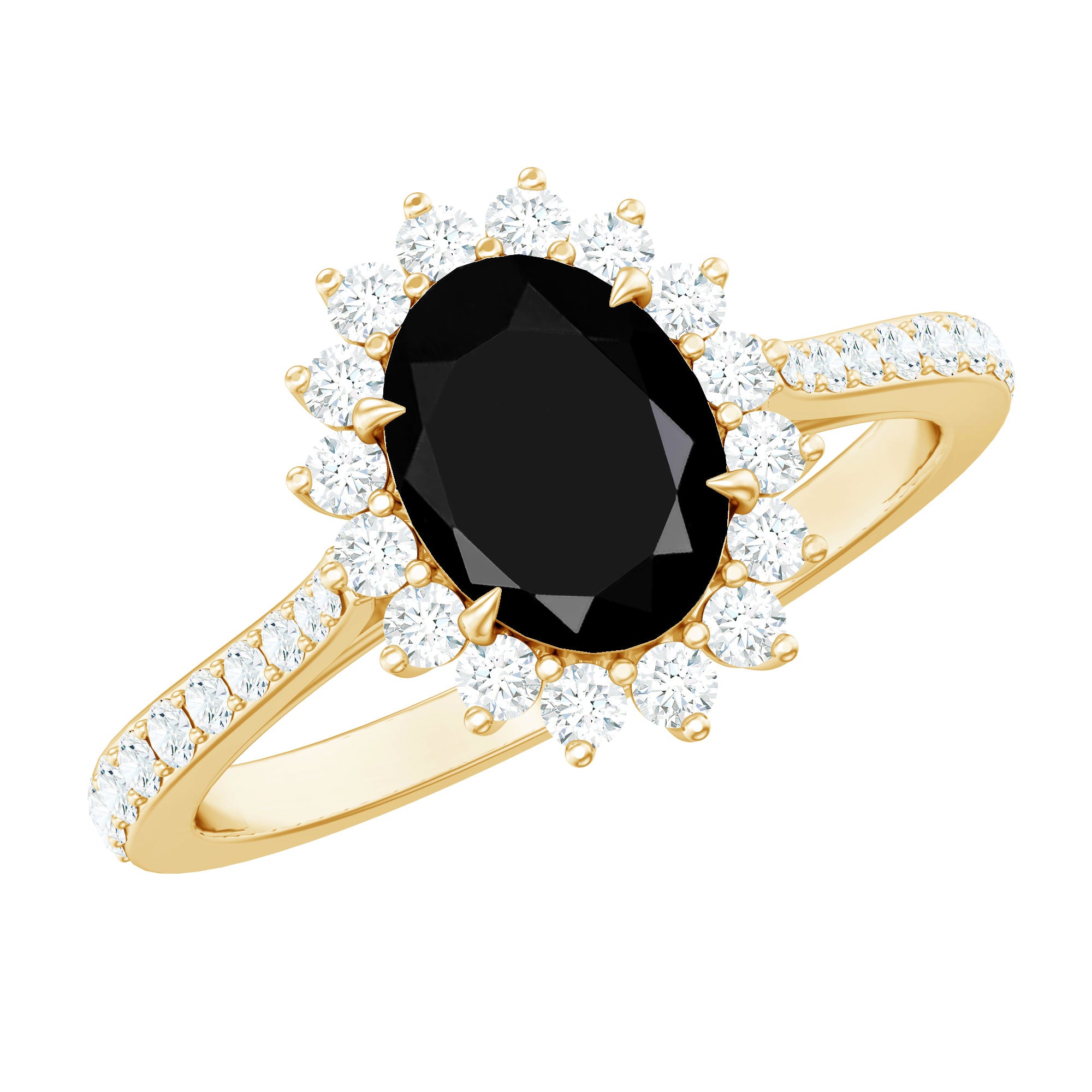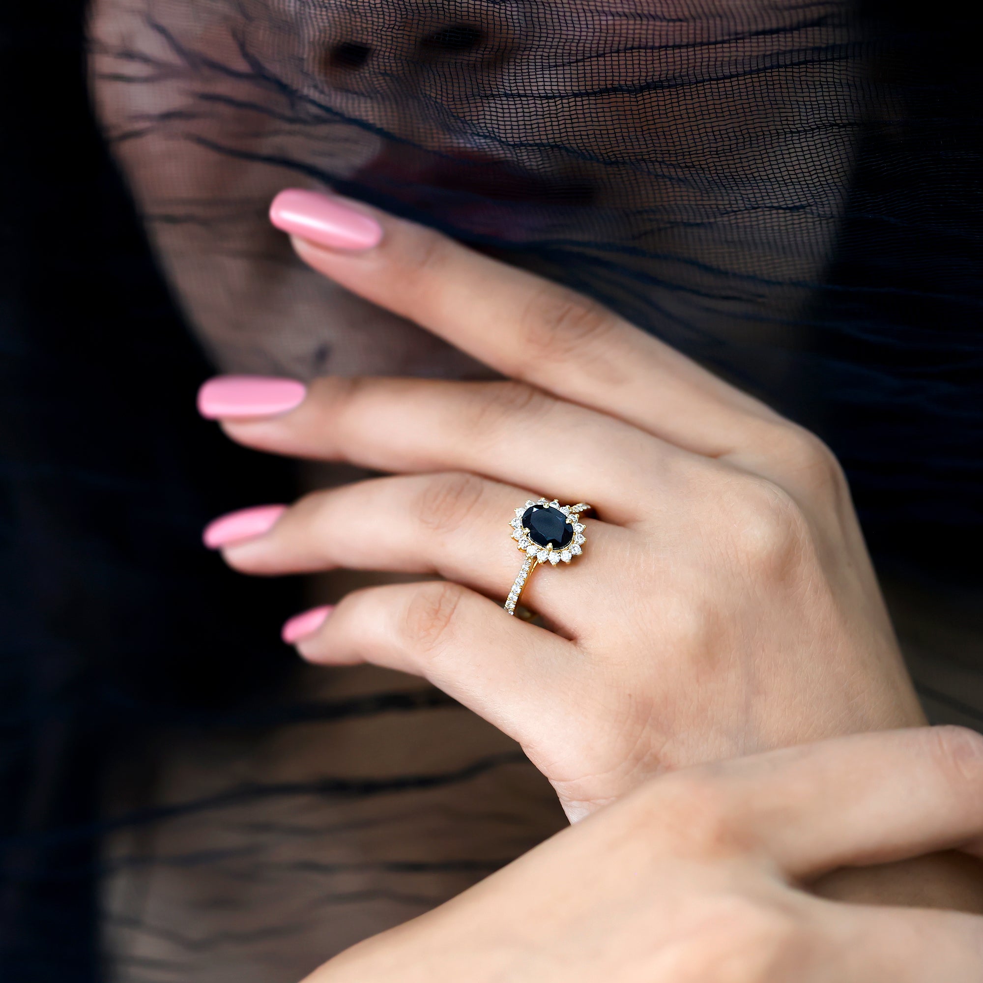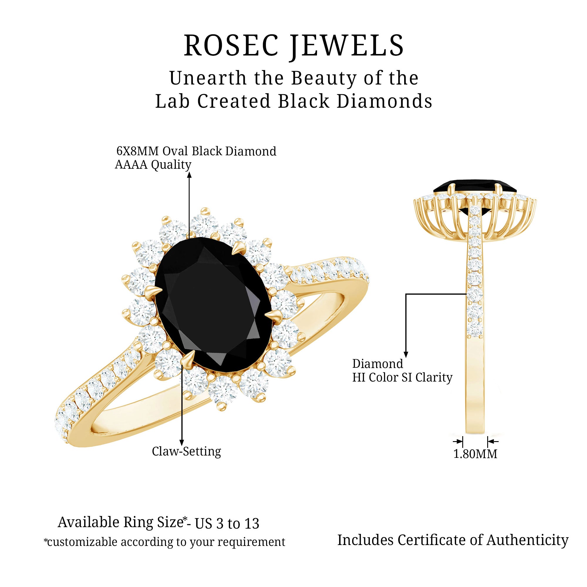 Lab Created Black Diamond Halo Engagement rings: Black diamond making the heart of the ring is surrounded by the accent of other shining gemstones, like moissanite or diamonds. The halo around the gemstone not only adds a sparkle, but offers it protection too.