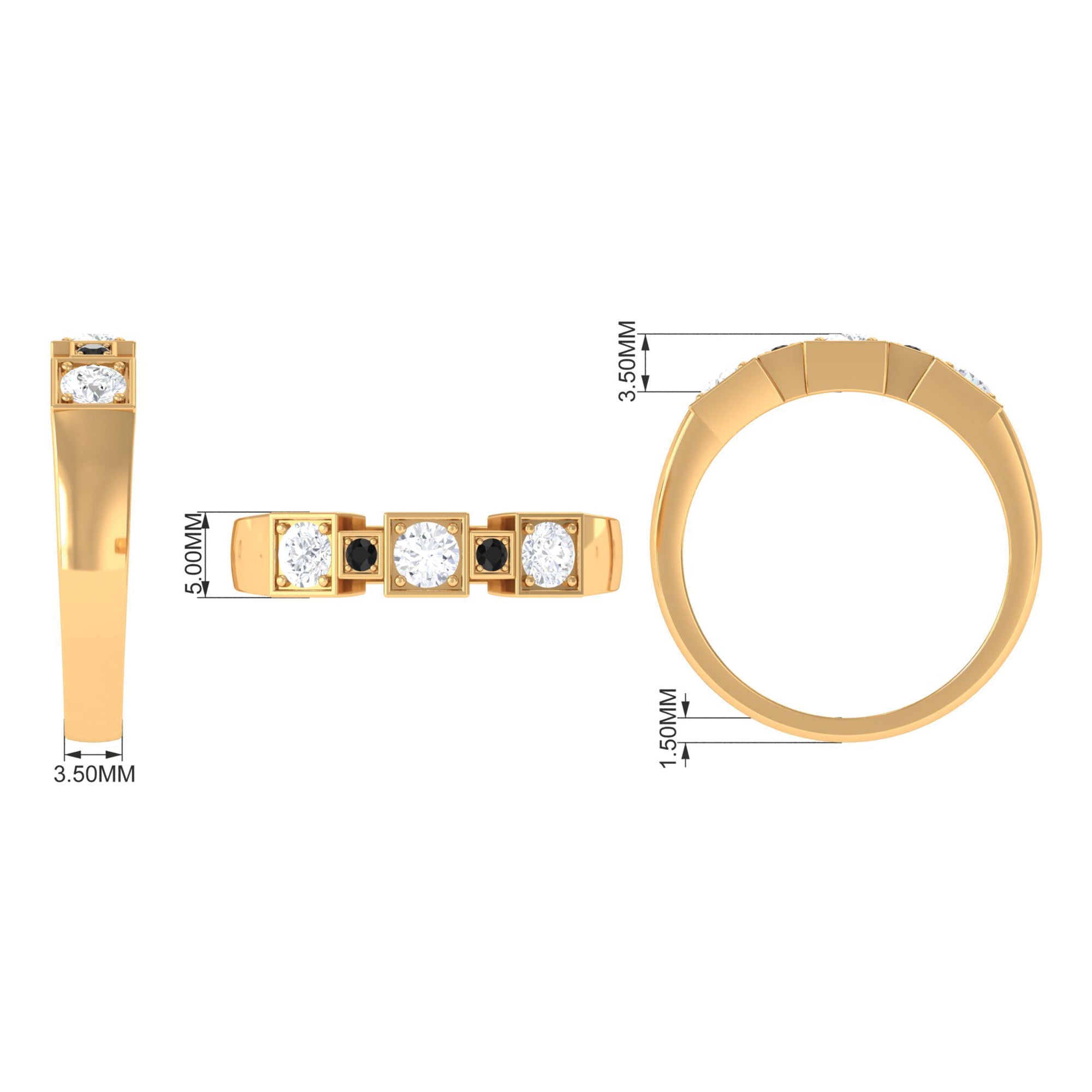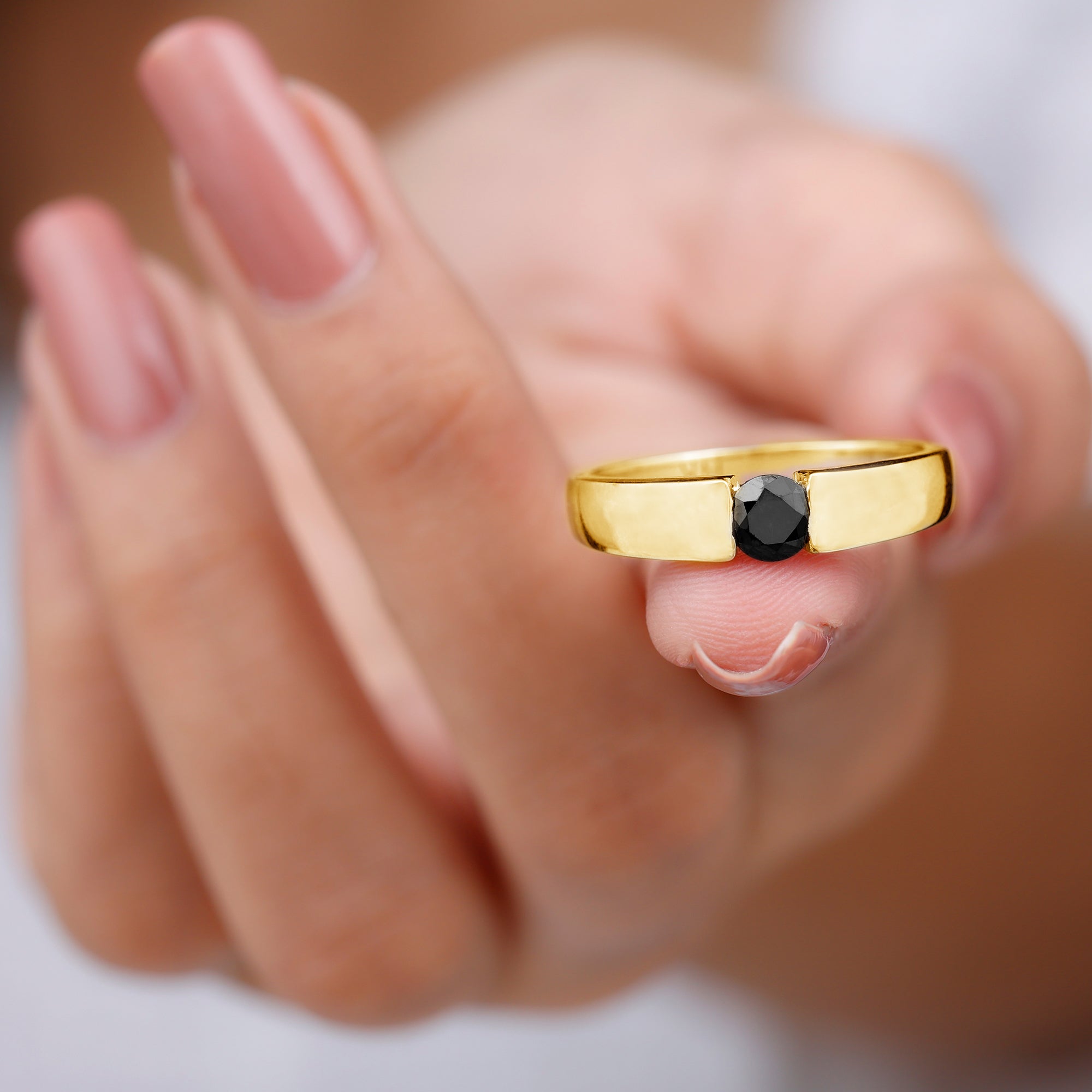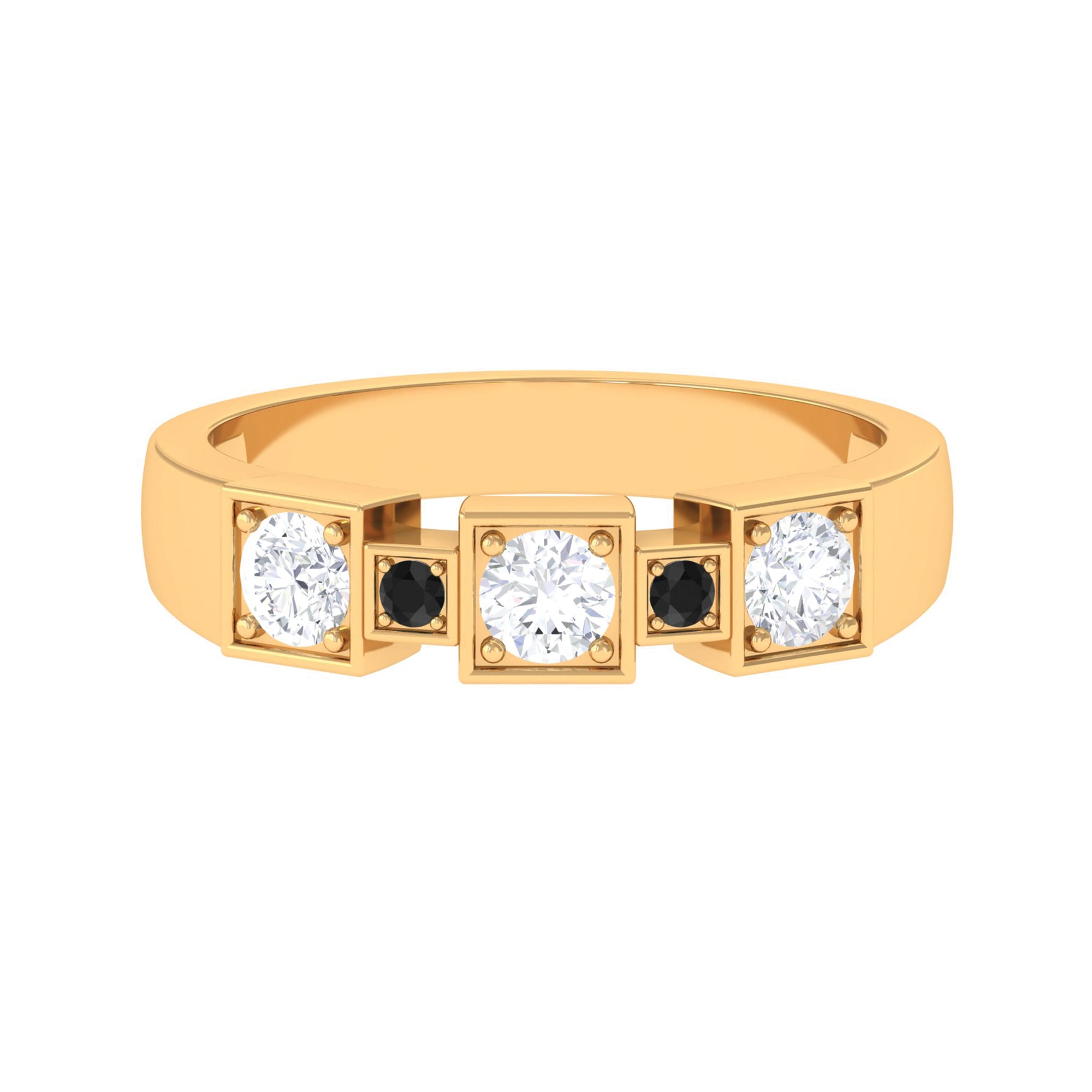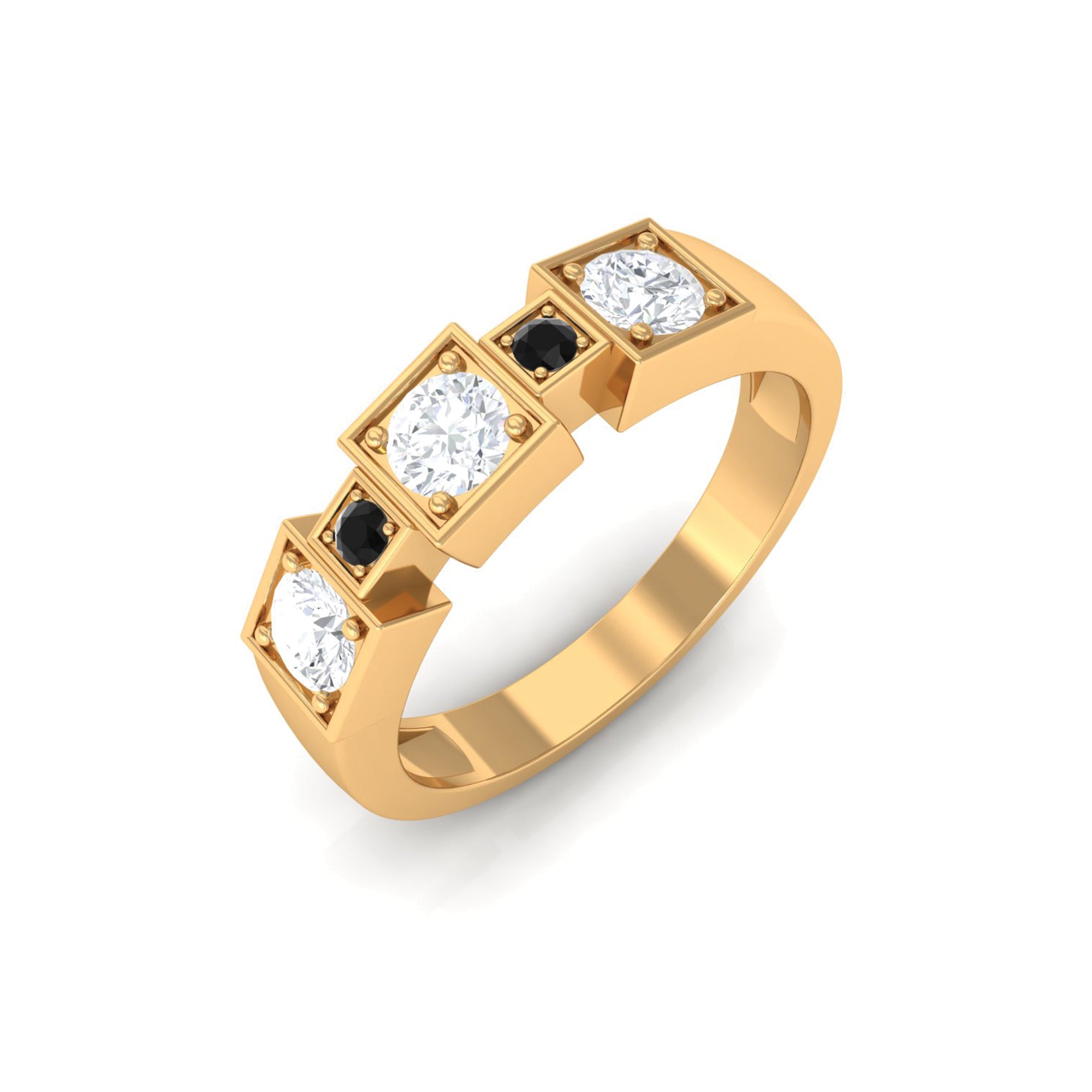 Our team of lapidarist is utmost careful with the quality factors like color, clarity, cut and carat to define our black diamond rings in all characteristics. Besides such factors, we combine different black diamond shapes, gemstone settings and metal embellishments in yellow gold, white gold and rose gold aimed towards diversifying our collection of intricate black diamond gold rings for men with a taste for ongoing trends in fashion.