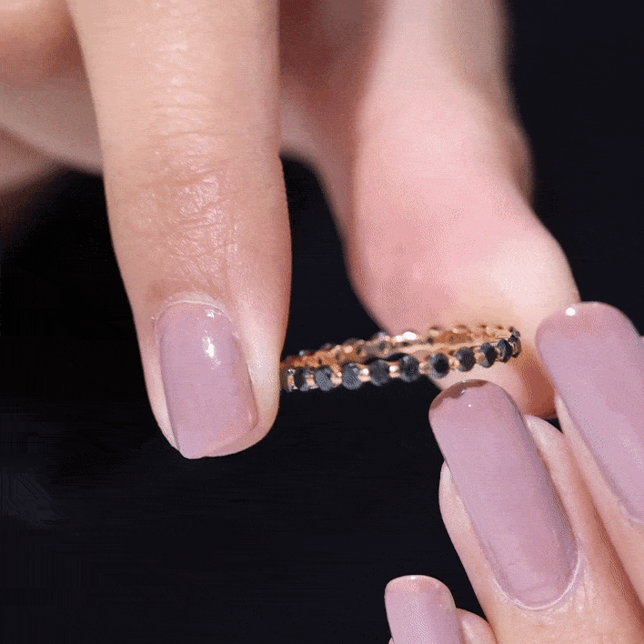 Just like the eternity, this ring style is also encrusted with an endless parade of Black Diamonds. It could be a classic curvature band that makes for a stunning Black Diamond Wedding Ring Set when worn together with its engagement ring. Or be on the fancier and flamboyant side with designer, vintage-inspired, and triple-row Black Diamond bands. It has soared to popularity as a choice of ring for exotic and unconventional brides as well as a go-to Wedding Ring for men.