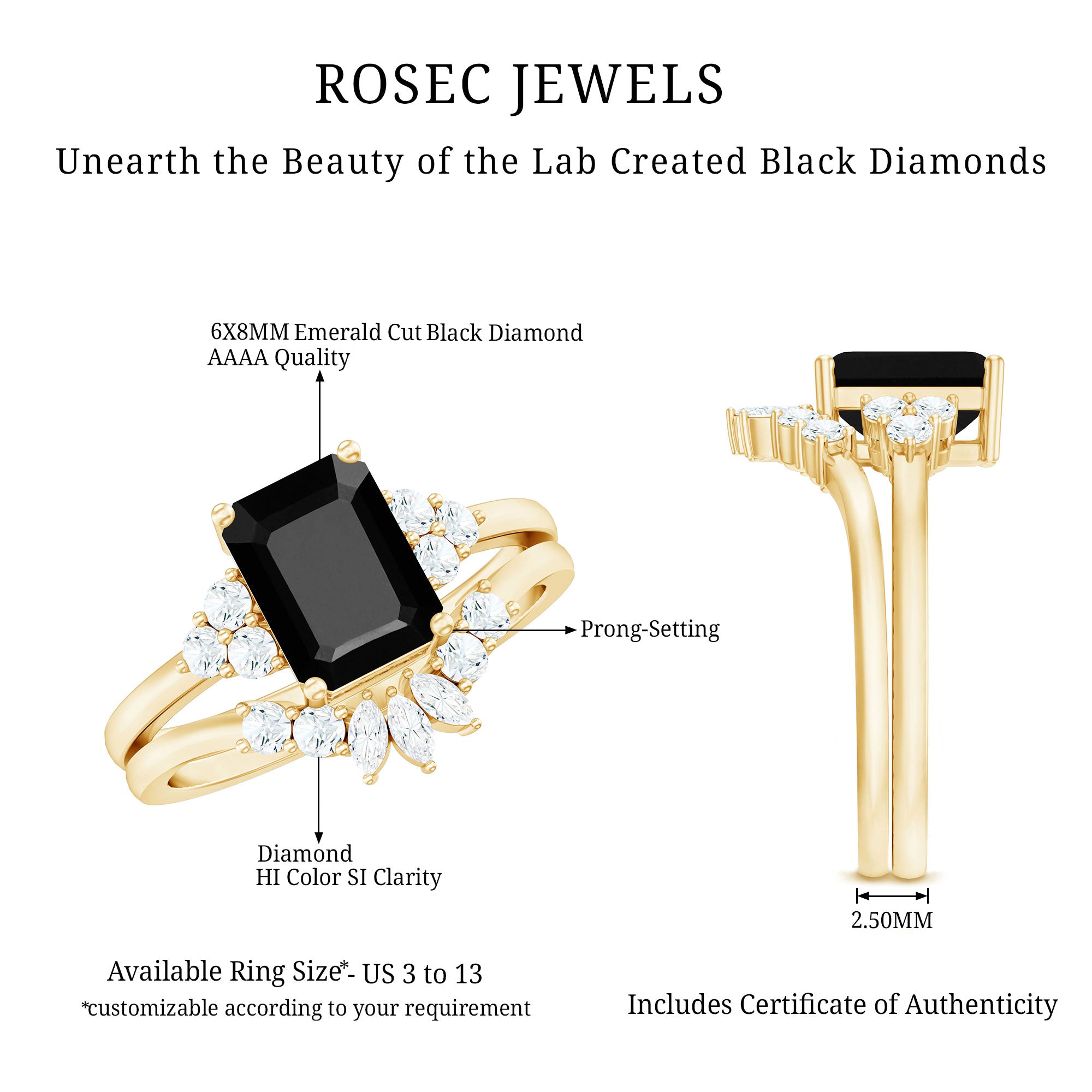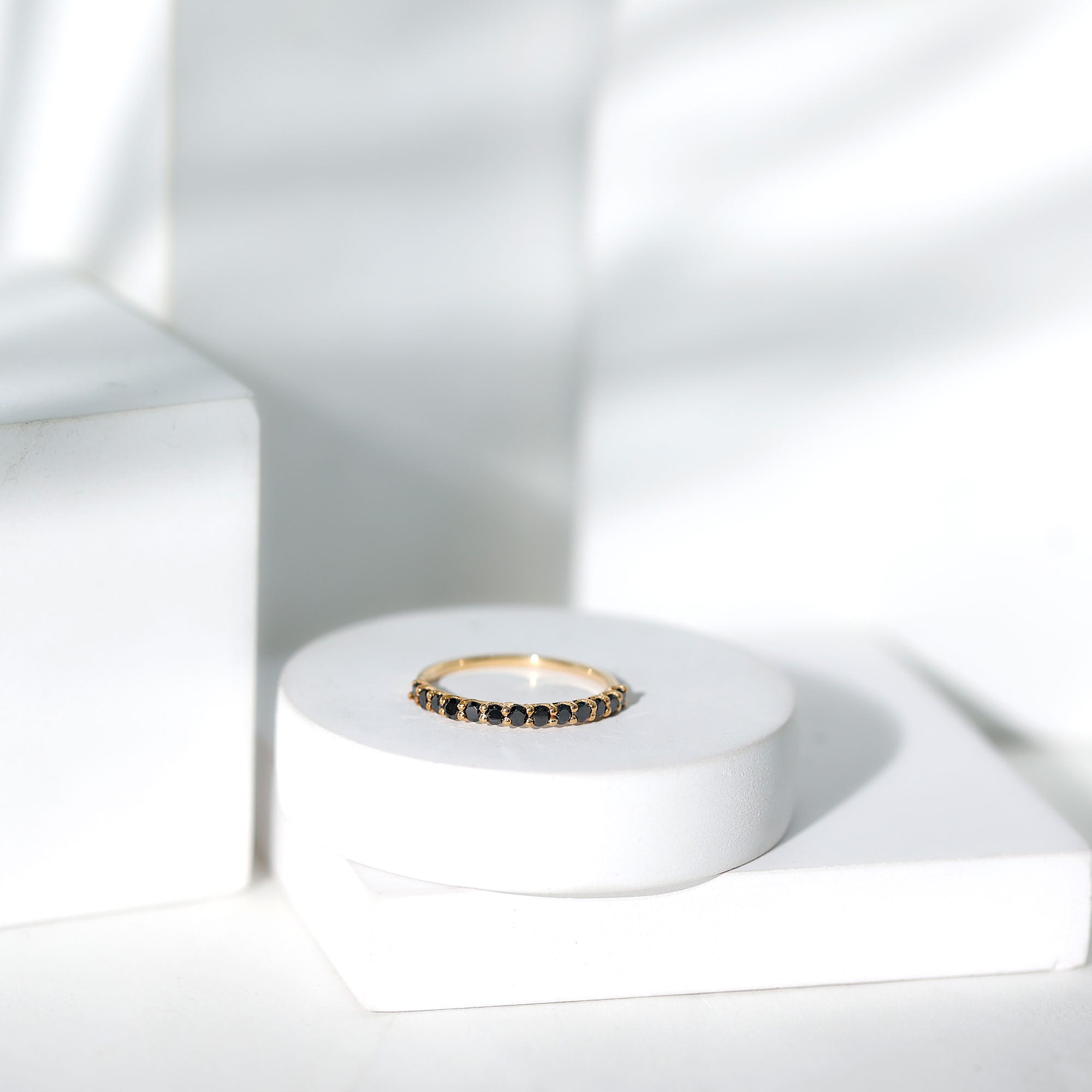 Black diamond wedding rings from Rosec Jewels are an exhilarating beauty for women who are in love with the signature black color diamonds. The exceptional fancy diamonds rings make them a popular choice of wedding rings for women. The black color is a growing popularity and has been the motivation behind crafting exotic wedding ring styles combined with different shades of gold and black diamond shapes. Our gemologists adhere to fine metal detailing while curating ring styles such as black diamond eternity bands, black diamond vintage bands and many more.