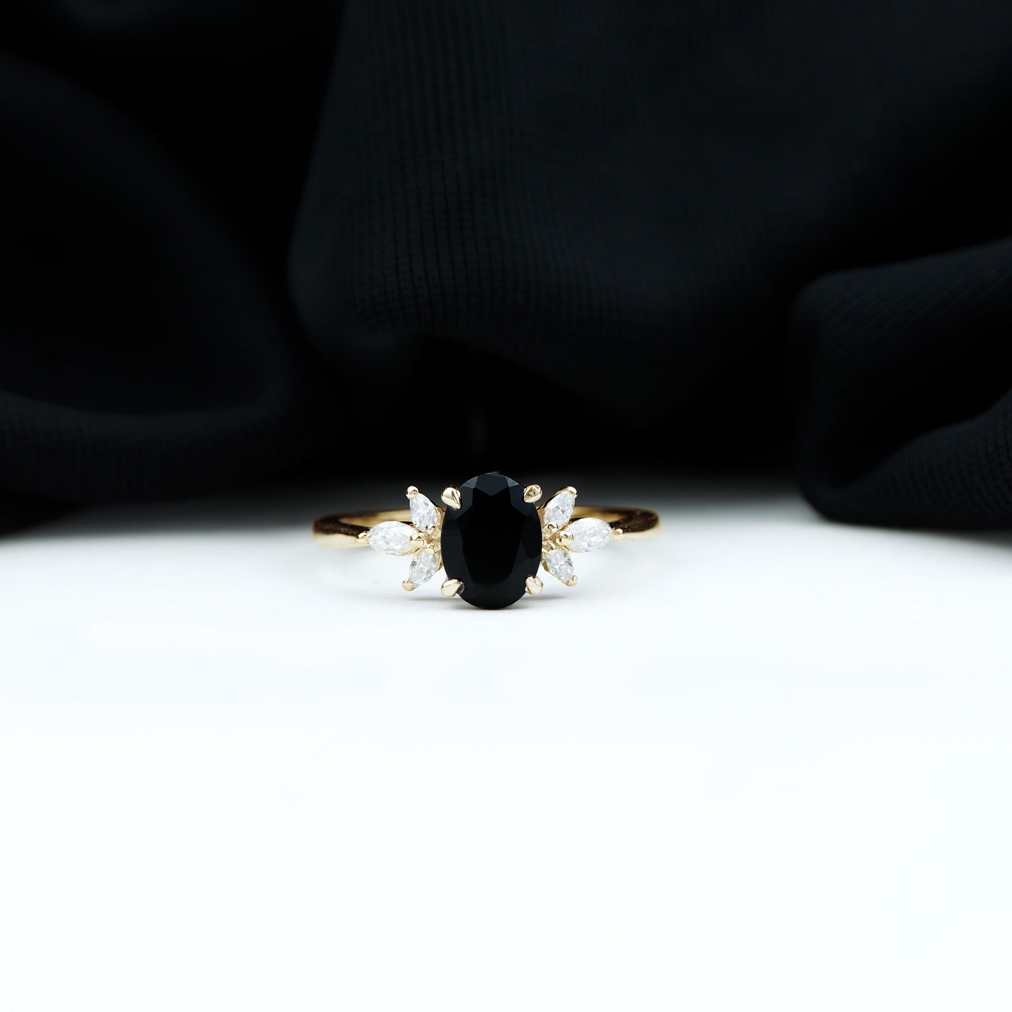 A Promise Ring highlights the Centerpiece of Black Onyx while staying understated. That’s because the size of Black Onyx here is a lot smaller (typically, around 4 mm or less). This ring style could incorporate elegant floral motifs, minimalist nature-inspired details, or accents of Diamond/Moissanite (without overdoing it). When presented, these Black Stone Rings insinuate a promise of togetherness and an intent to take the relationship to the next level.