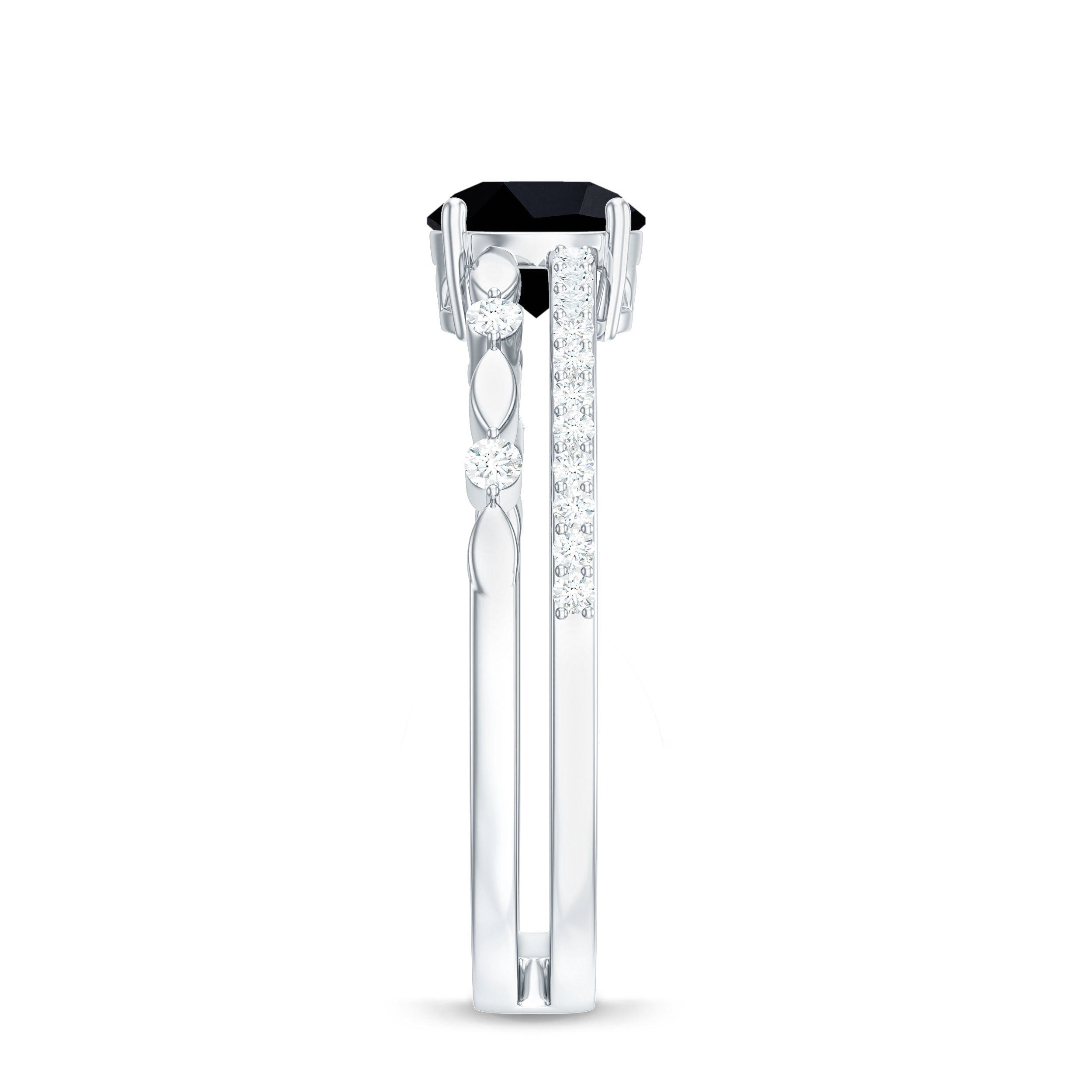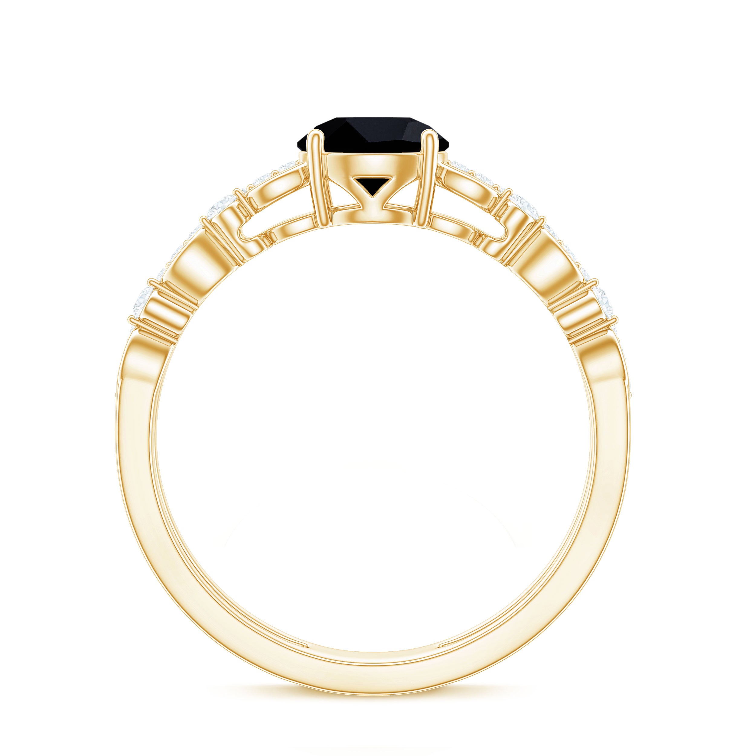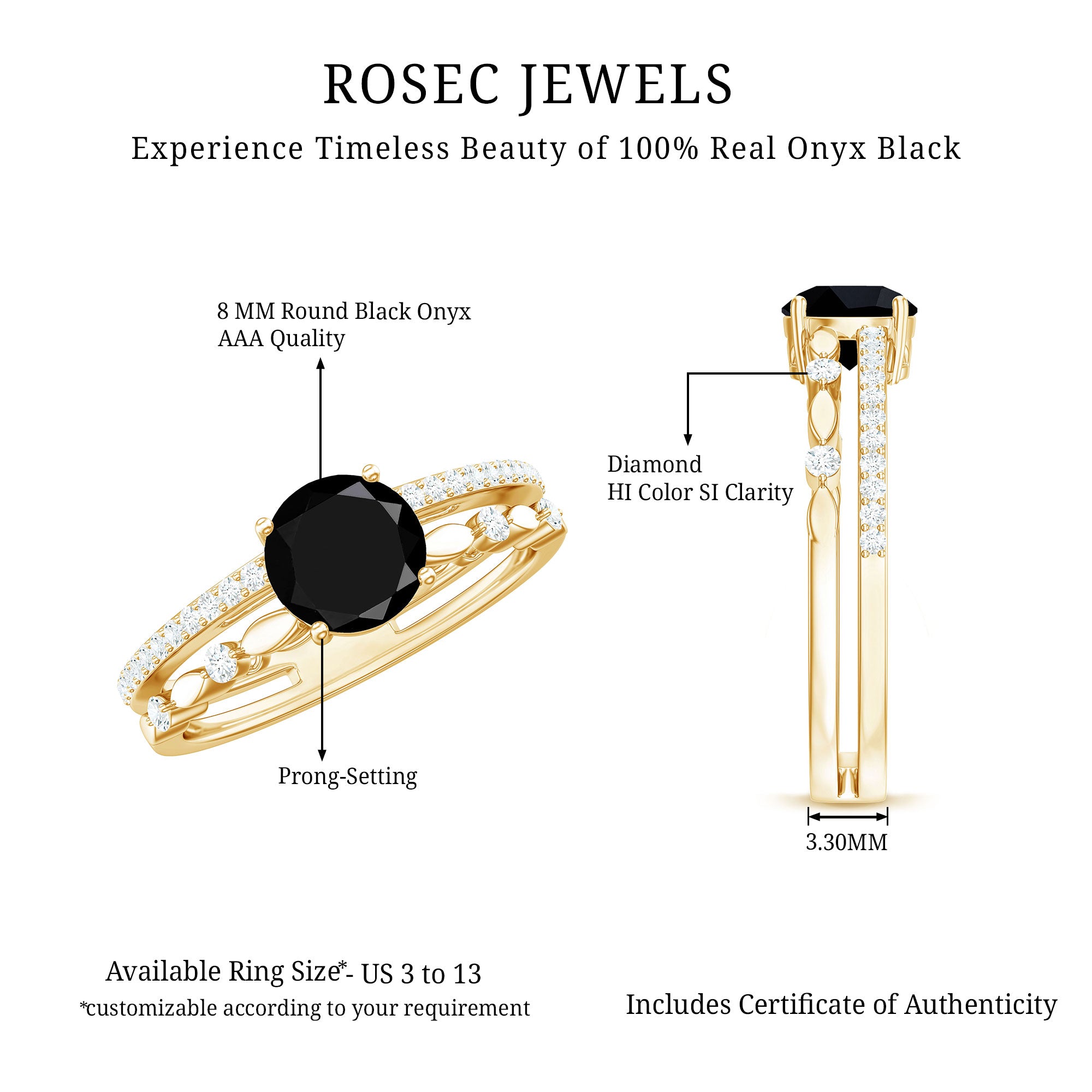 In a Solitaire Style, the Single-Stone of Black Onyx works like the center of all attraction. The enormous size of Black Onyx here, i.e., 6-8 MM, makes all the difference. This style could easily be awarded the most popular and classic Black Onyx Engagement Ring. Right from the conventional round to fancy pear and marquise and vintage Asscher and Emerald, this ring style offers you a world of options.