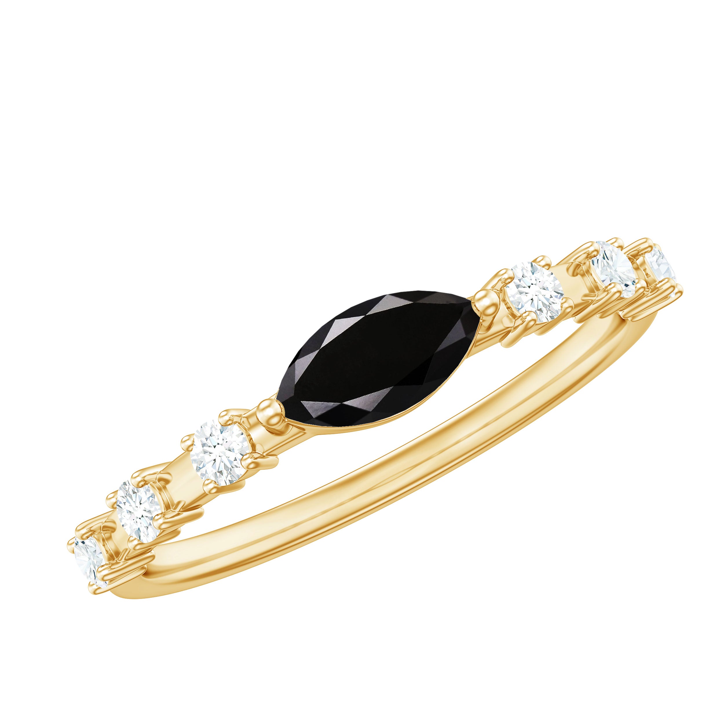 A Promise Ring highlights the Centerpiece of Black Onyx while staying understated. That’s because the size of Black Onyx here is a lot smaller (typically, around 4 mm or less). This ring style could incorporate elegant floral motifs, minimalist nature-inspired details, or accents of Diamond/Moissanite (without overdoing it). When presented, these Black Stone Rings insinuate a promise of togetherness and an intent to take the relationship to the next level.