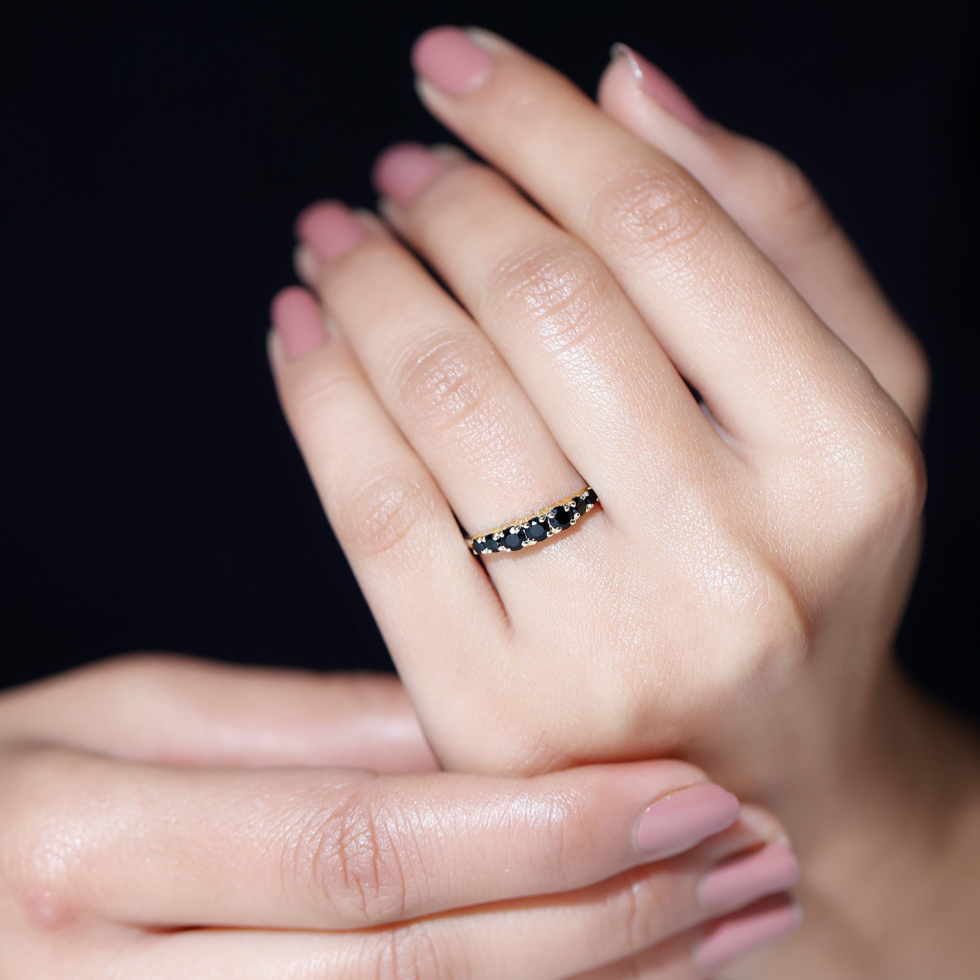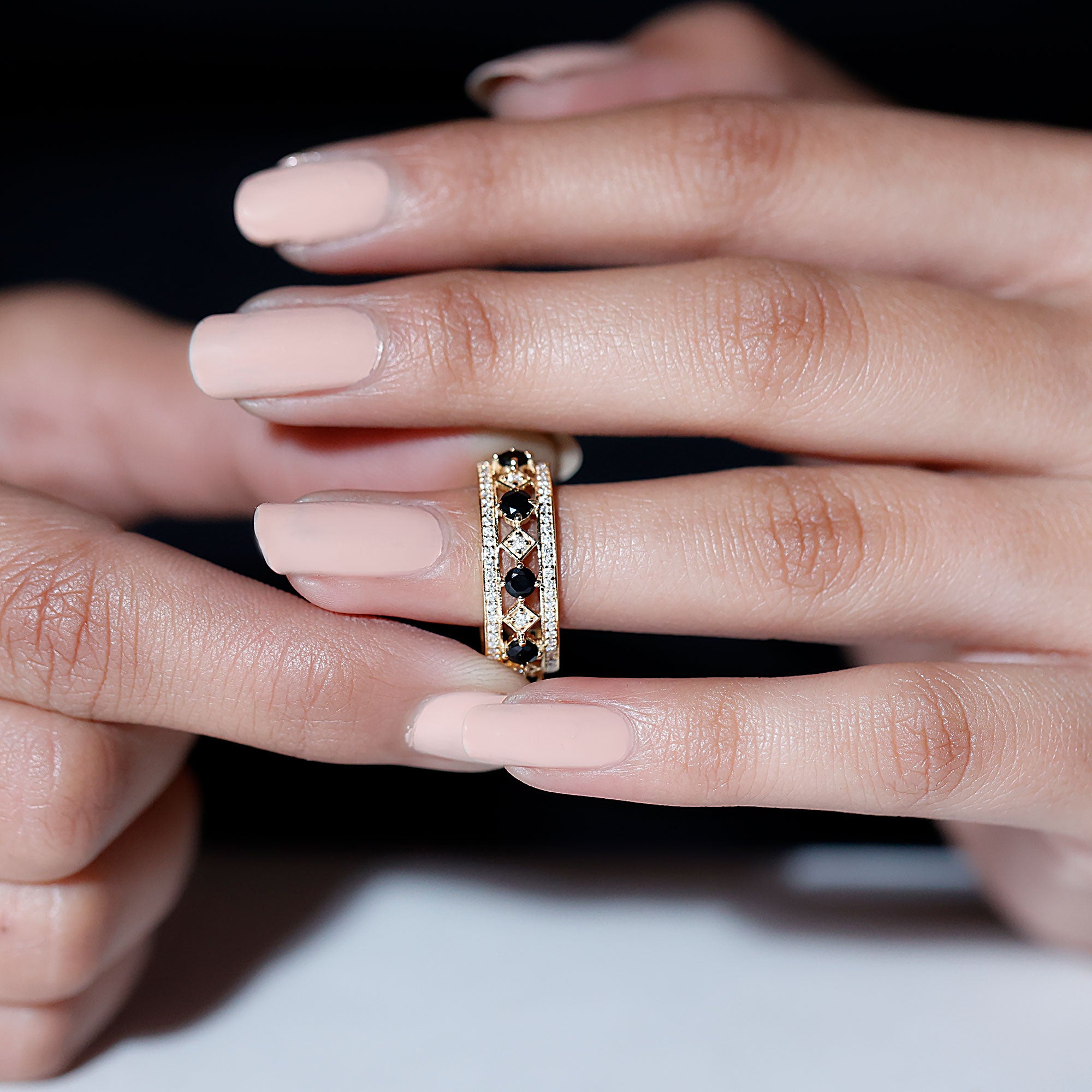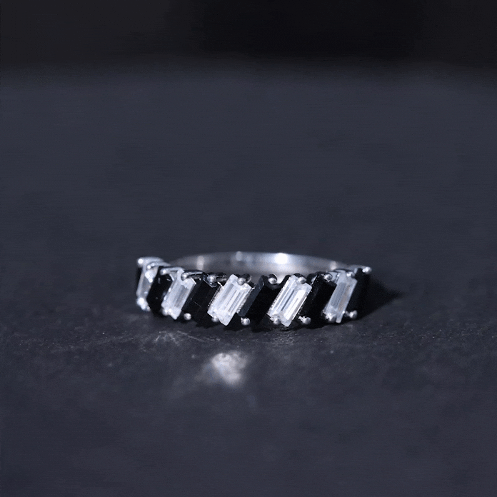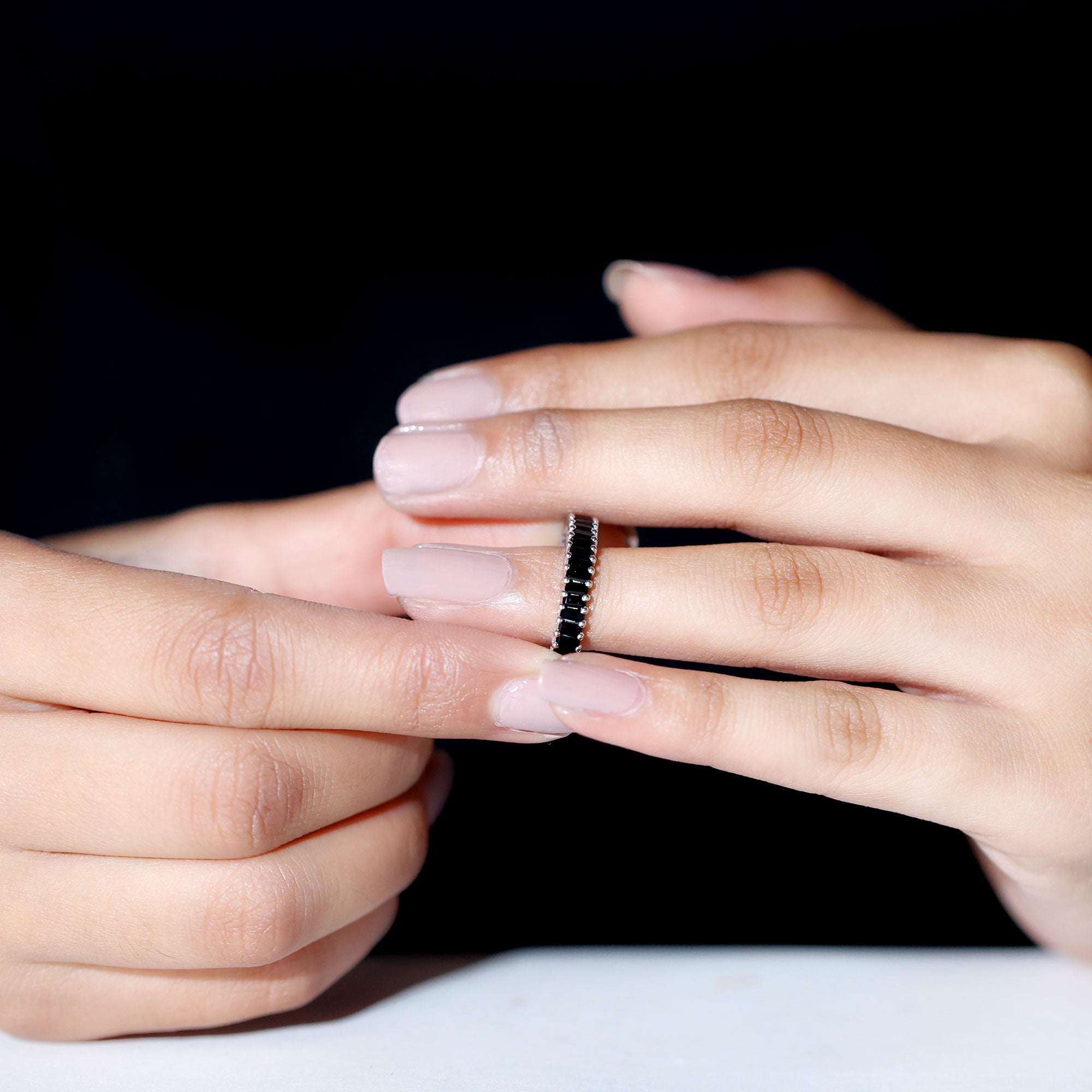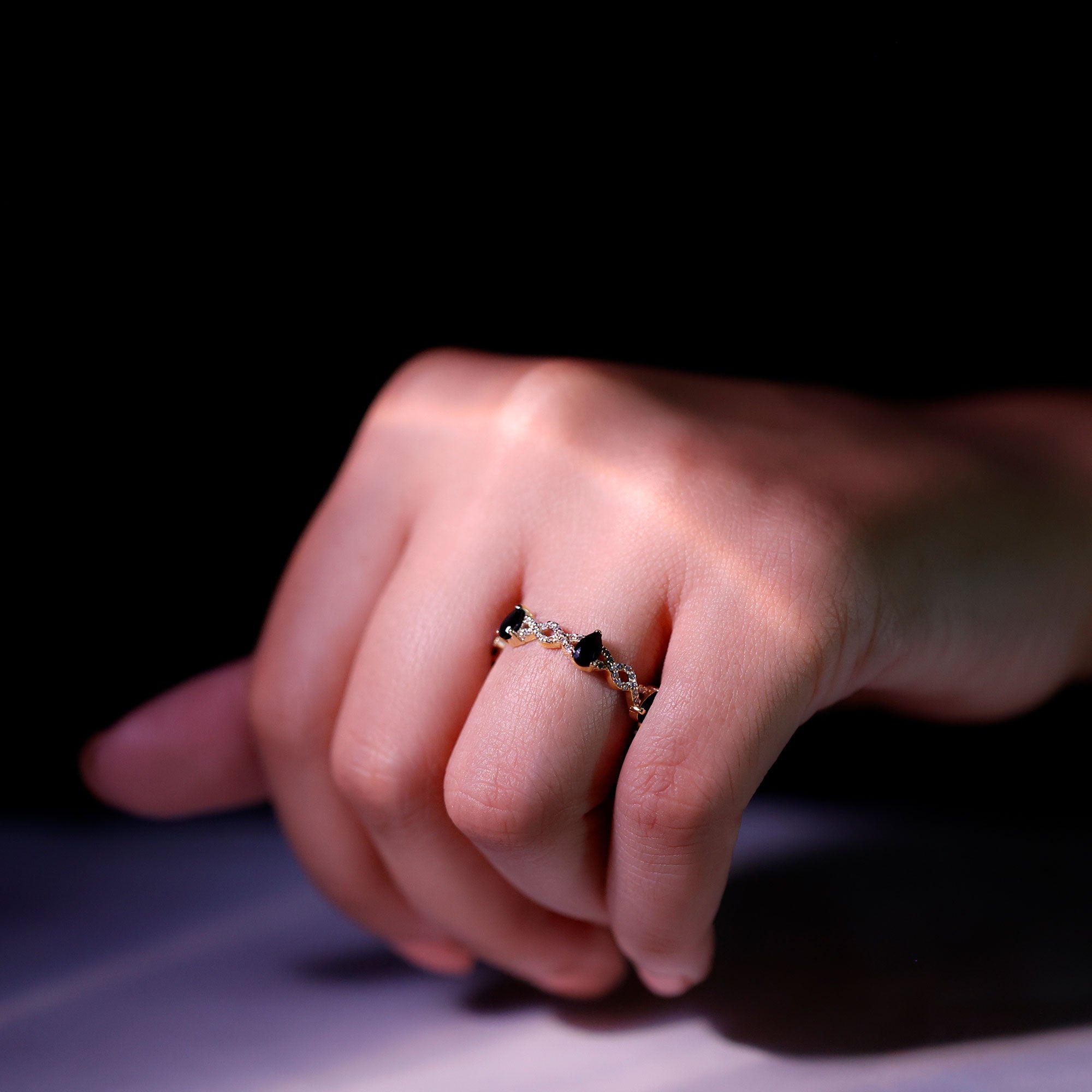 A Modern Classic, this Eternity Ring is paraded by a row of Black Onyx that are typically uniform in size. You’ll find no better style to flaunt your Black Onyx. But don’t take it to mean that it is all aesthetics. This style has been crafted in a way that carries an equally beautiful meaning behind it. The eternity pattern of stones commemorates the kind of love that lasts till the end of time (eternally). That’s why it also makes for an iconic Black Onyx Wedding Ring.