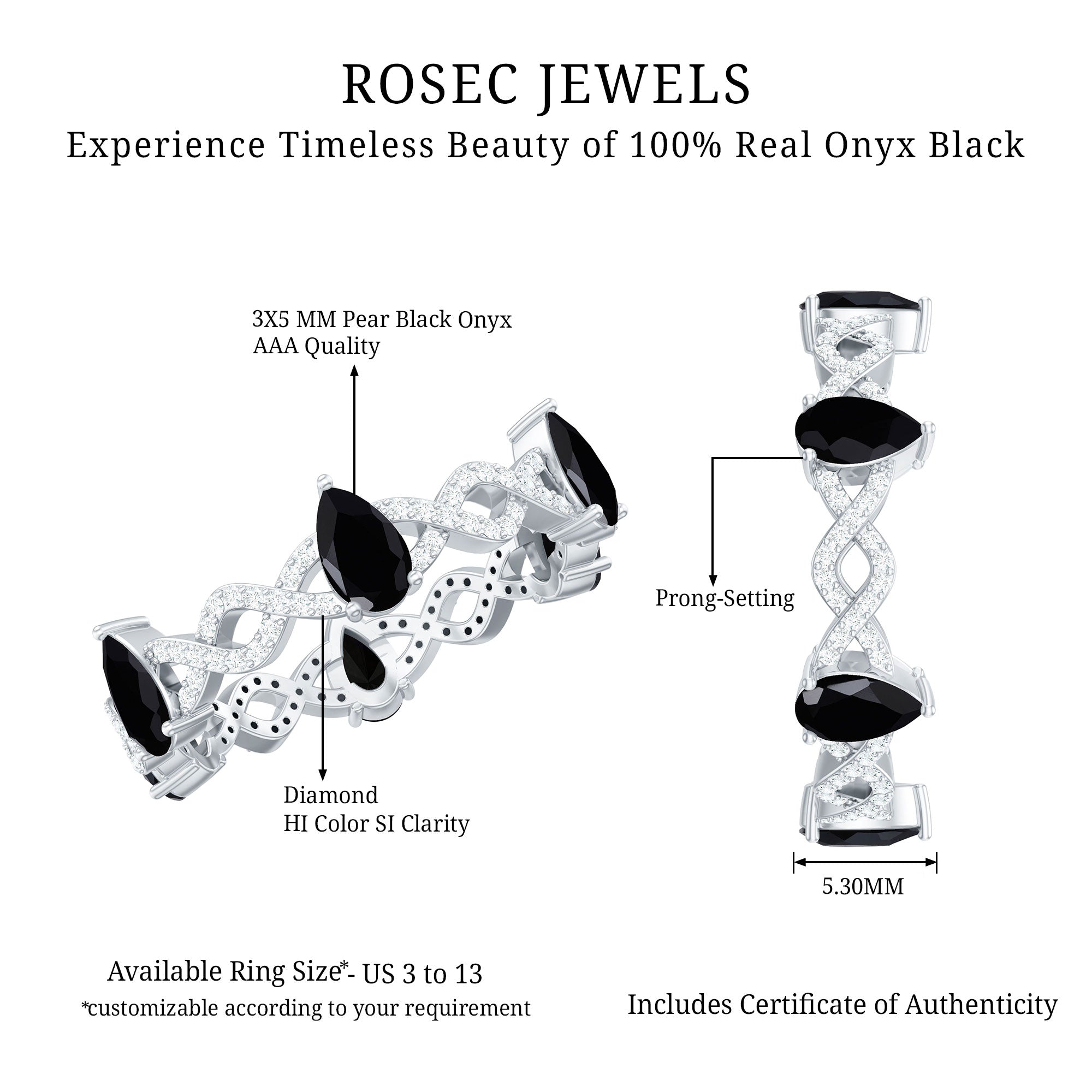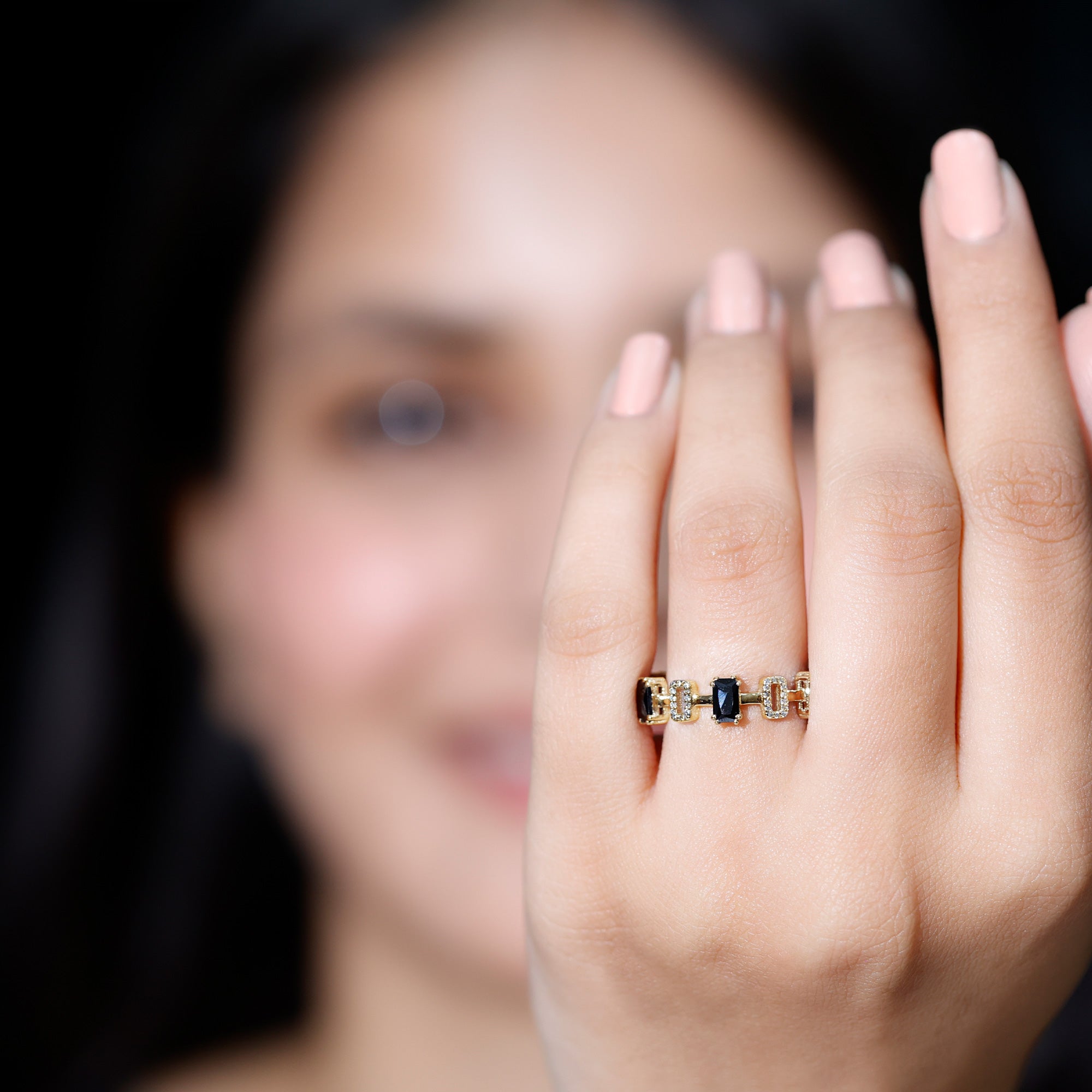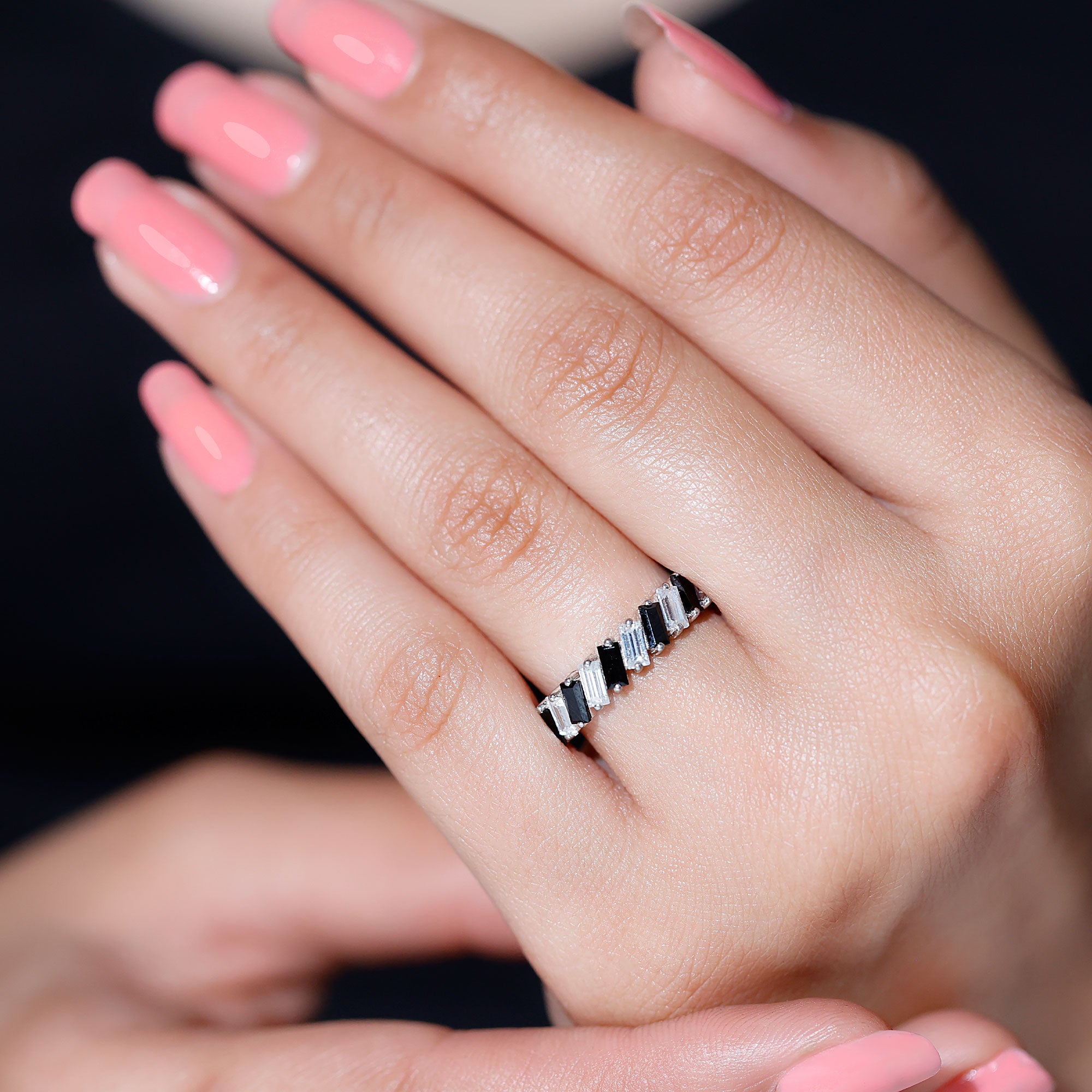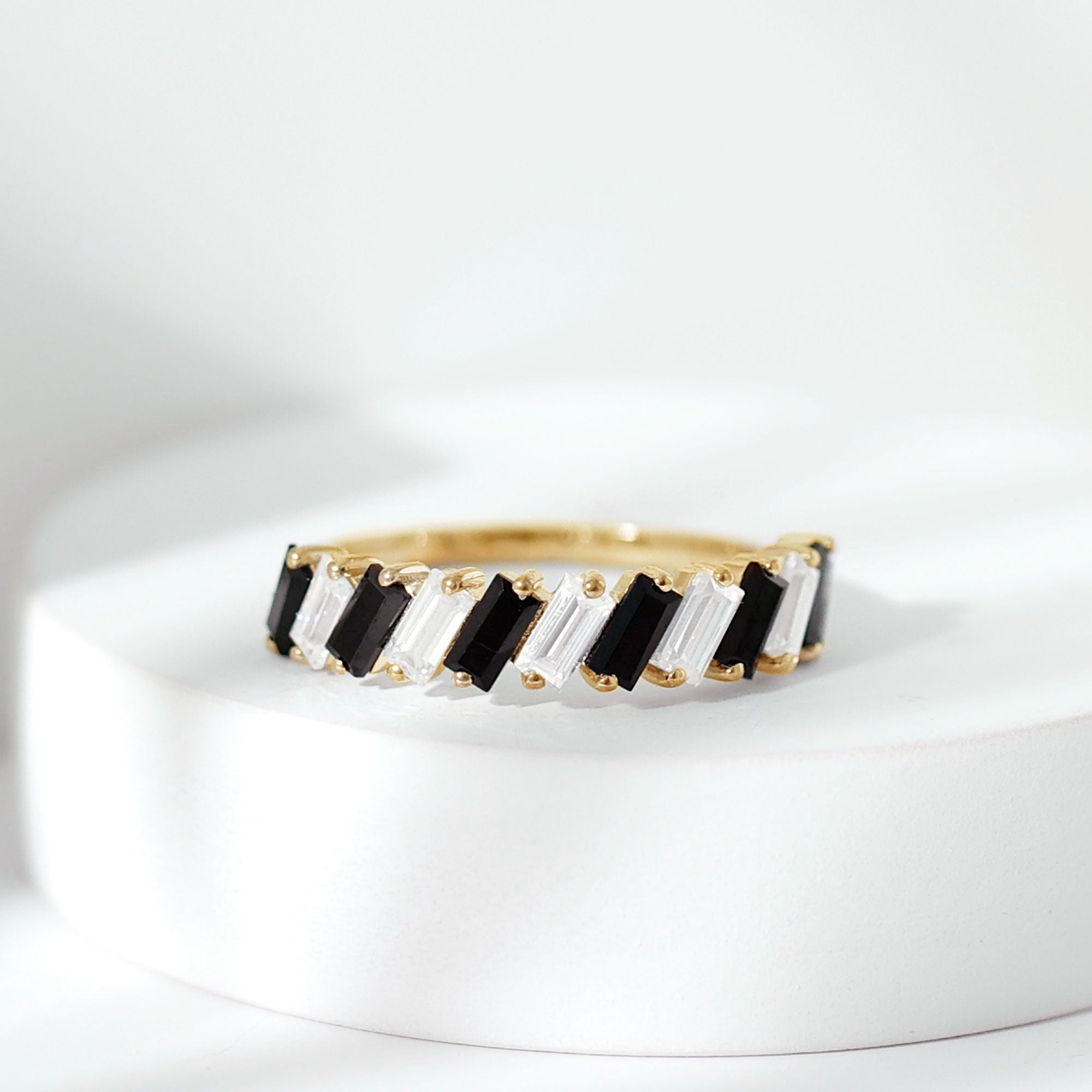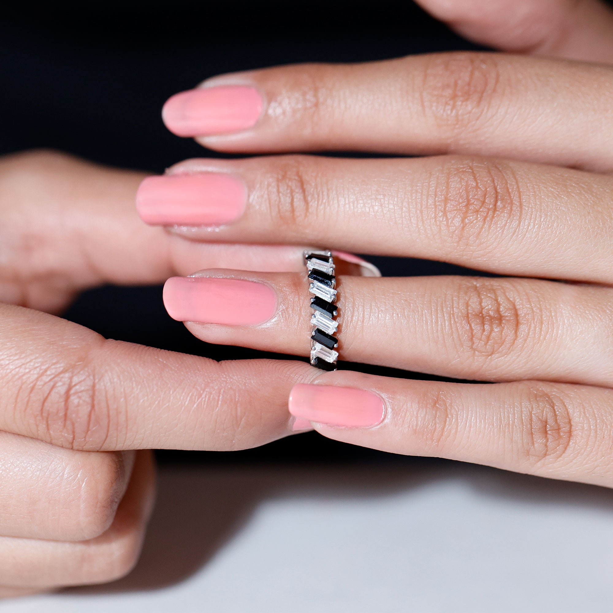 A Modern Classic, this Eternity Ring is paraded by a row of Black Onyx that are typically uniform in size. You’ll find no better style to flaunt your Black Onyx. But don’t take it to mean that it is all aesthetics. This style has been crafted in a way that carries an equally beautiful meaning behind it. The eternity pattern of stones commemorates the kind of love that lasts till the end of time (eternally). That’s why it also makes for an iconic Black Onyx Wedding Ring.