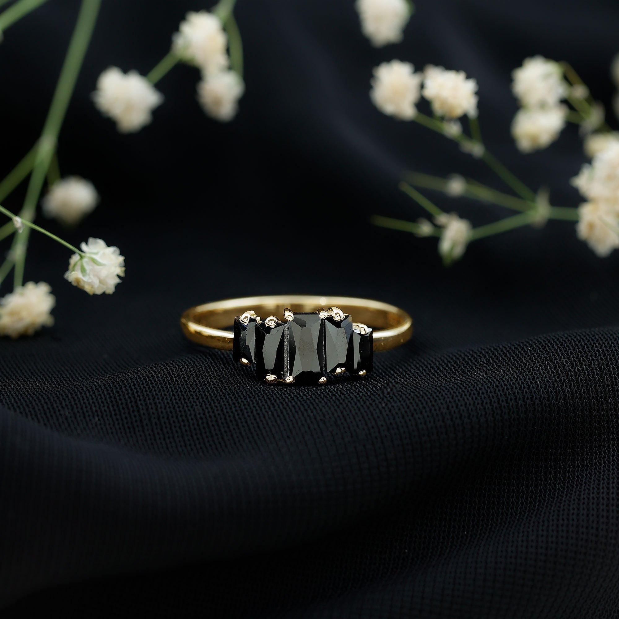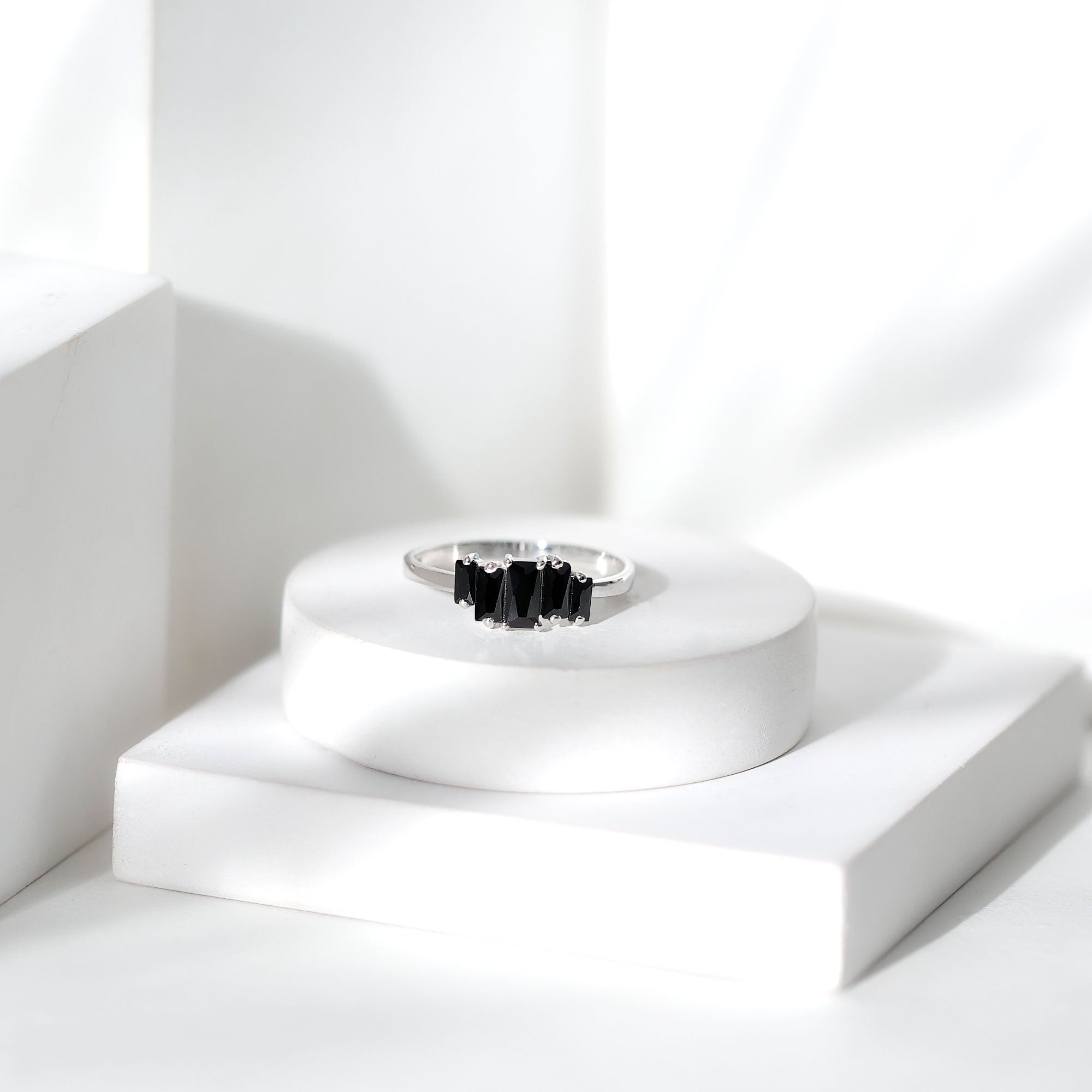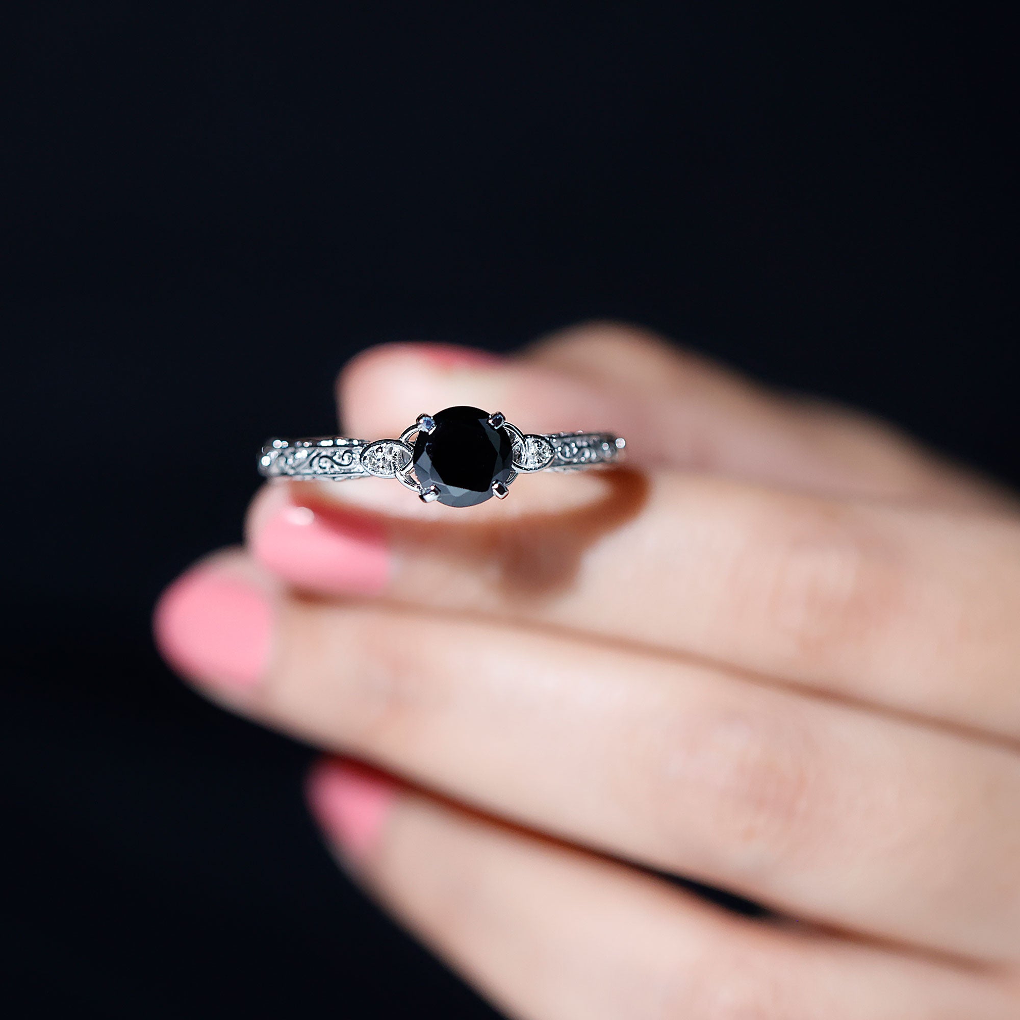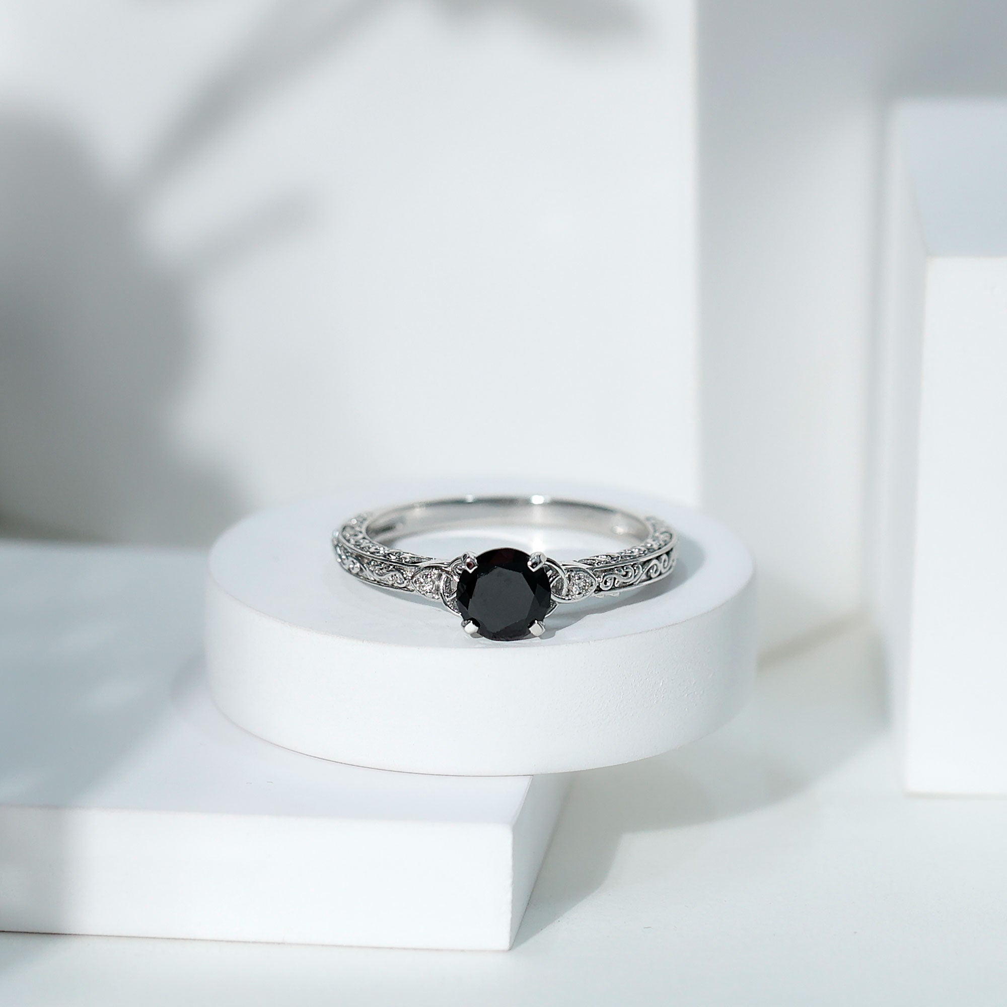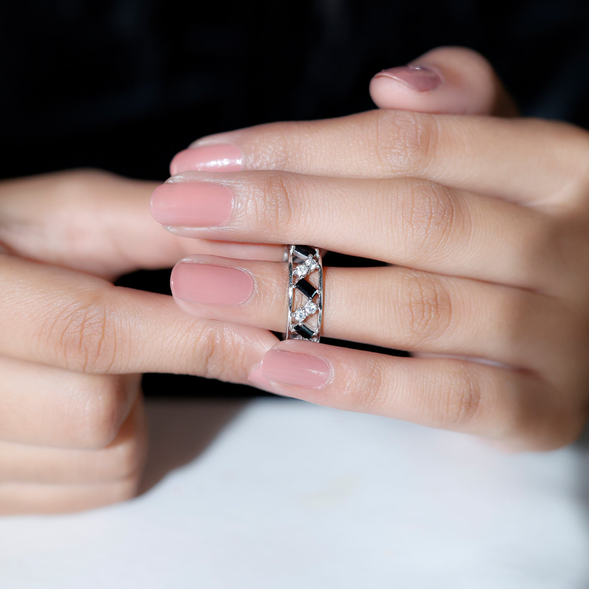 A Promise Ring highlights the Centerpiece of Black Onyx while staying understated. That’s because the size of Black Onyx here is a lot smaller (typically, around 4 mm or less). This ring style could incorporate elegant floral motifs, minimalist nature-inspired details, or accents of Diamond/Moissanite (without overdoing it). When presented, these Black Stone Rings insinuate a promise of togetherness and an intent to take the relationship to the next level.