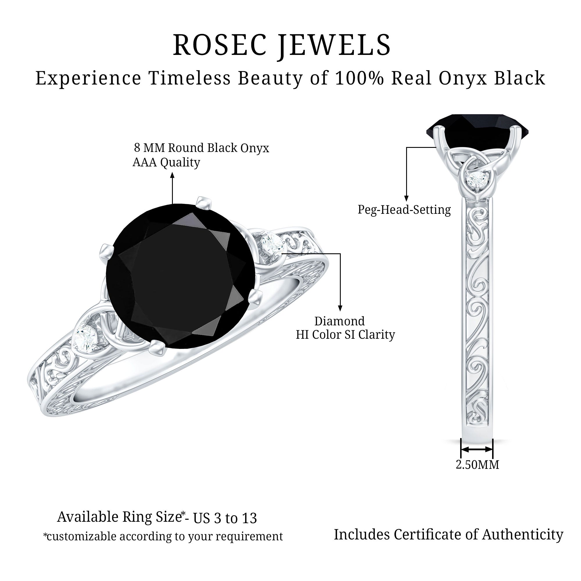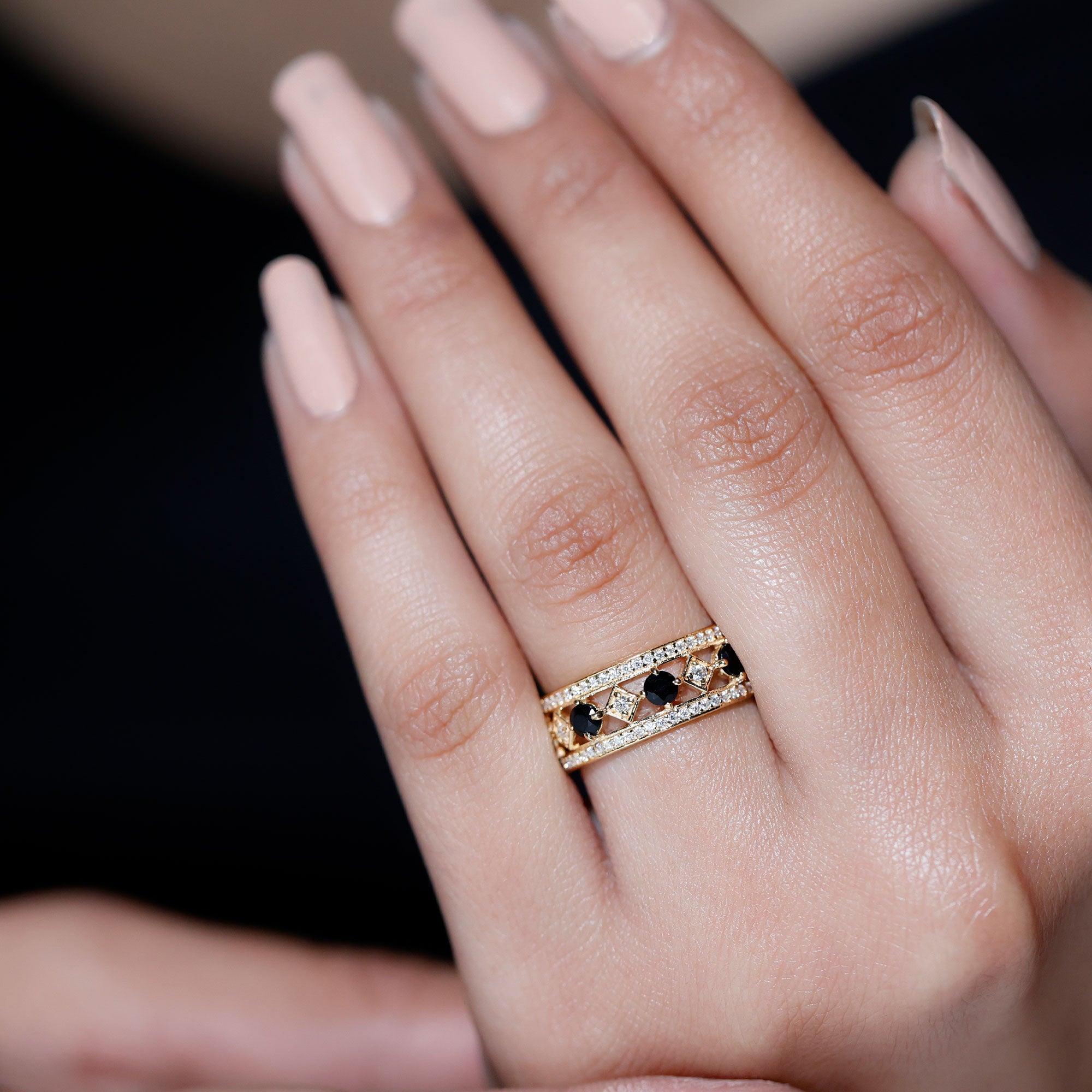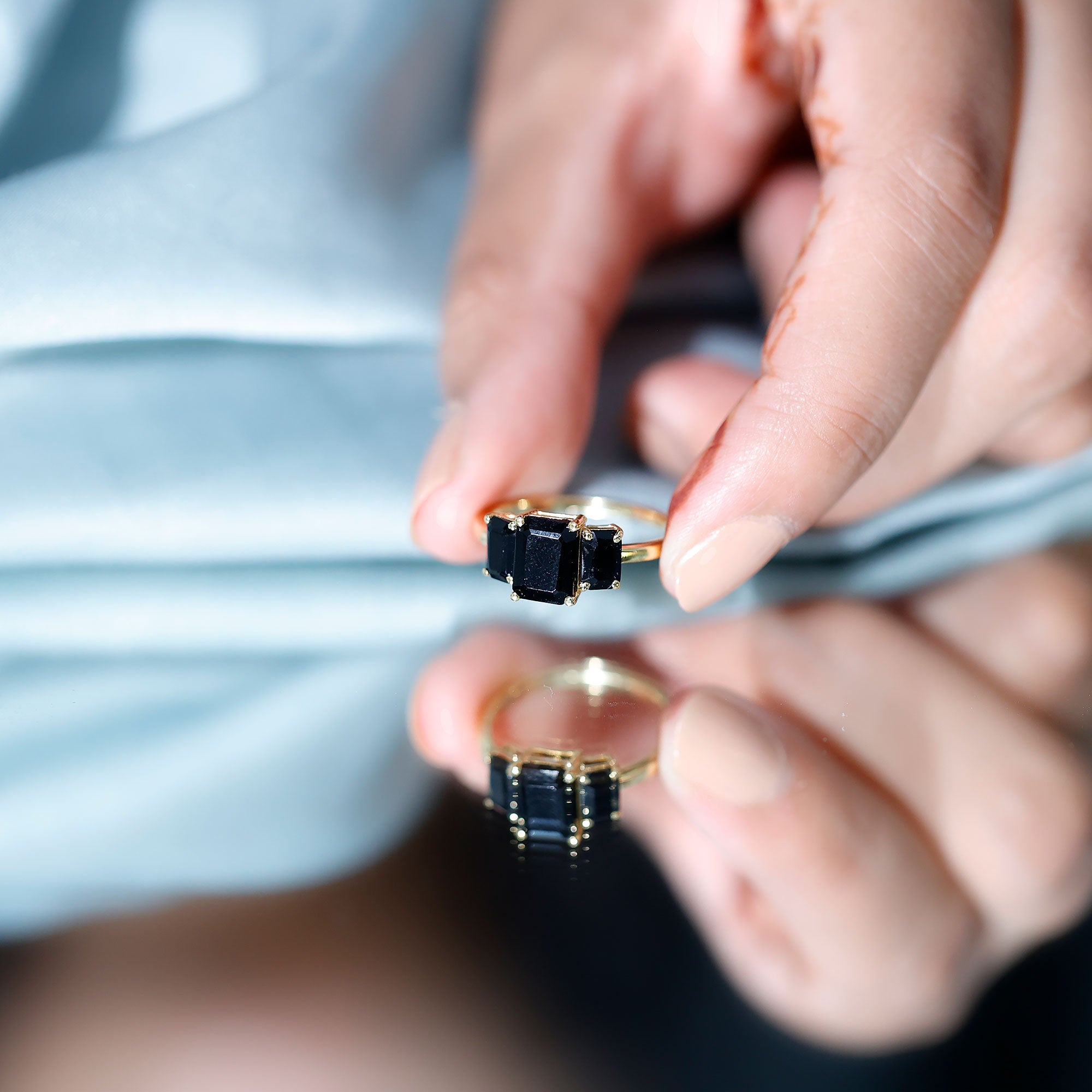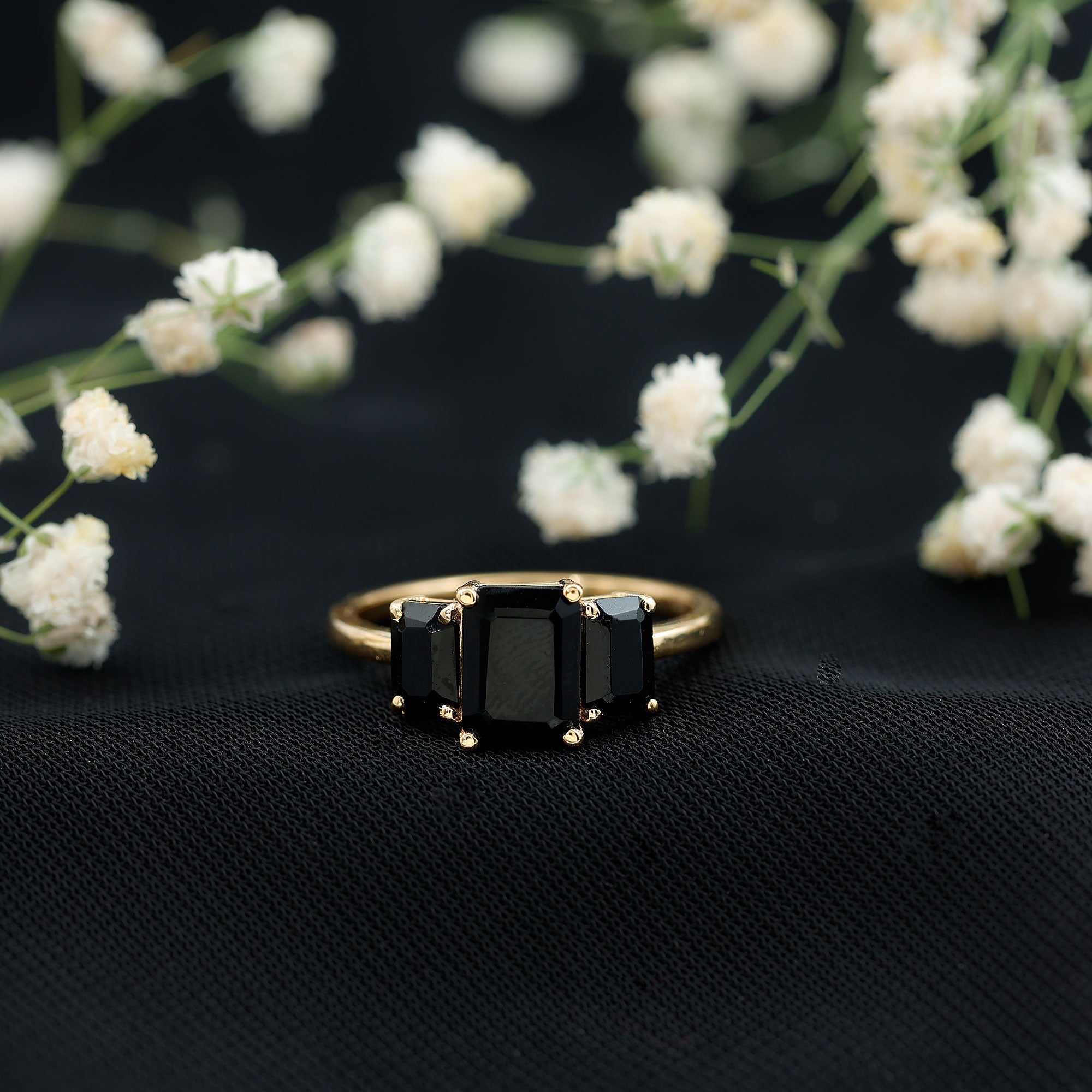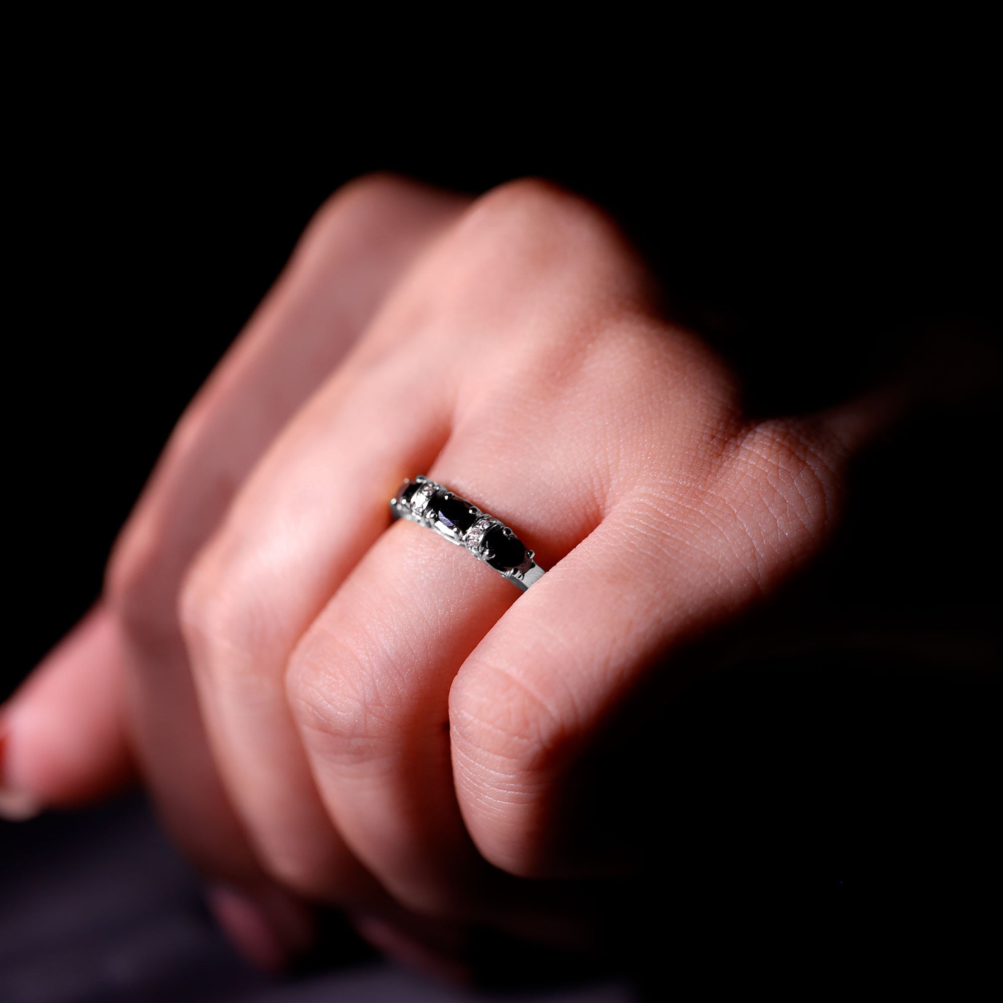 A Promise Ring highlights the Centerpiece of Black Onyx while staying understated. That’s because the size of Black Onyx here is a lot smaller (typically, around 4 mm or less). This ring style could incorporate elegant floral motifs, minimalist nature-inspired details, or accents of Diamond/Moissanite (without overdoing it). When presented, these Black Stone Rings insinuate a promise of togetherness and an intent to take the relationship to the next level.