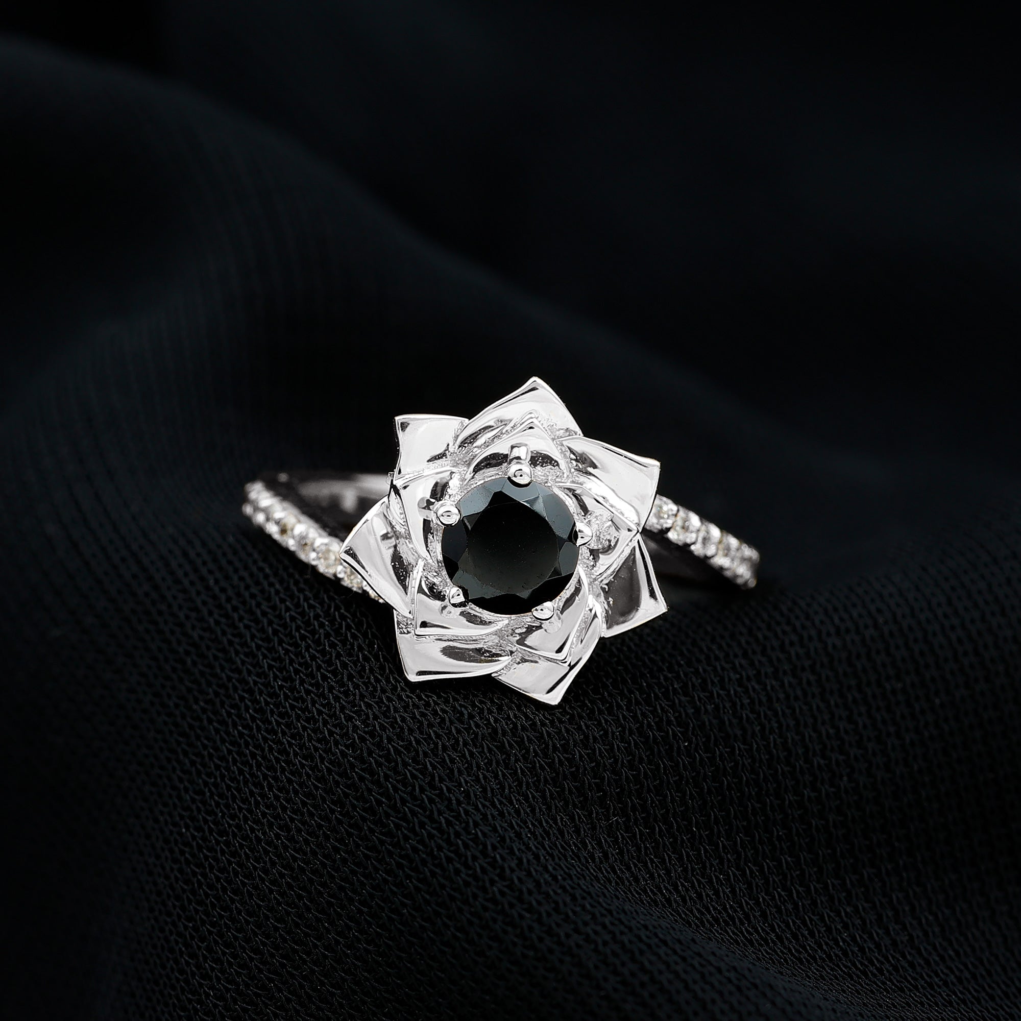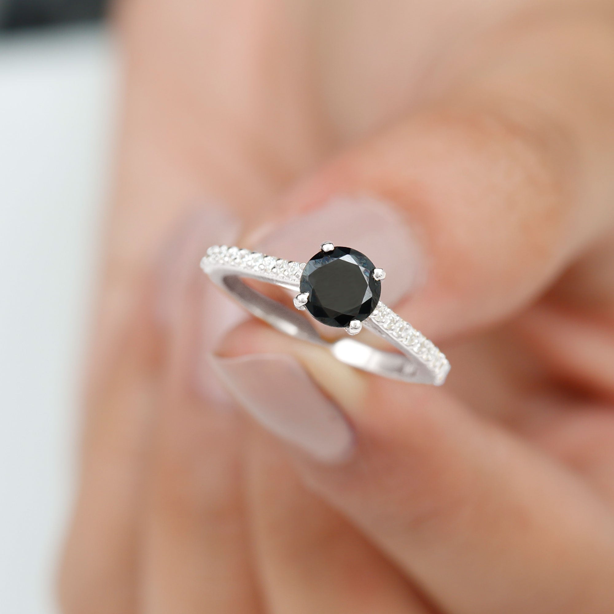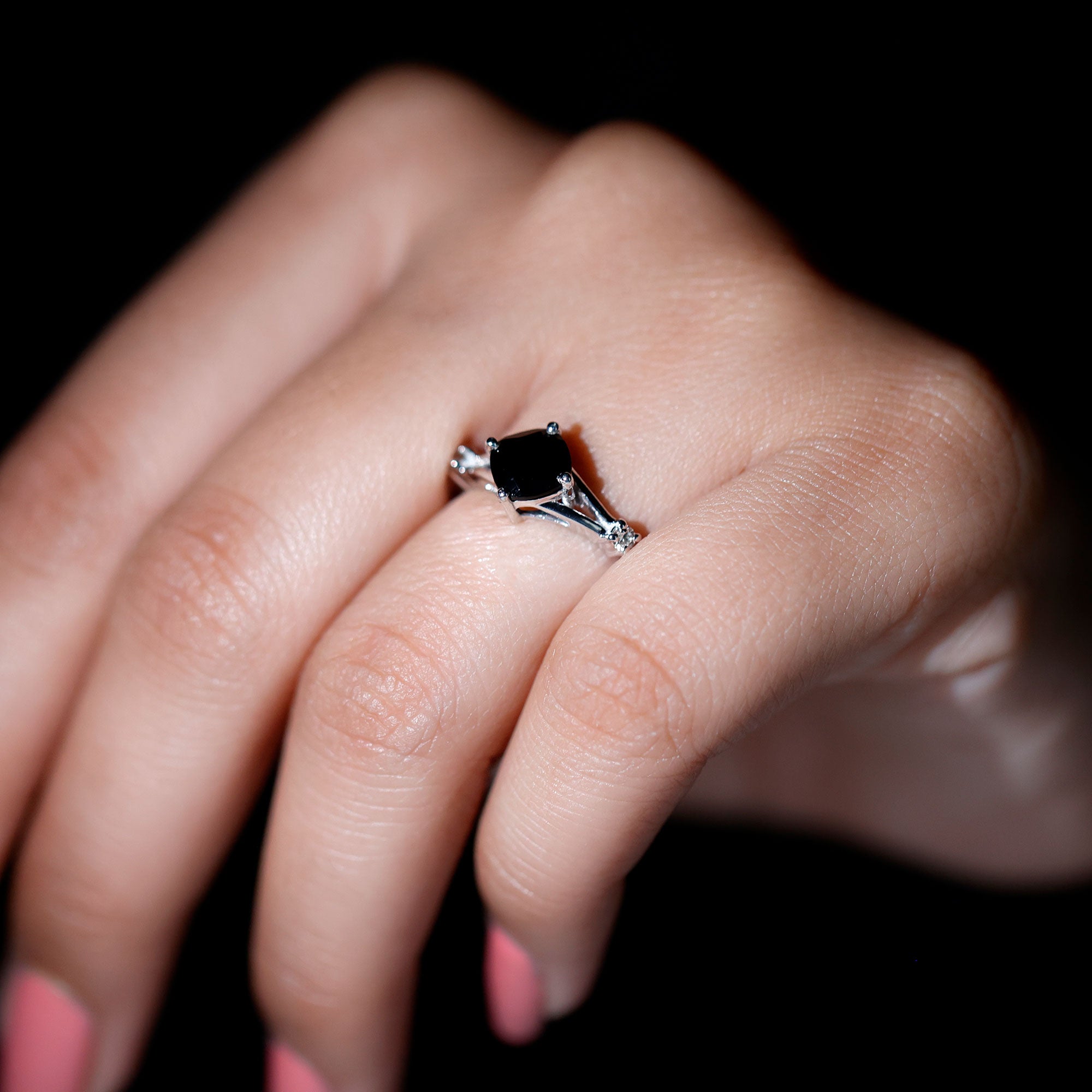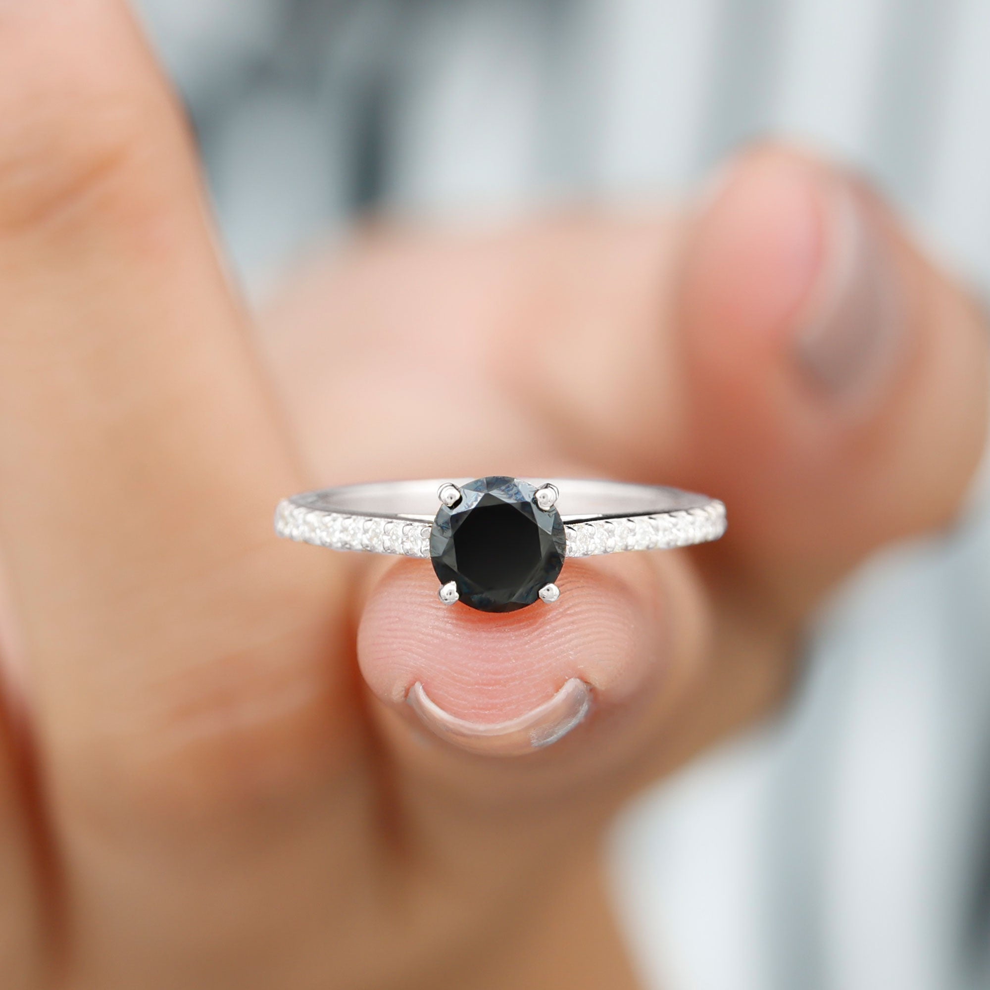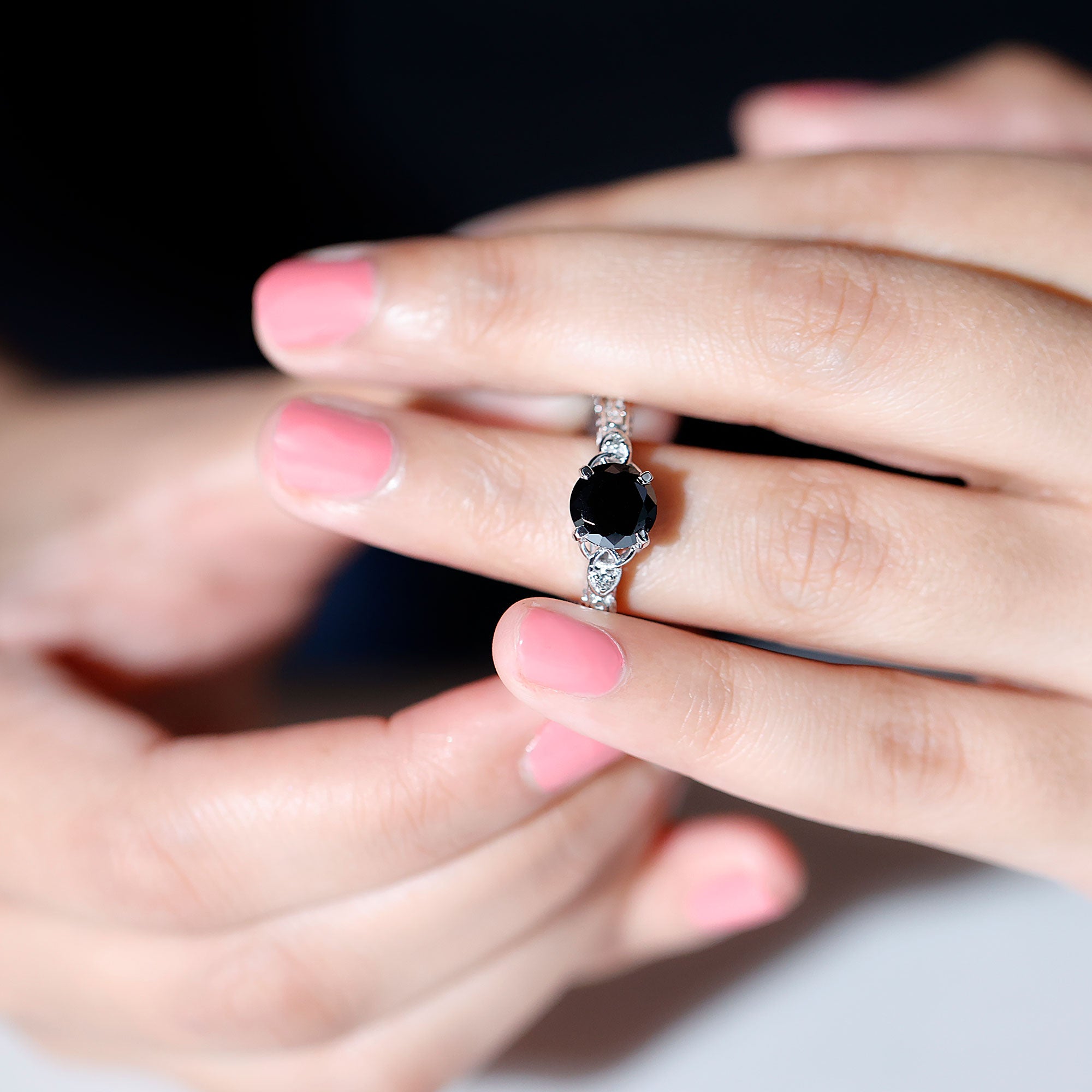 In a Solitaire Style, the Single-Stone of Black Onyx works like the center of all attraction. The enormous size of Black Onyx here, i.e., 6-8 MM, makes all the difference. This style could easily be awarded the most popular and classic Black Onyx Engagement Ring. Right from the conventional round to fancy pear and marquise and vintage Asscher and Emerald, this ring style offers you a world of options.