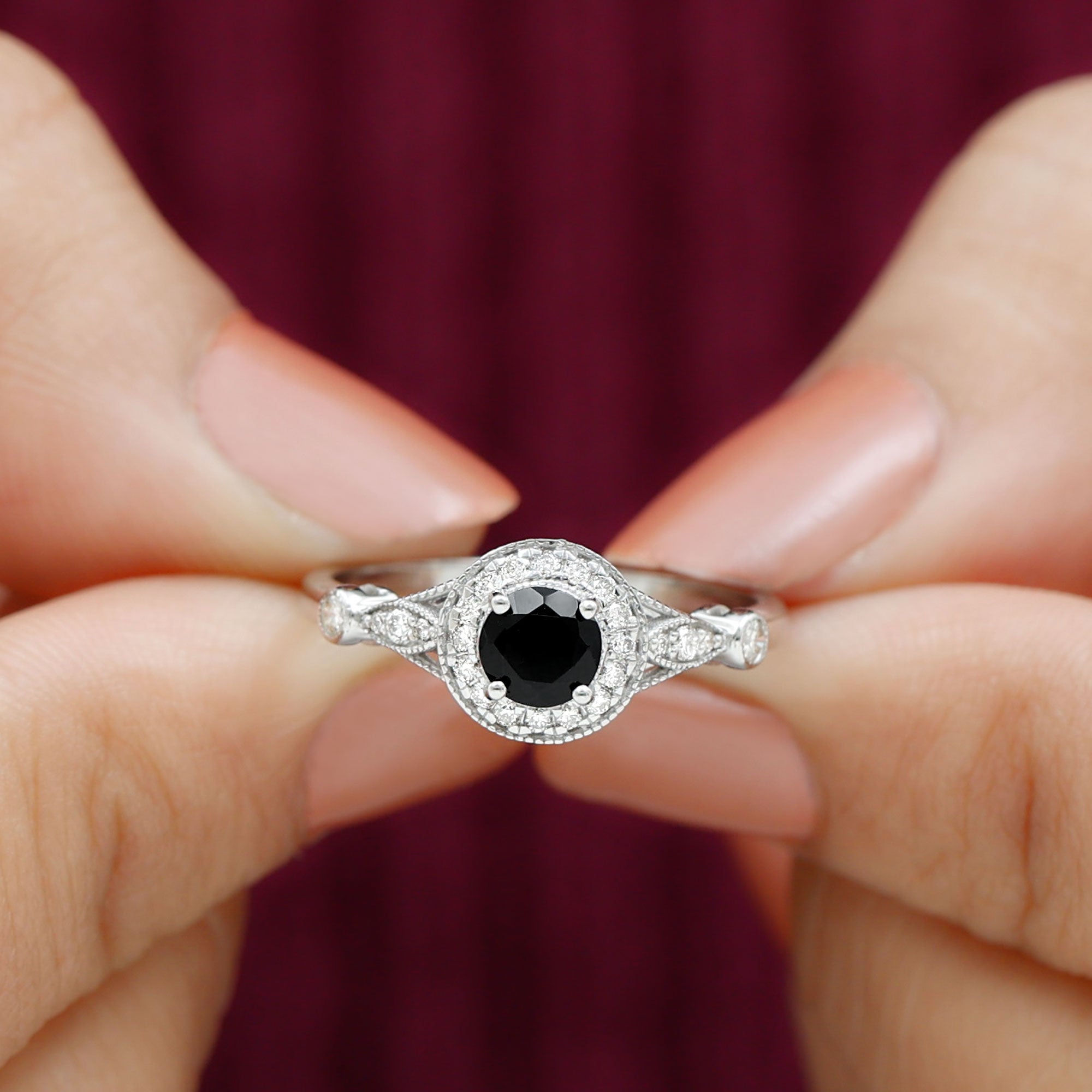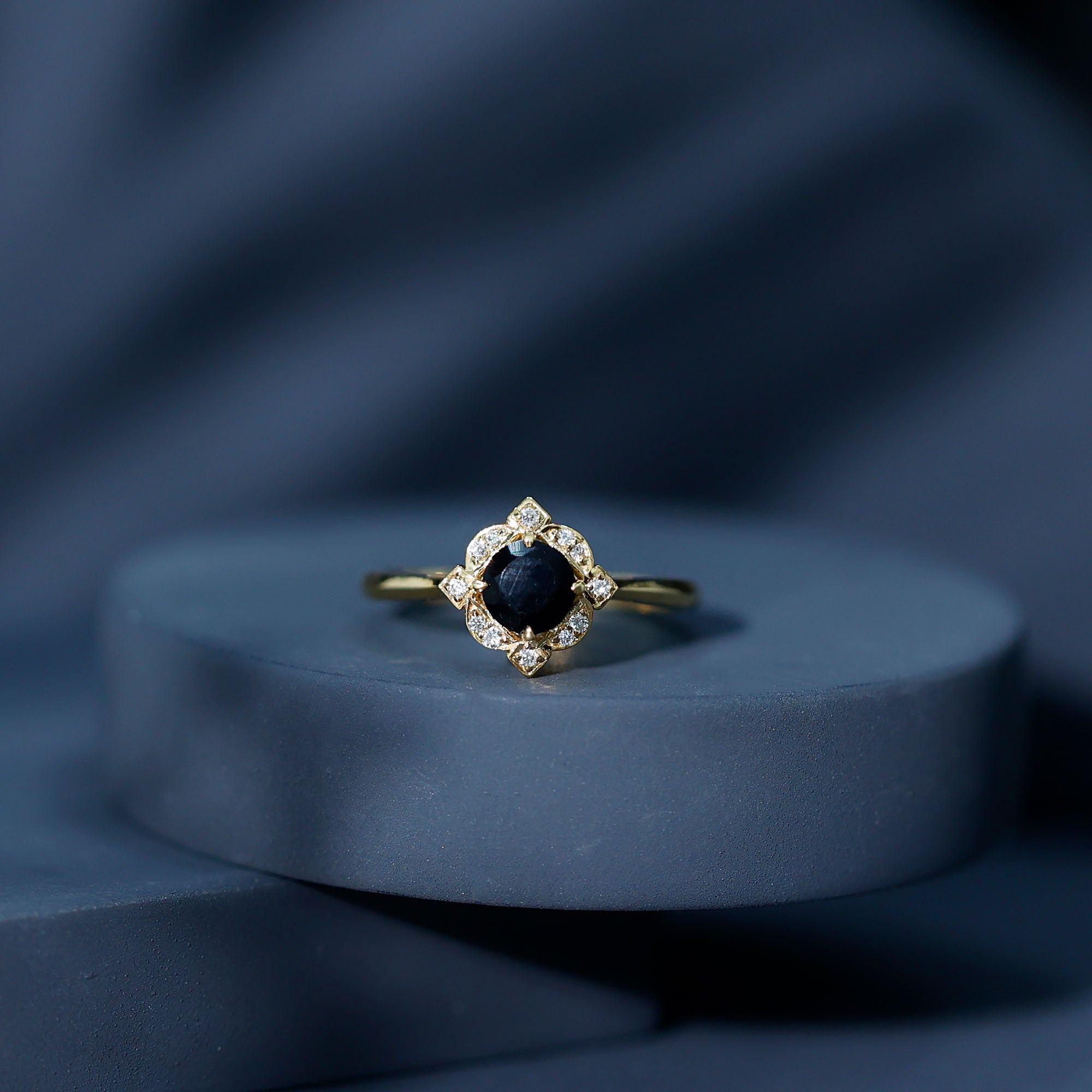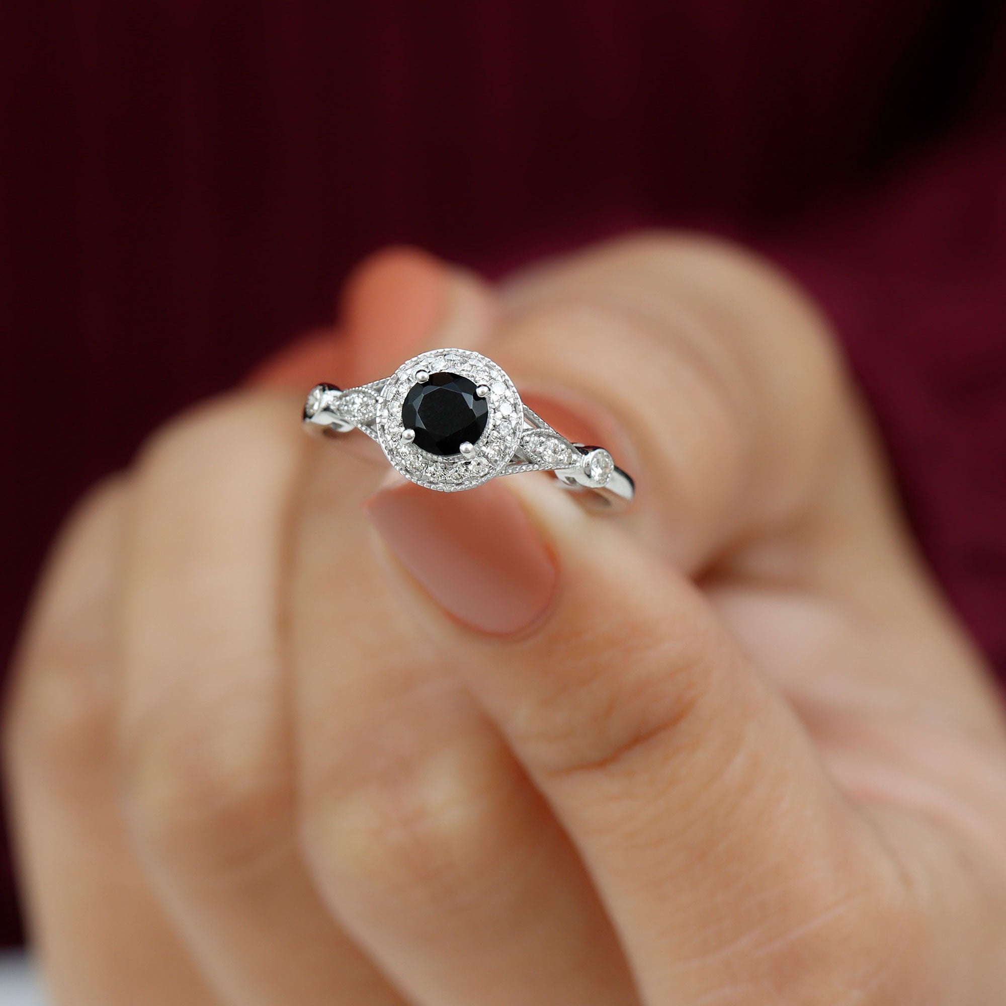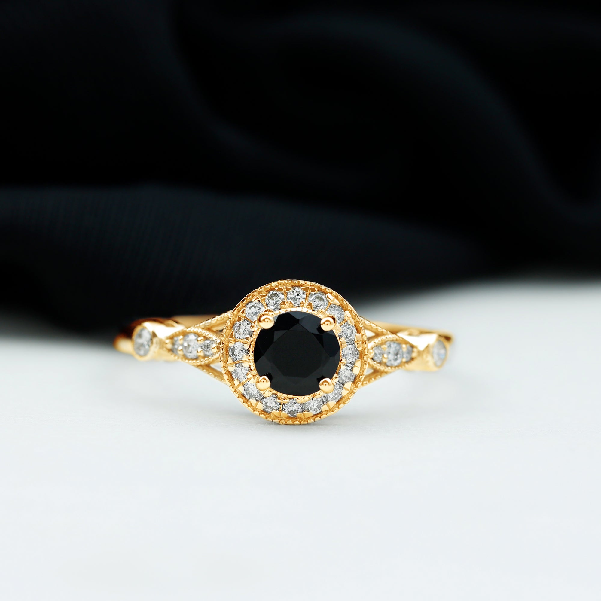 A Halo style encircles the Centerpiece of Black Onyx with a row of Diamonds/Moissanite, offering you a layer full of sparkles. With that, it also brings the monochromatic combination of Black and White to life. A Black Onyx Ring with Diamond Halo is made for the ones who like more character and definition in their ring. Moreover, it makes your Onyx look bigger (while saving you the extra bucks, of course).