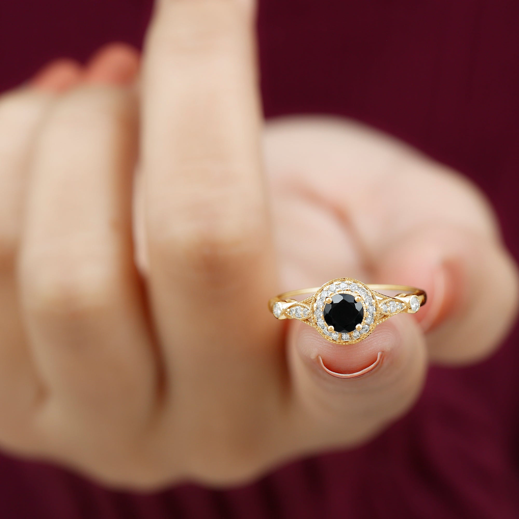 A Vintage-inspired Ring re-incarnates the designs that were significant back in Art Deco, Edwardian, and Victorian Eras. This Antique Black Onyx Ring features filigree, milgrain, and other old-school engravings. It is best complemented by the bold centerpiece of Black Onyx that helps it look like a fashion-forward retro ring. (Talk about mix n match!)