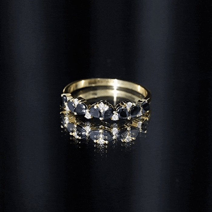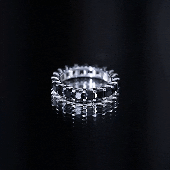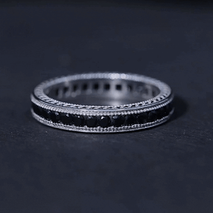 A Modern Classic, this Eternity Ring is paraded by a row of Black Onyx that are typically uniform in size. You’ll find no better style to flaunt your Black Onyx. But don’t take it to mean that it is all aesthetics. This style has been crafted in a way that carries an equally beautiful meaning behind it. The eternity pattern of stones commemorates the kind of love that lasts till the end of time (eternally). That’s why it also makes for an iconic Black Onyx Wedding Ring.