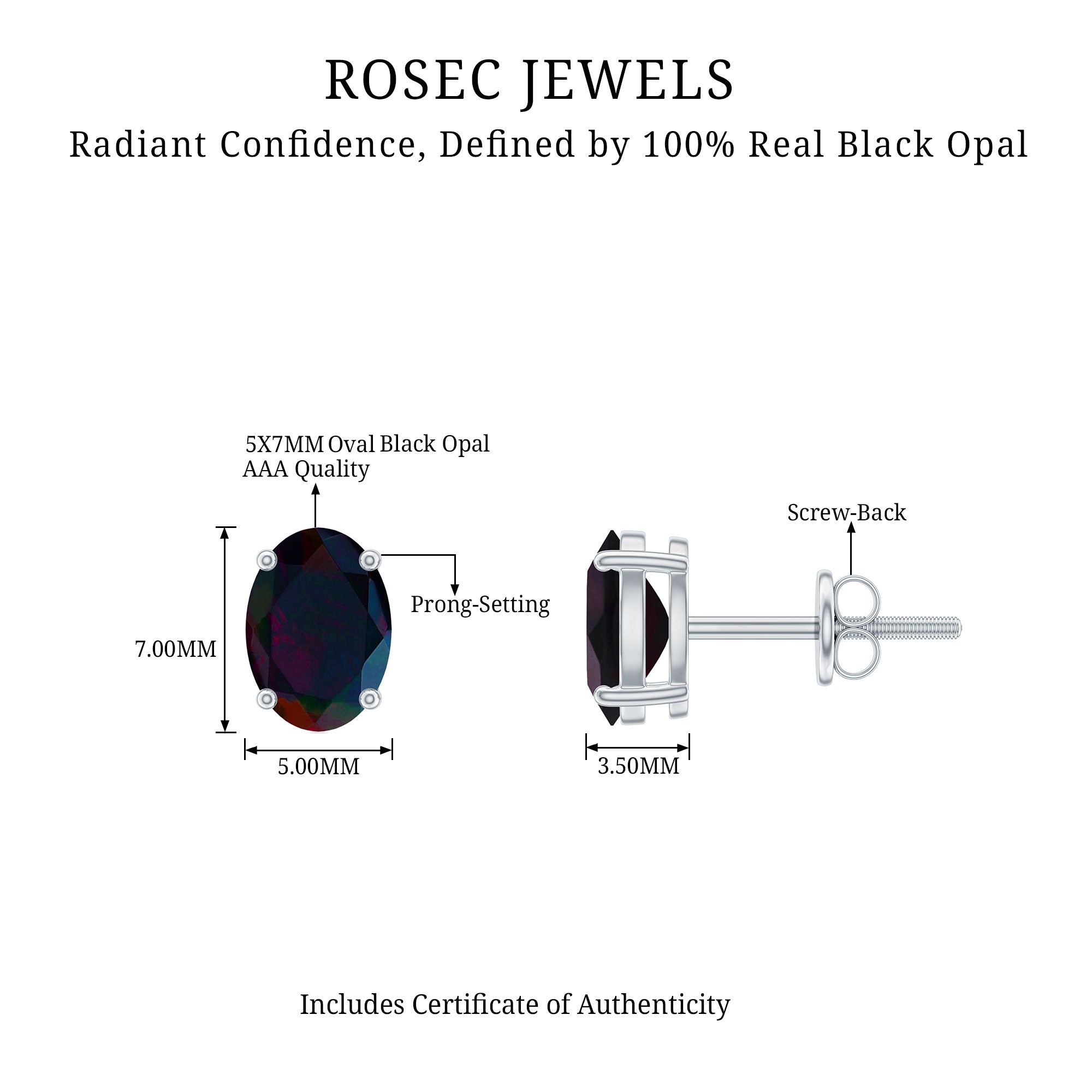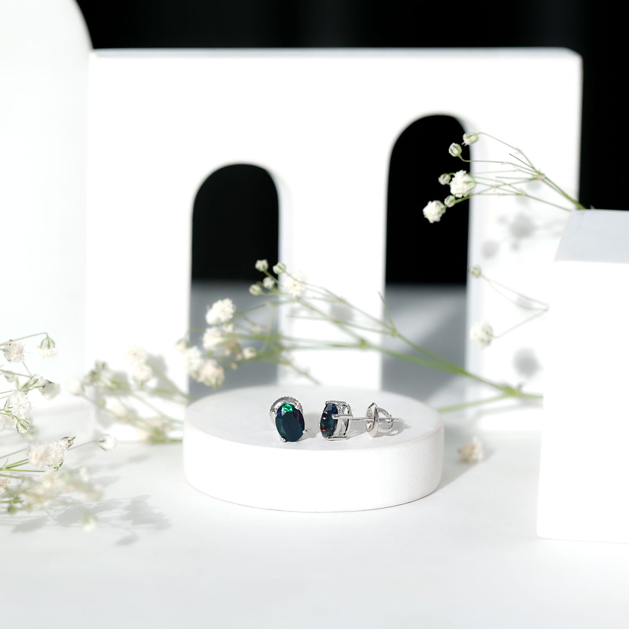 Claw Setting:- This offers flexibility in securing gemstones within jewelry designs. The setting is used to craft a frame for the gemstone to rest in, along with the claws or prongs responsible for firmly holding the gemstone in position. The beauty and uniqueness of the black opal earrings are accentuated by this claw setting while ensuring its stability in the ring's design.