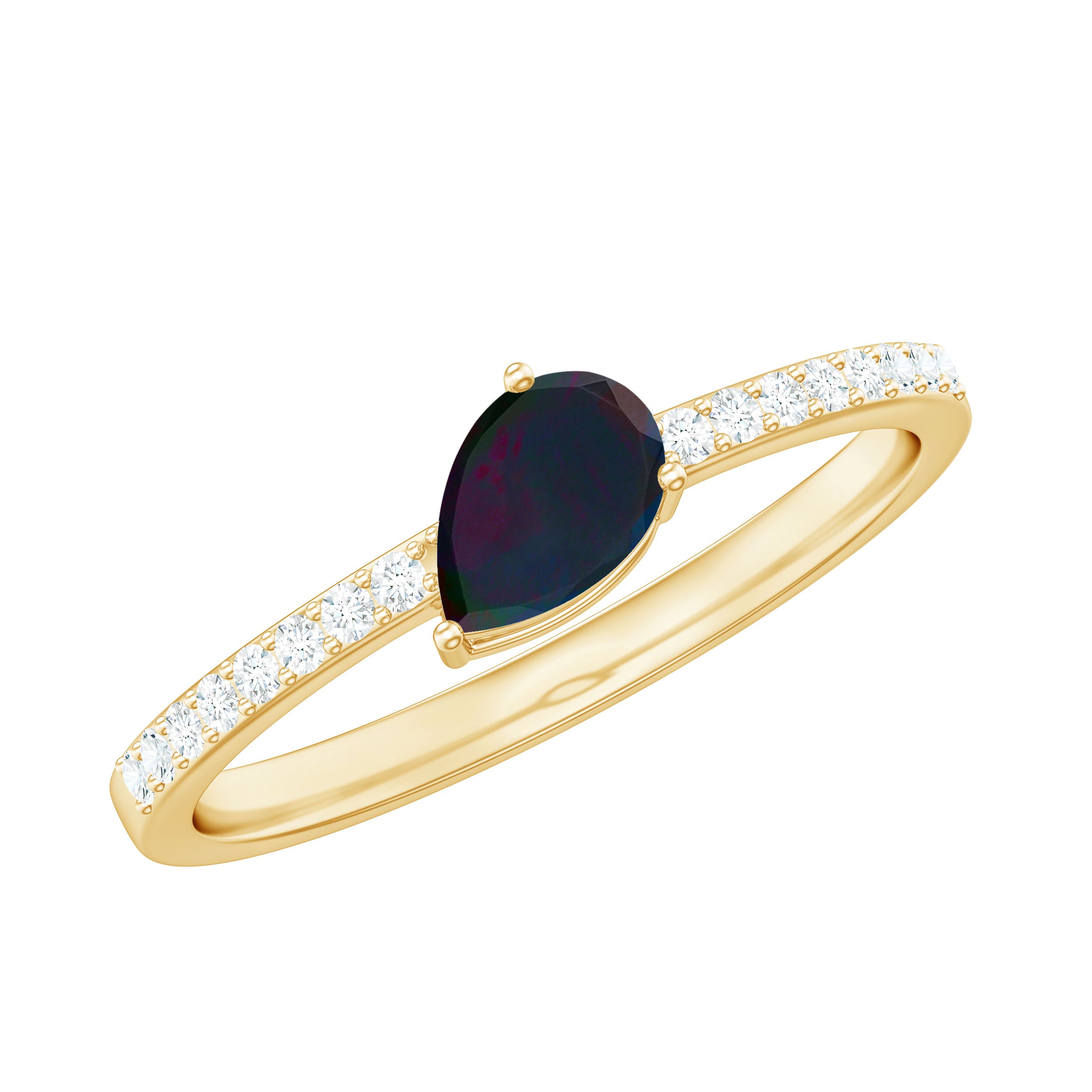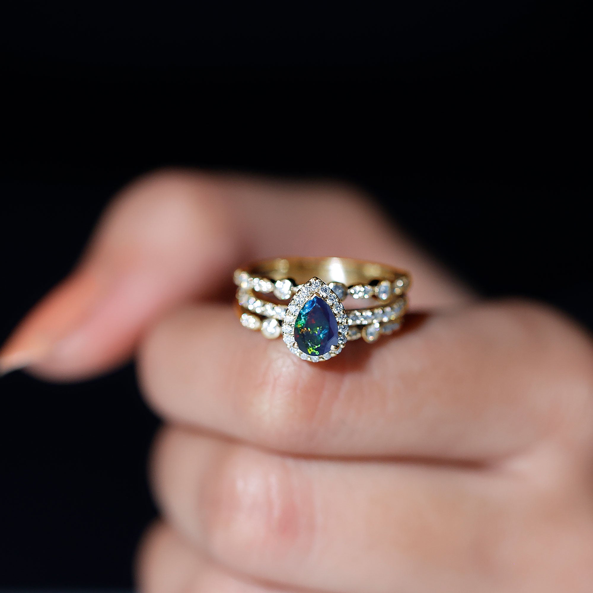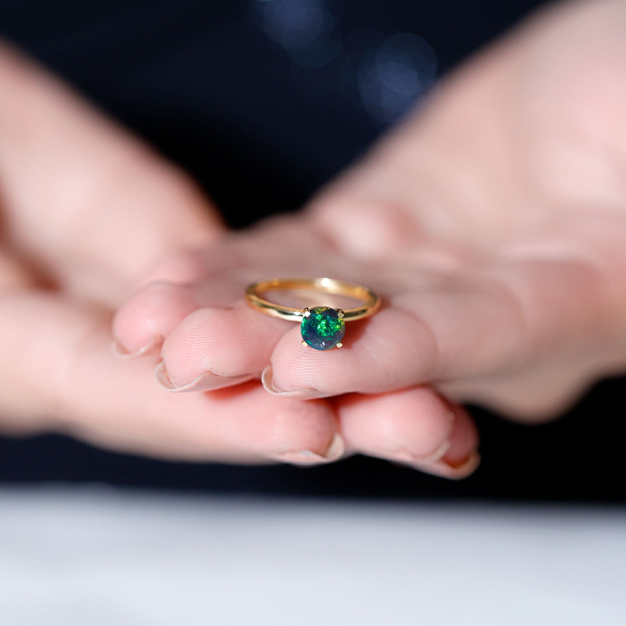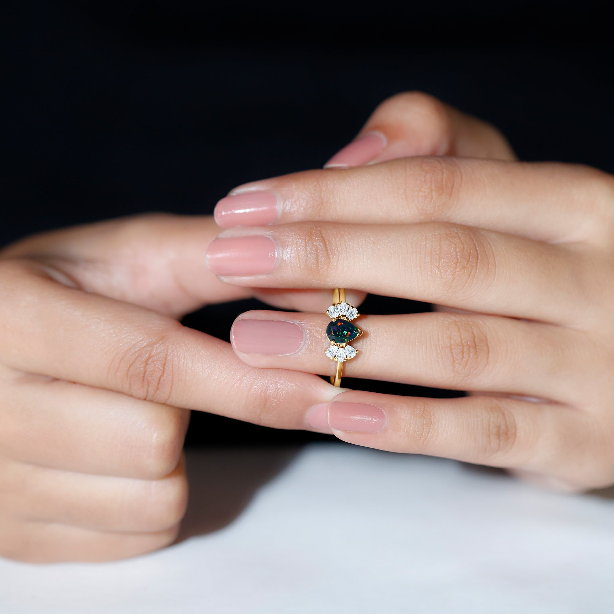 Like other gemstone rings, opals pair well with diamonds and other shining stones. This is the reason we’ve put together a beautiful collection of Black Opal and diamond rings, in almost all stylish designs. If you prefer the solo elegance of black opals then you can check out the amazing solitaire black opal ring category. It features a single opal gemstone in classic round and oval to pear and other trending shapes and cuts.