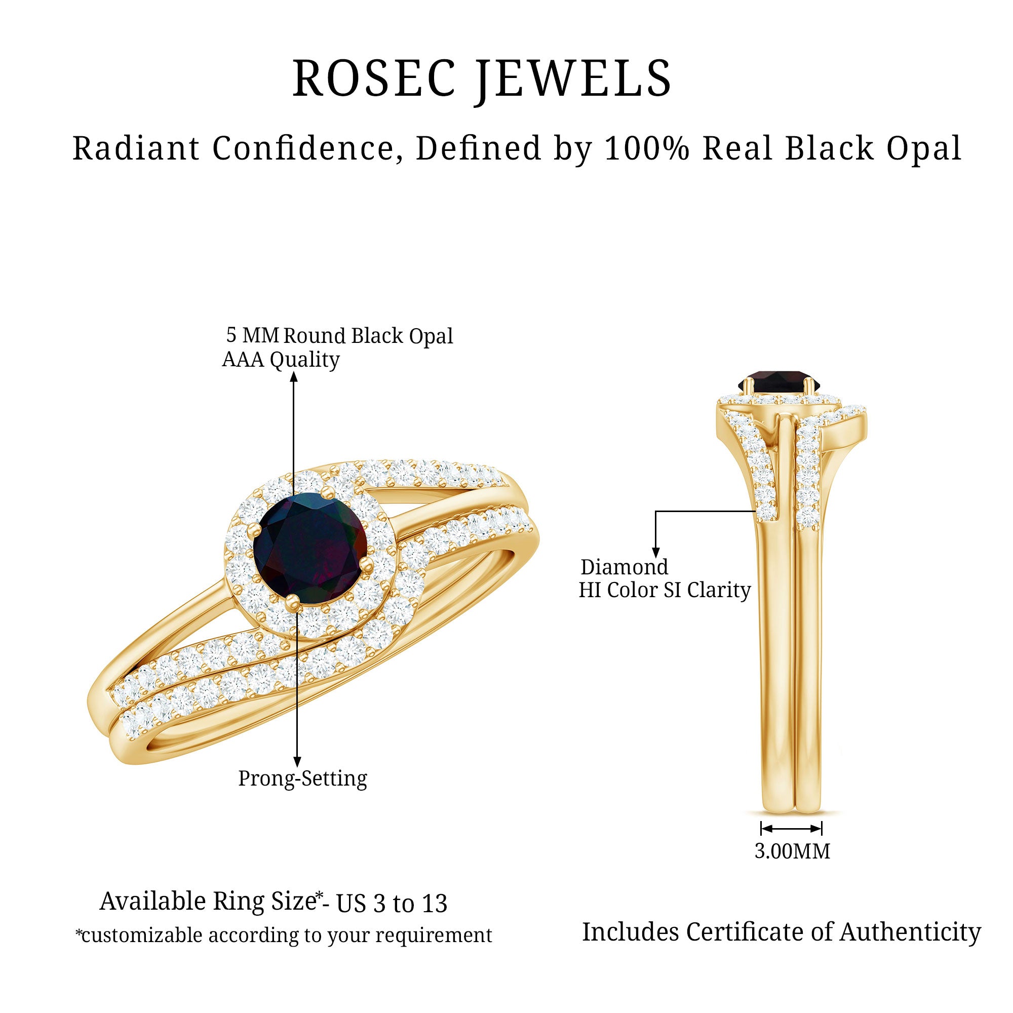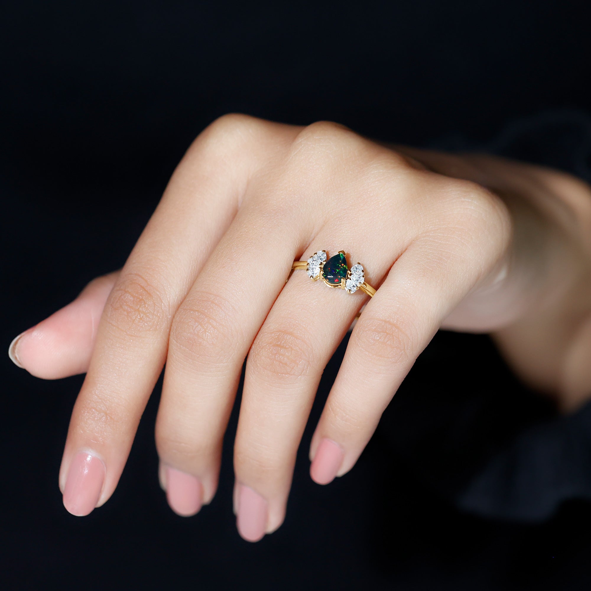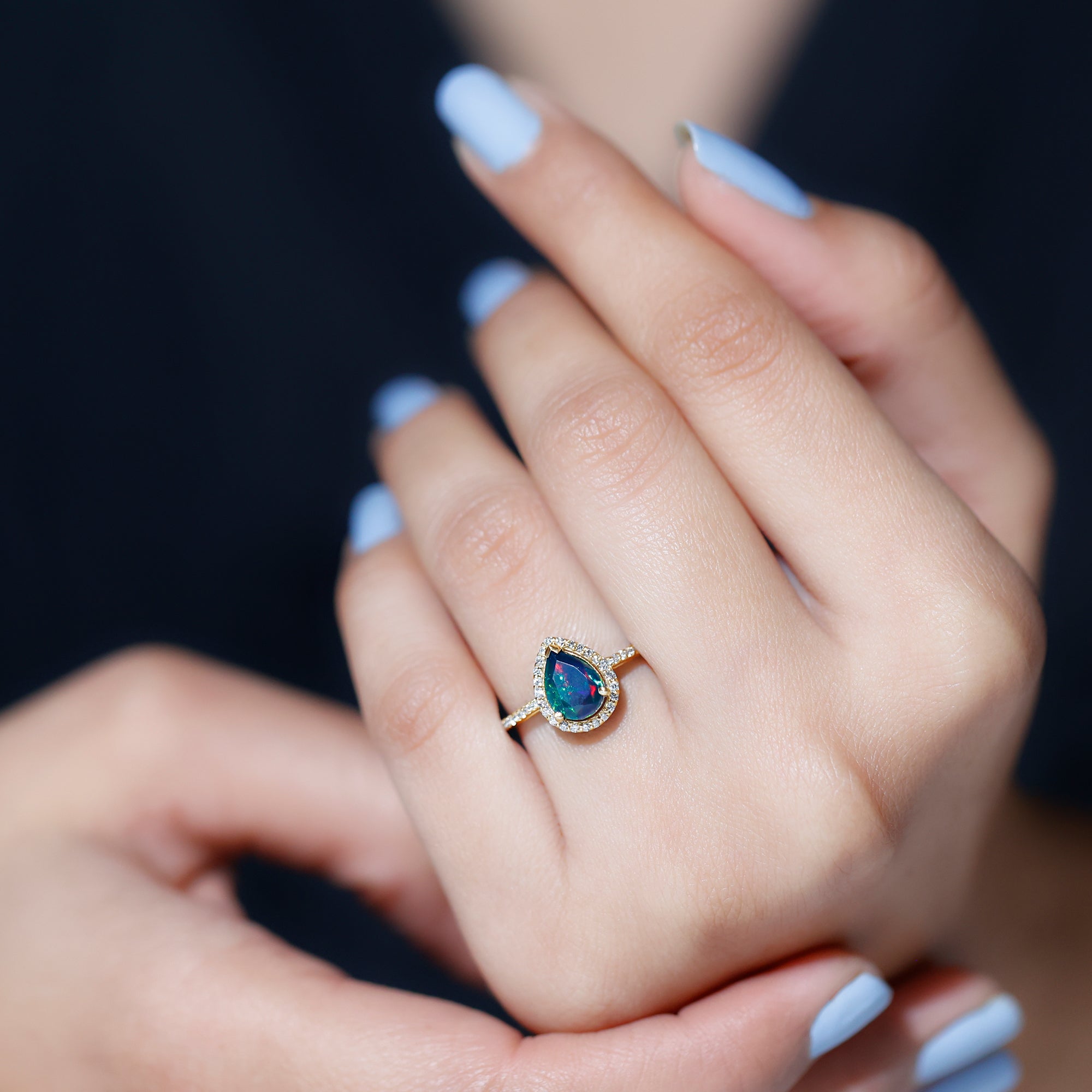 Like other gemstone rings, opals pair well with diamonds and other shining stones. This is the reason we’ve put together a beautiful collection of Black Opal and diamond rings, in almost all stylish designs. If you prefer the solo elegance of black opals then you can check out the amazing solitaire black opal ring category. It features a single opal gemstone in classic round and oval to pear and other trending shapes and cuts.