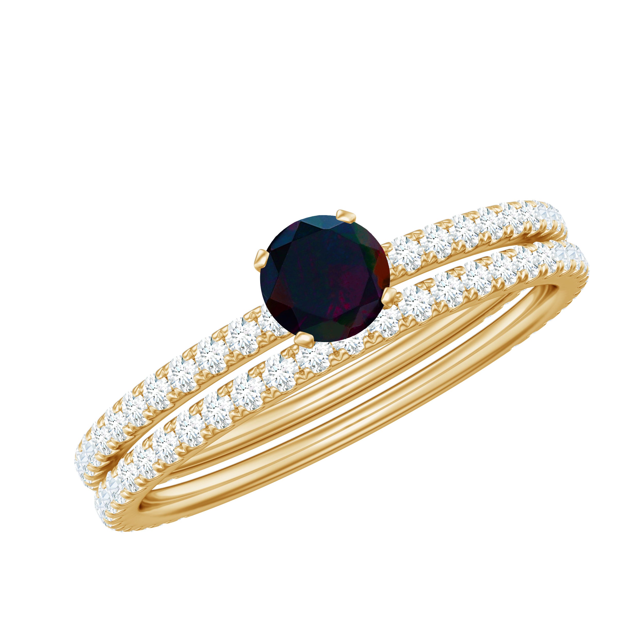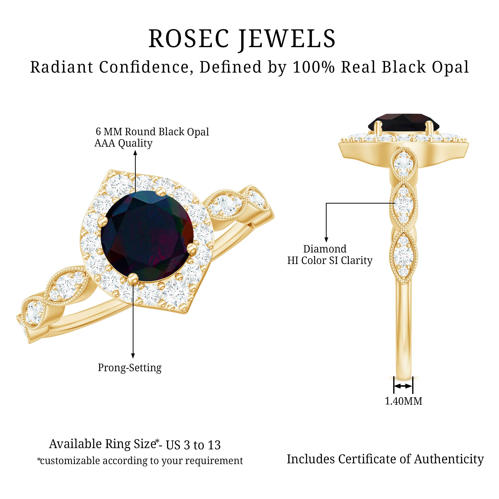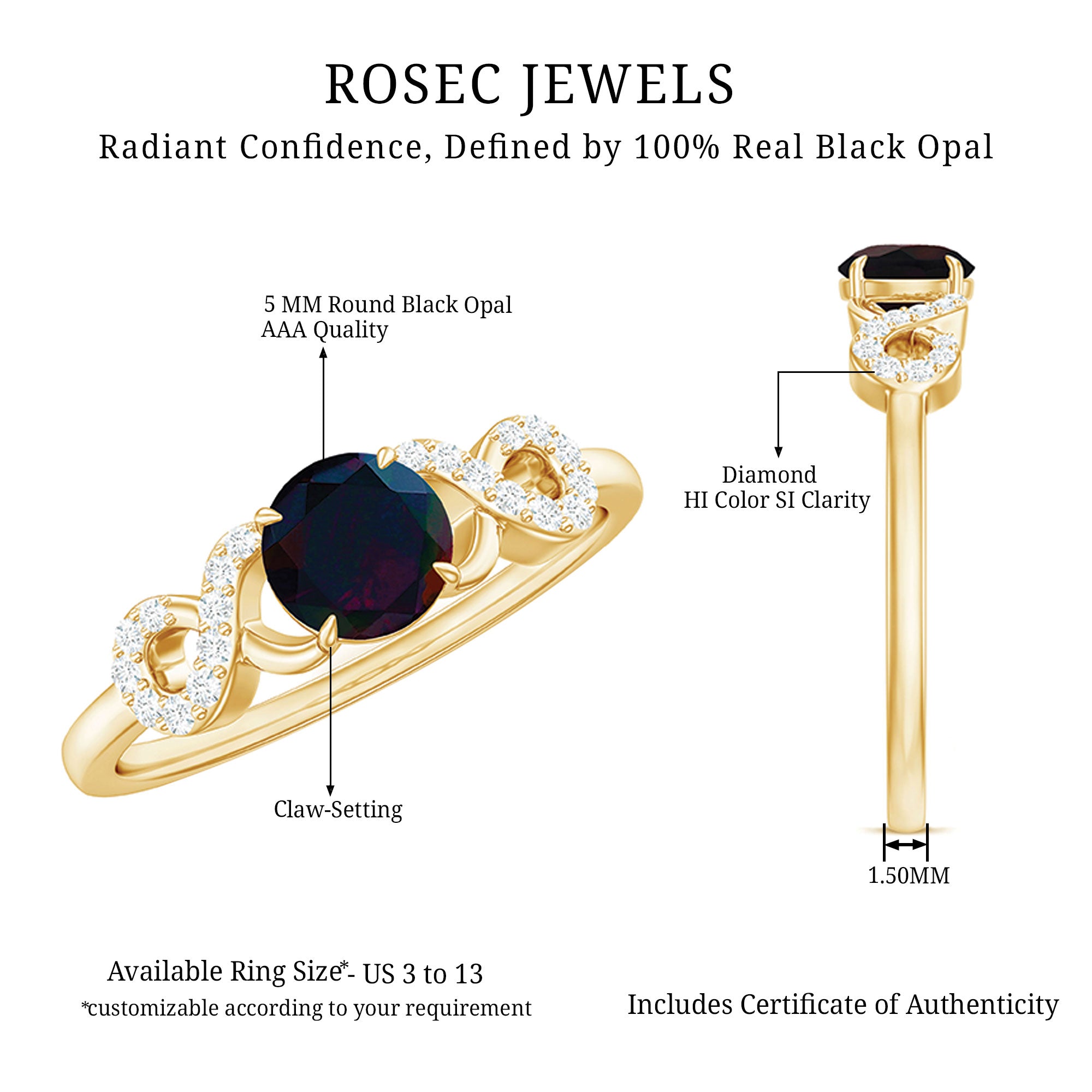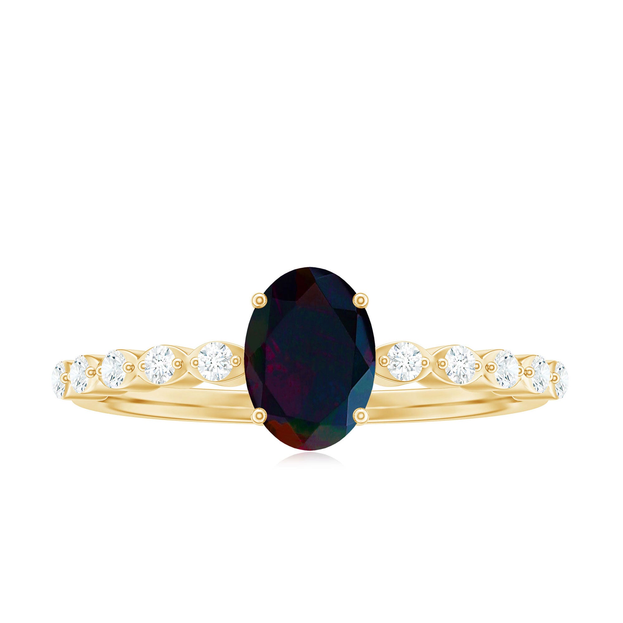 Like other gemstone rings, opals pair well with diamonds and other shining stones. This is the reason we’ve put together a beautiful collection of Black Opal and diamond rings, in almost all stylish designs. If you prefer the solo elegance of black opals then you can check out the amazing solitaire black opal ring category. It features a single opal gemstone in classic round and oval to pear and other trending shapes and cuts.