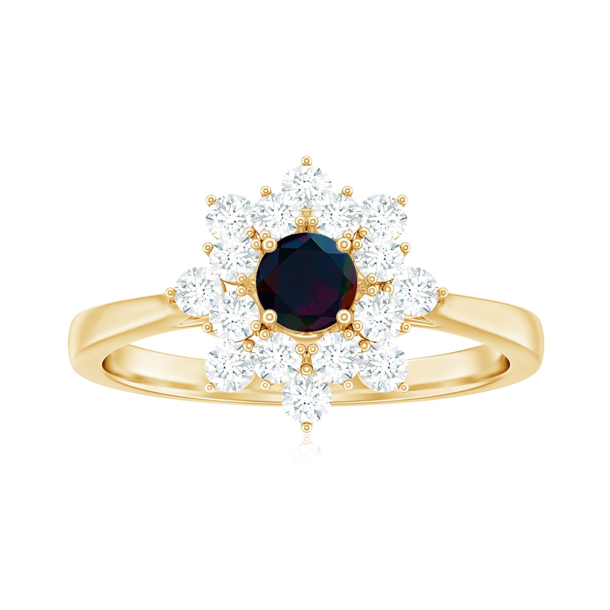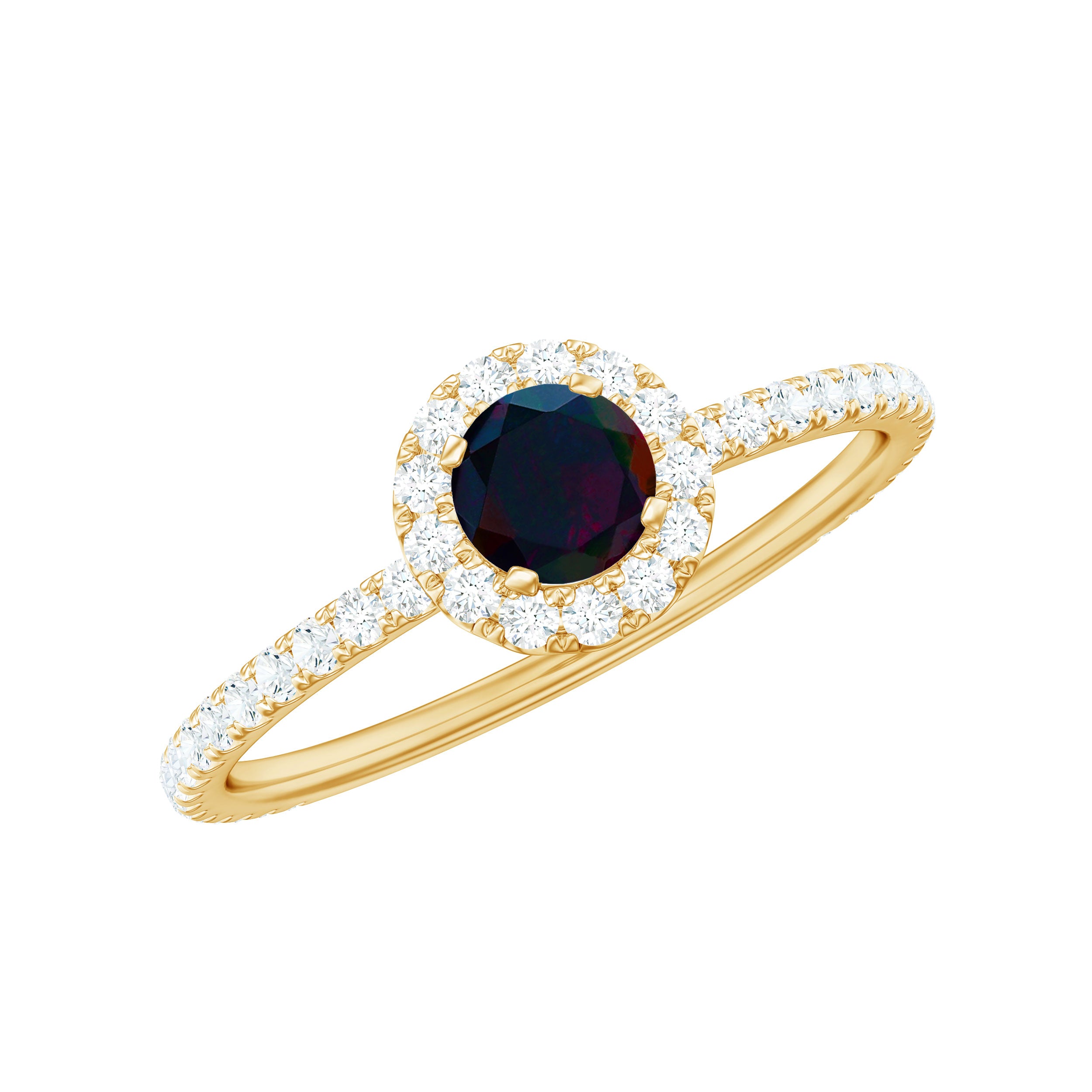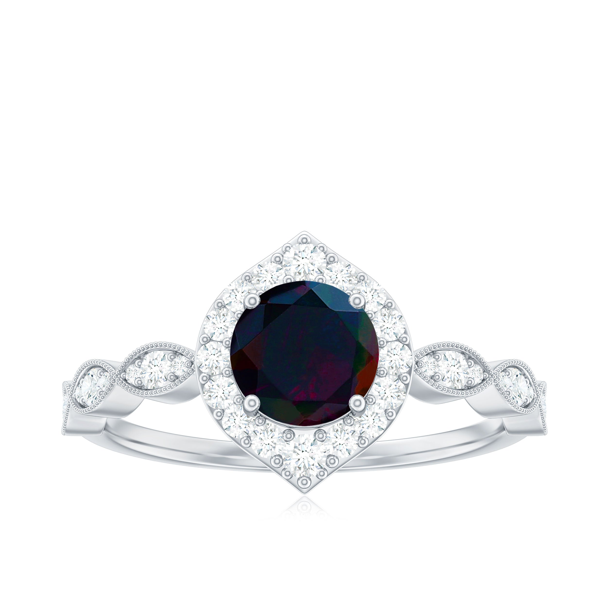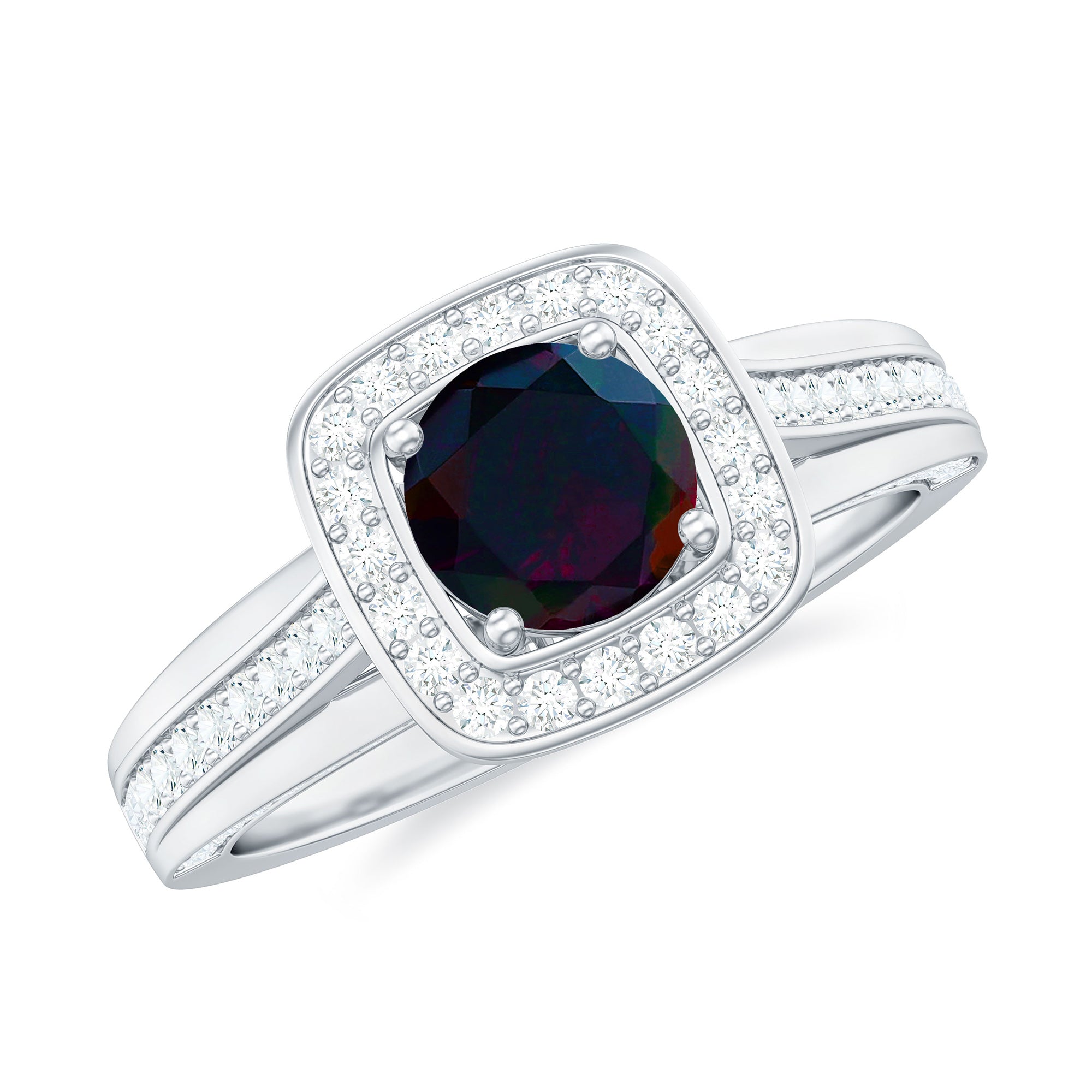 A single opal is accentuated with diamonds or moissanites to add a touch of sparkle to our Black Opal halo rings. From designer to vintage-inspired styles, we offer opal and black diamond rings in almost every look.