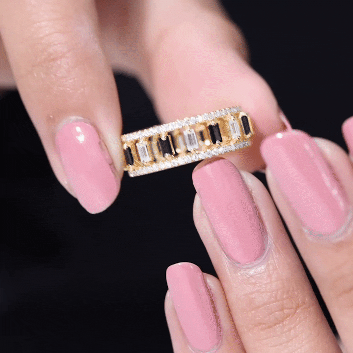 A Black Spinel Eternity Ring is encrusted with a row of identically-sized Black Spinel that just like the name suggests, has no start or end. So, if you can’t get enough of the bold black pop of Spinel, this ring could be the one for you. This Black Spinel Ring isn’t all aesthetics but also holds a much deeper meaning. It resonates with the kind of love that is meant to last a lifetime, i.e, eternal (which is also what makes it a highly treasured Black Spinel Wedding Ring).