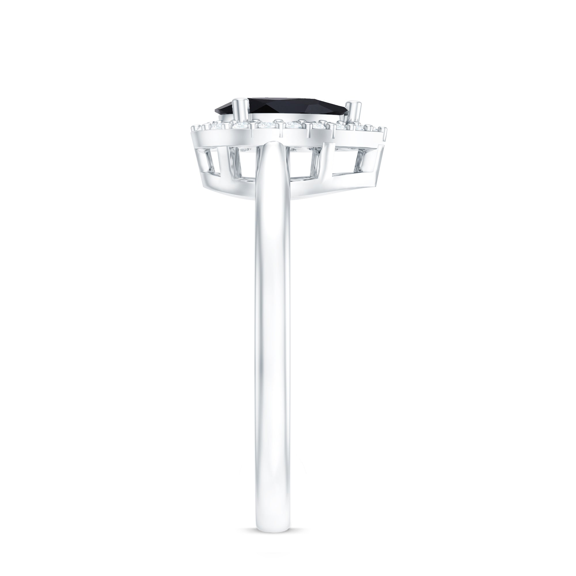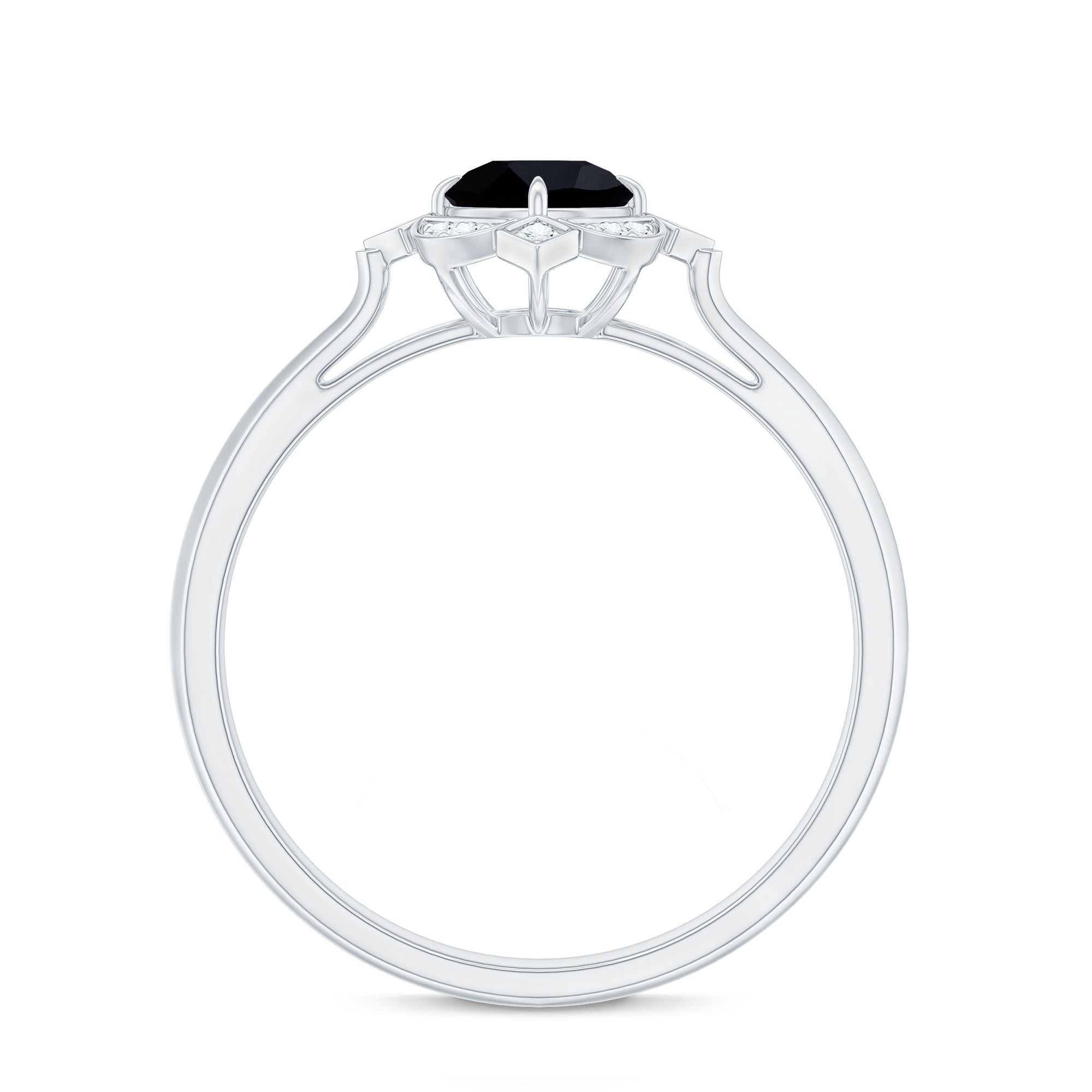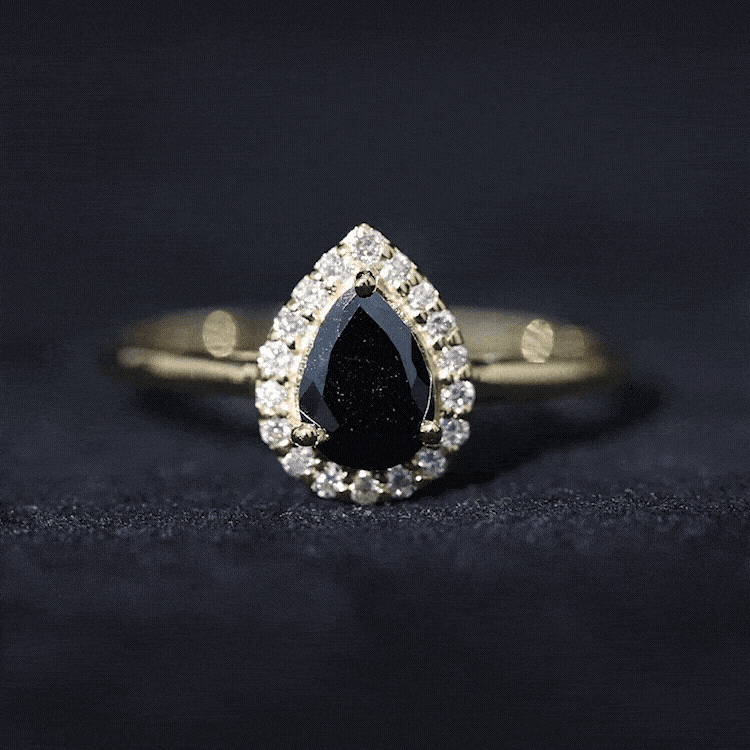 Lending an interesting visual appeal to the Black Spinel Solitaire Ring, a Halo encircles the Black Spinel with a parade of diamond/moissanite. The best part about a Halo is that it rewards more personality as well as an illusion of a larger-looking size to your Black Spinel. So, it is a unique blend of classic and flashy. That makes it another popular choice of the Black Spinel Engagement Ring.