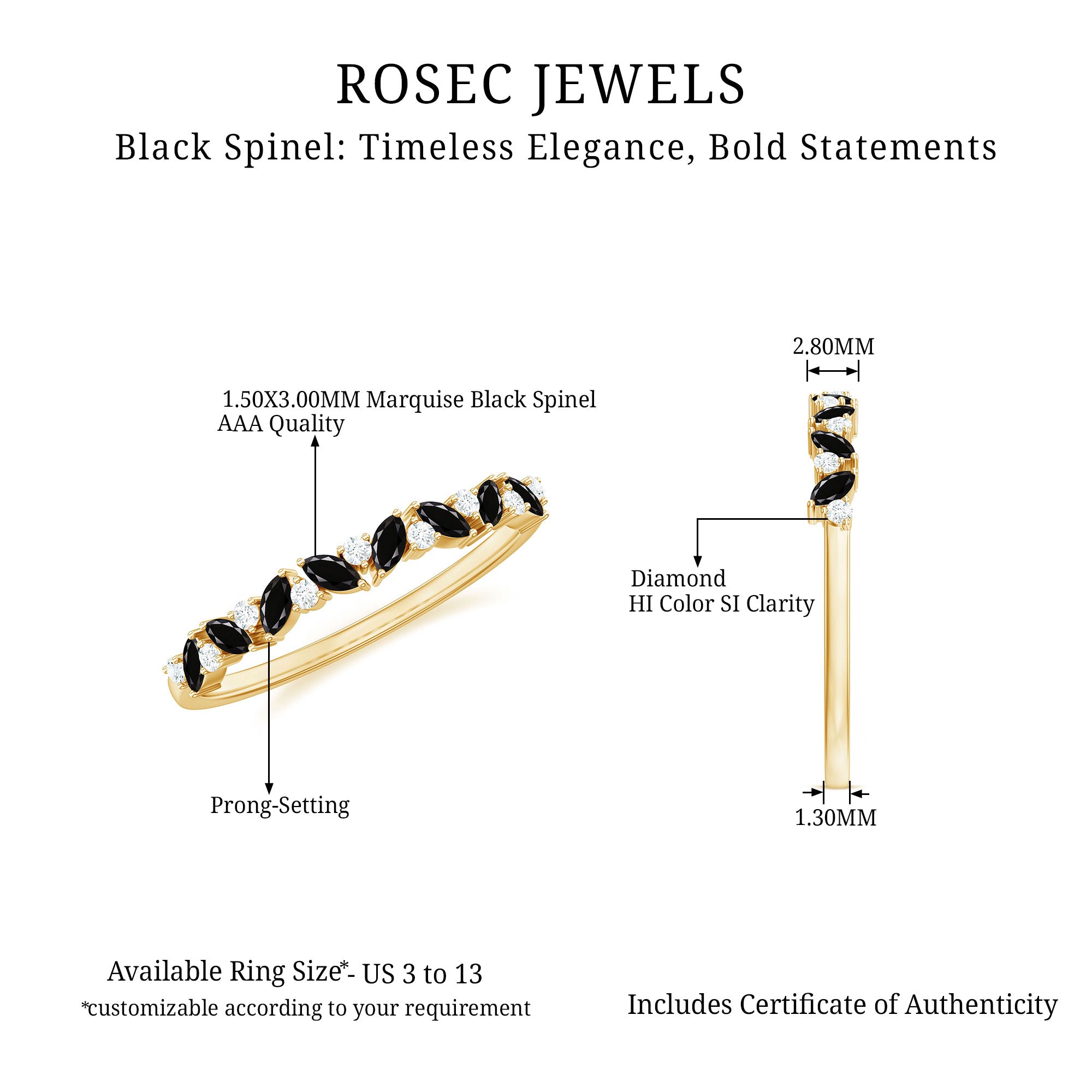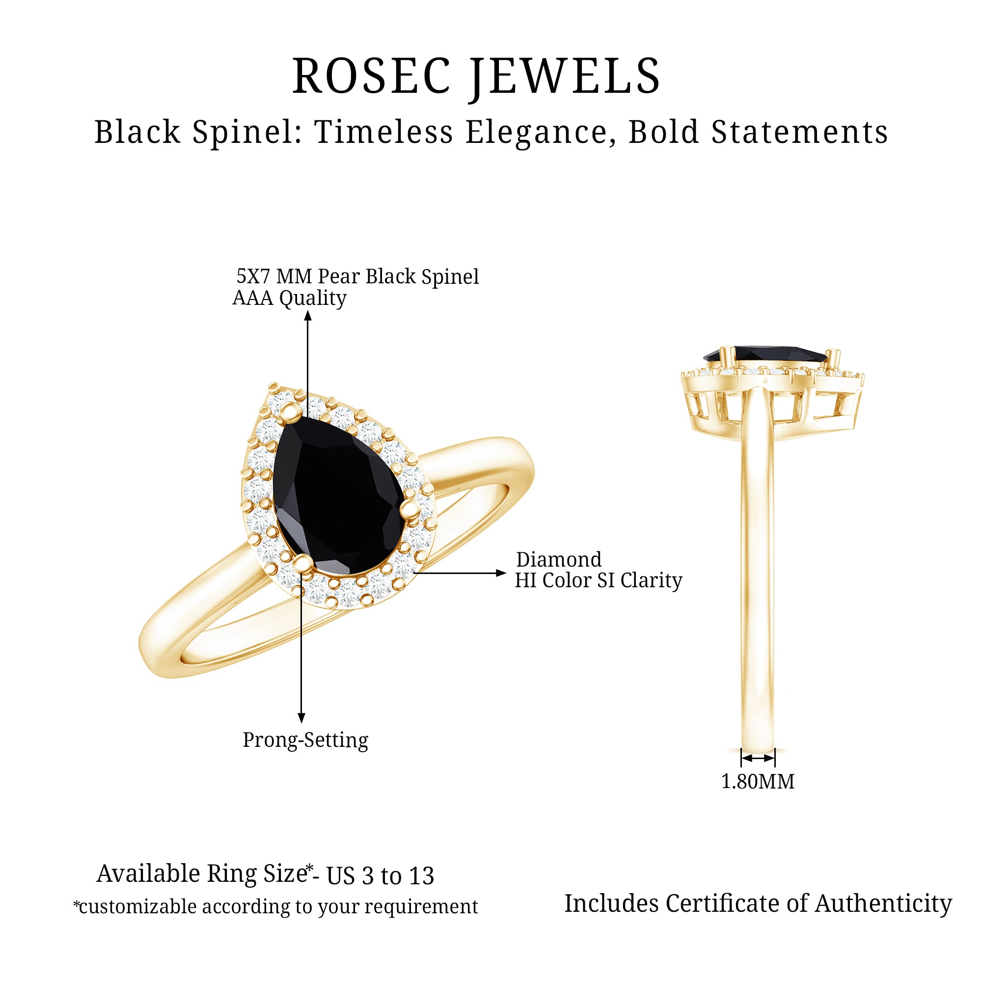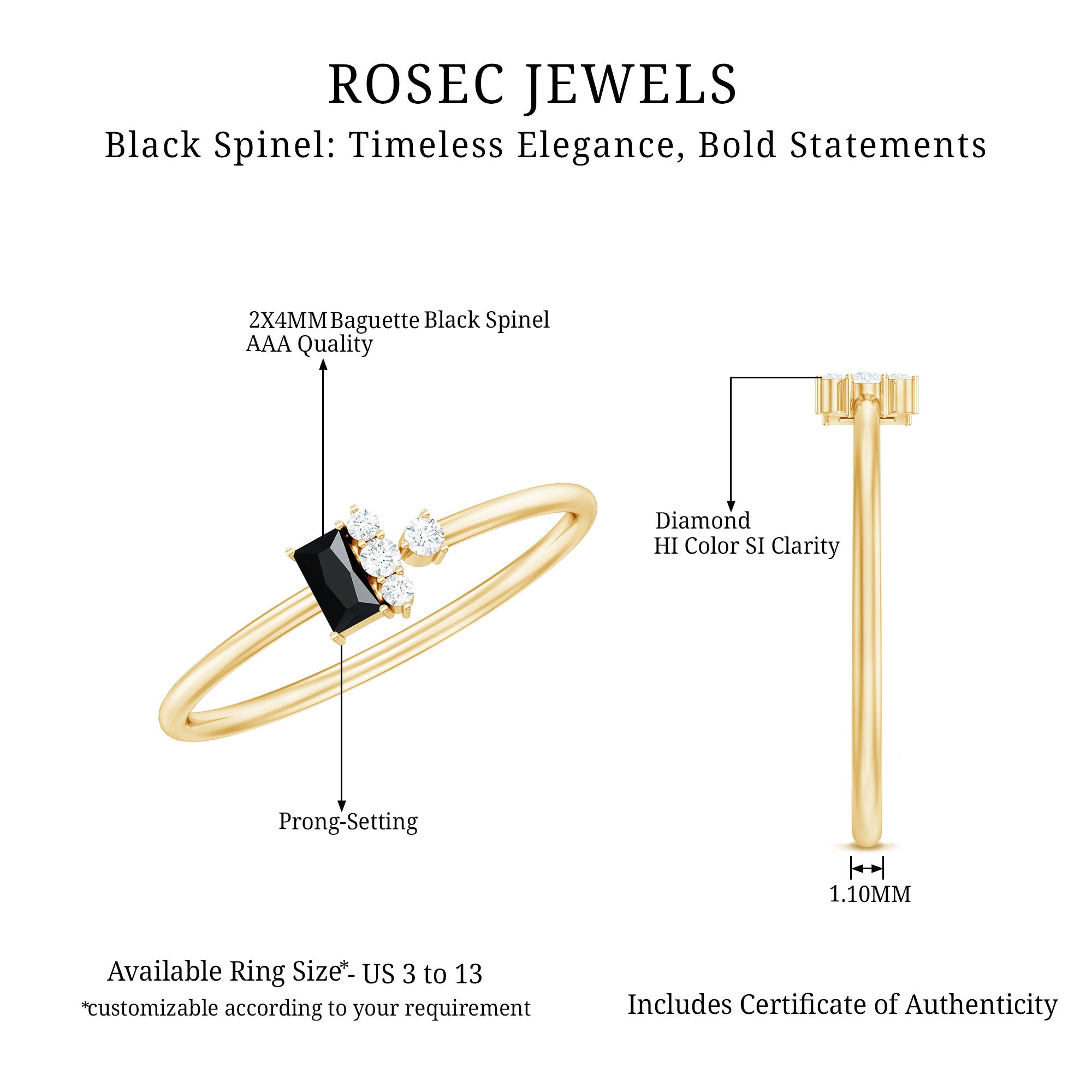 Having said that, let’s get to the most exciting part and find your favorite among the wide pool of trendy Black Spinel Gold Rings that we carry!