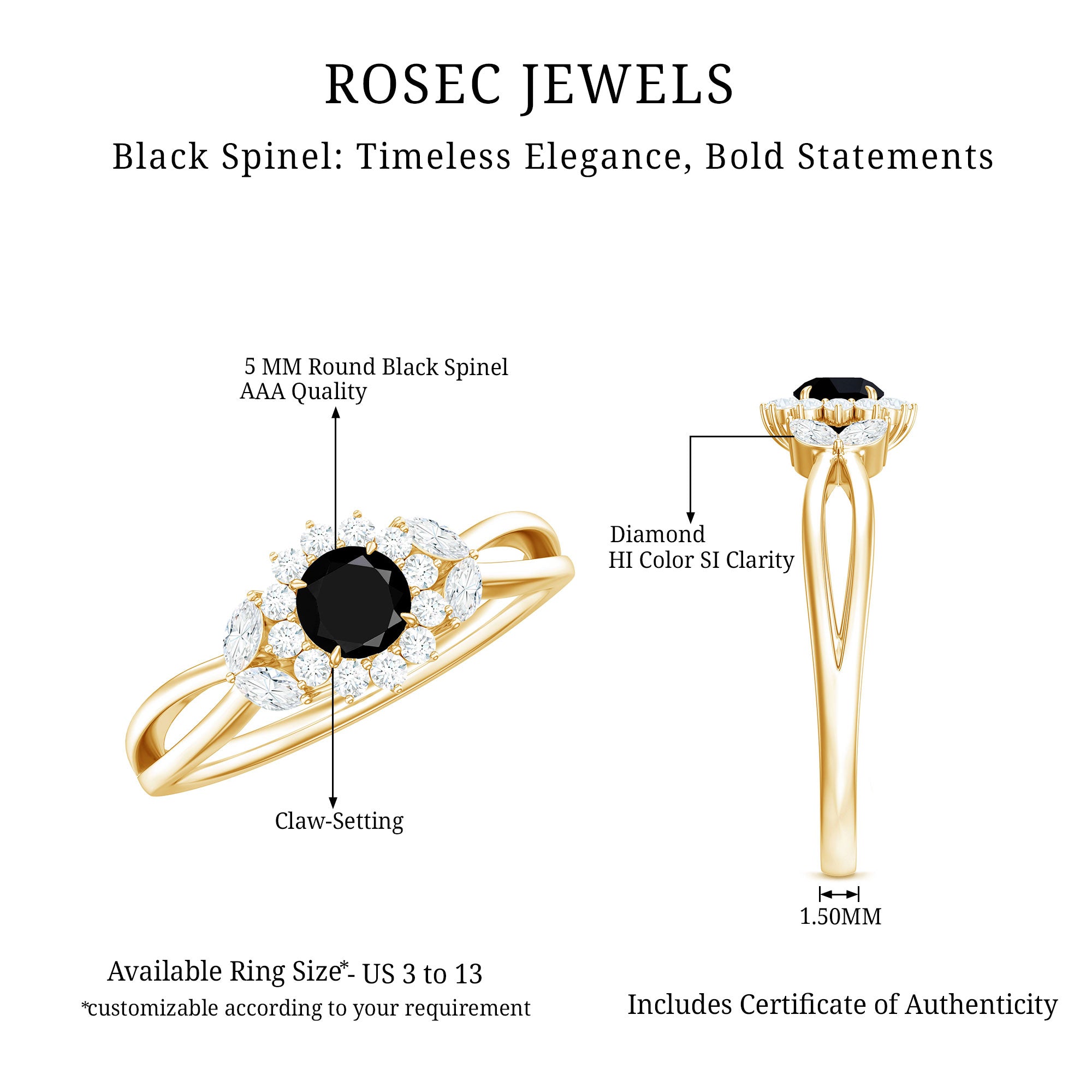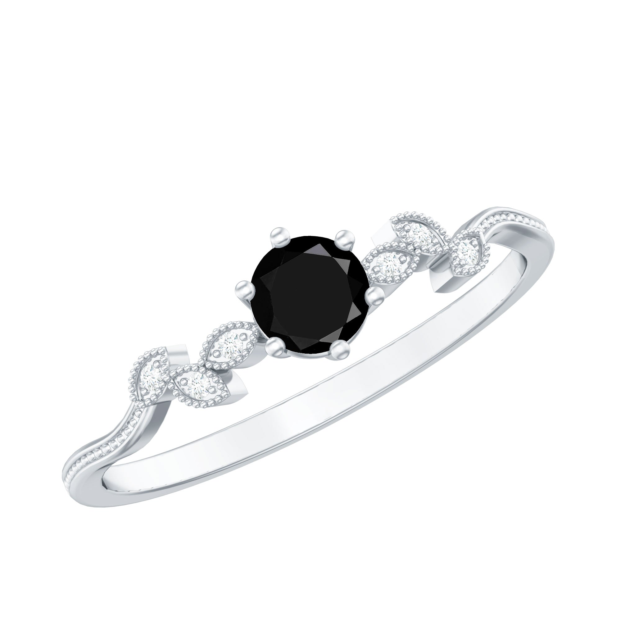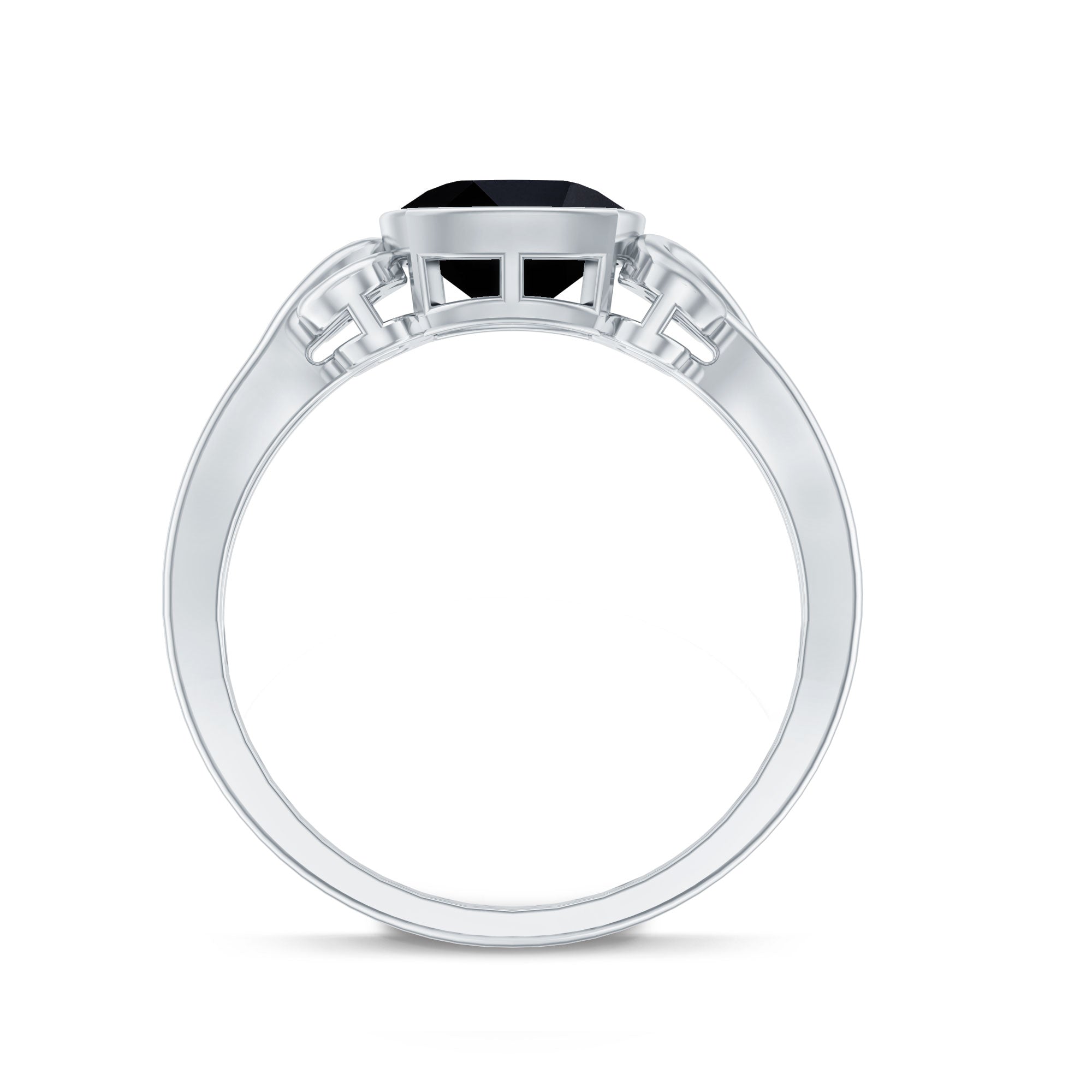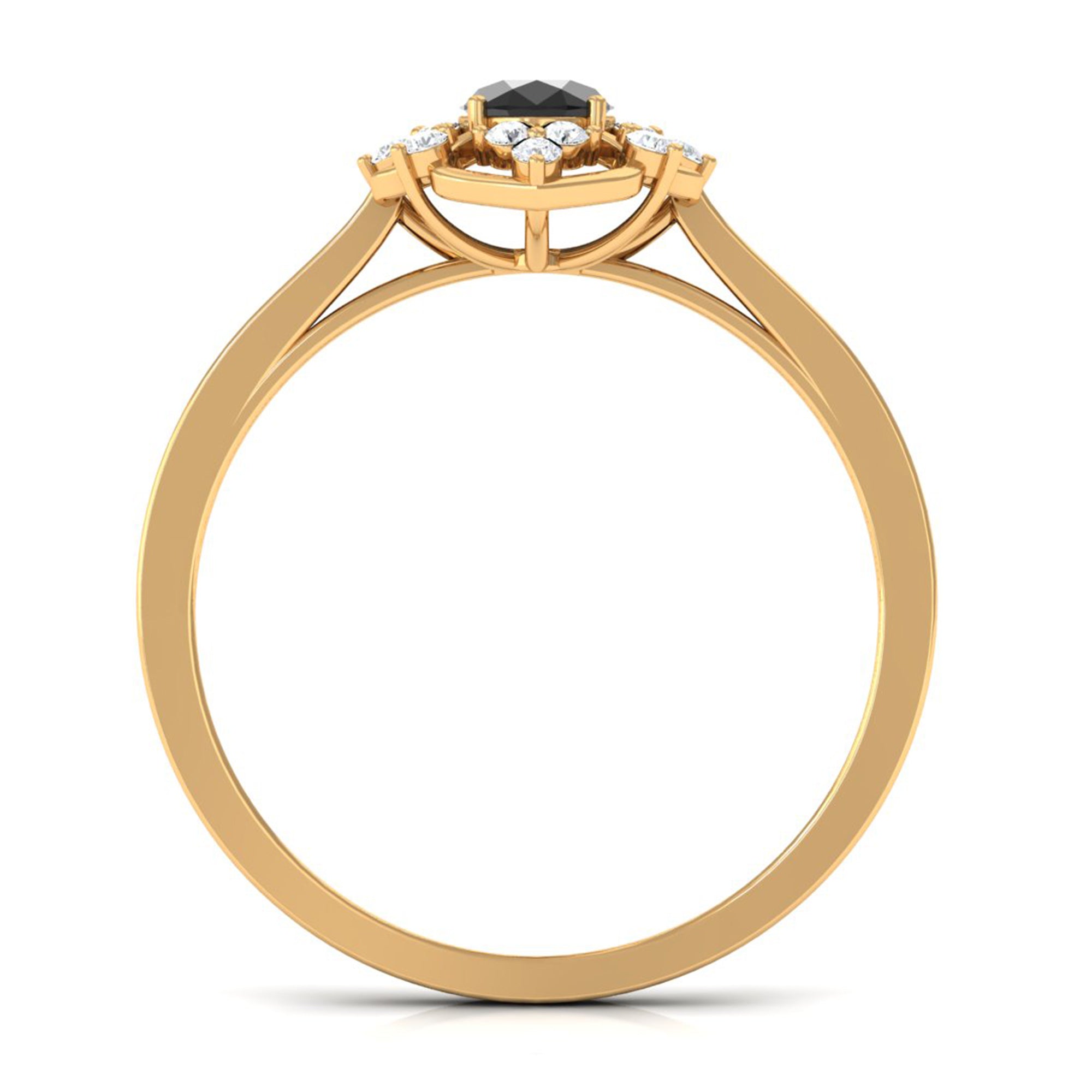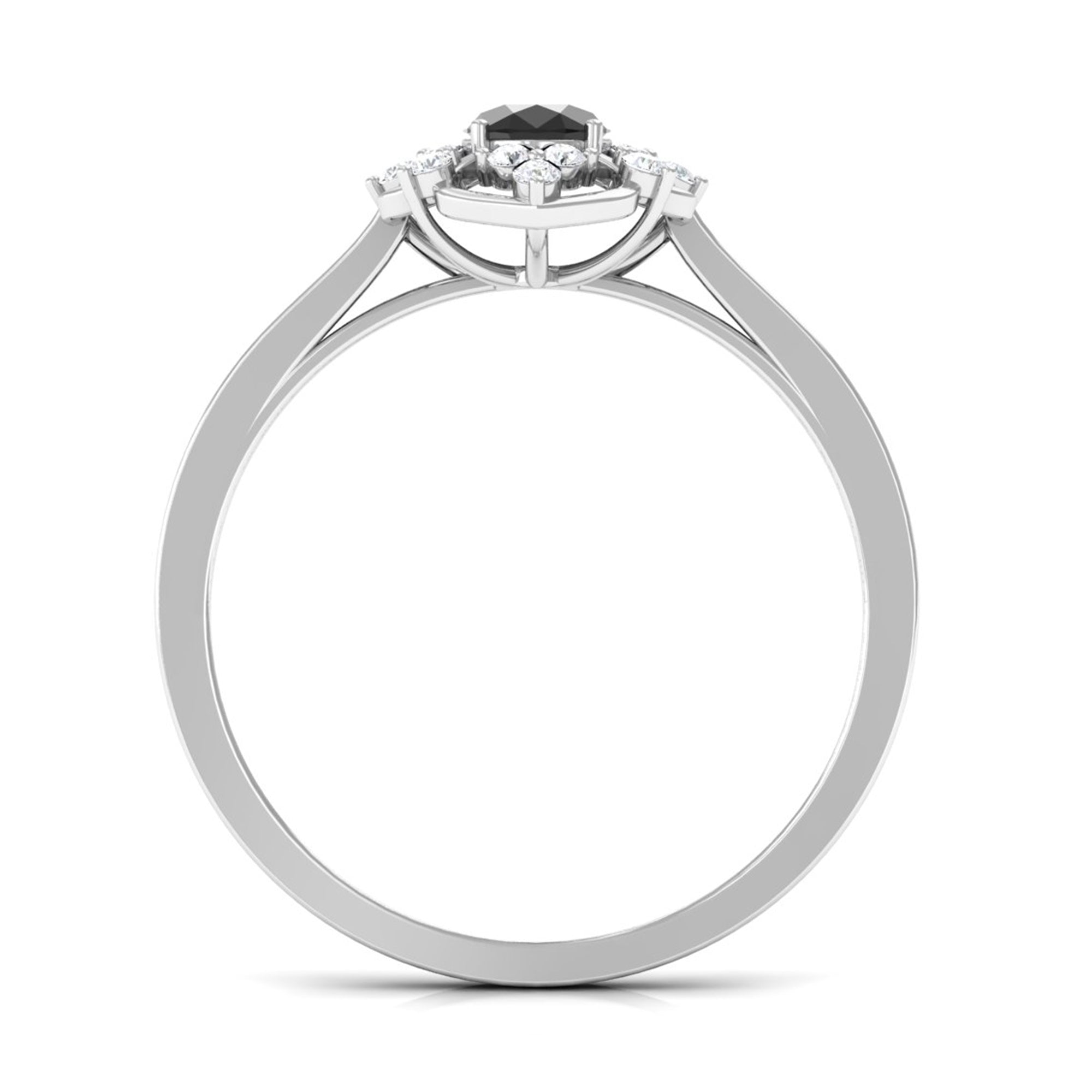 Lending an interesting visual appeal to the Black Spinel Solitaire Ring, a Halo encircles the Black Spinel with a parade of diamond/moissanite. The best part about a Halo is that it rewards more personality as well as an illusion of a larger-looking size to your Black Spinel. So, it is a unique blend of classic and flashy. That makes it another popular choice of the Black Spinel Engagement Ring.